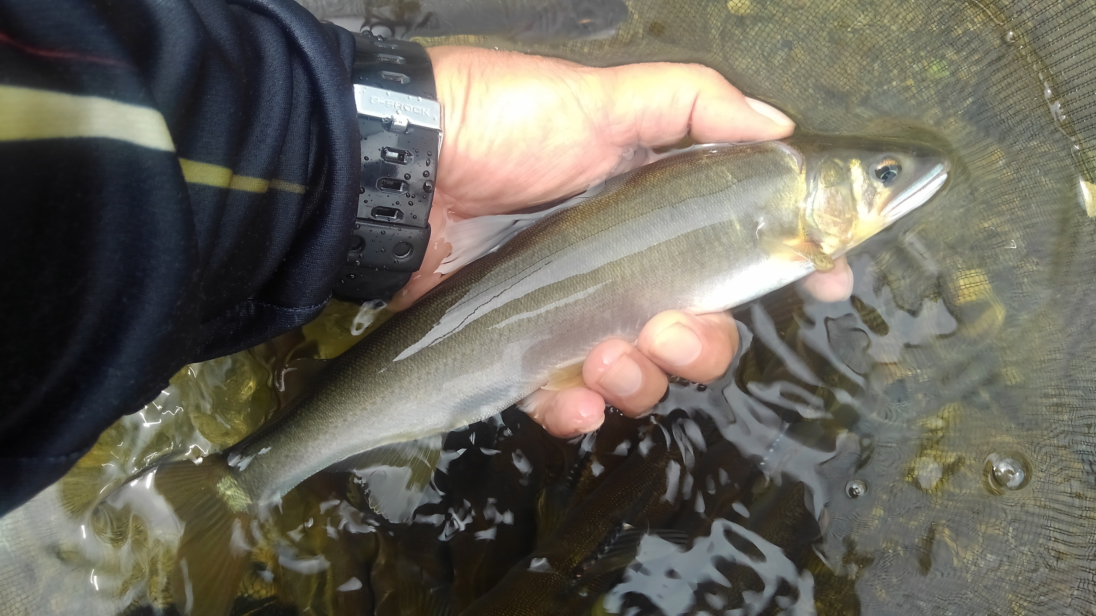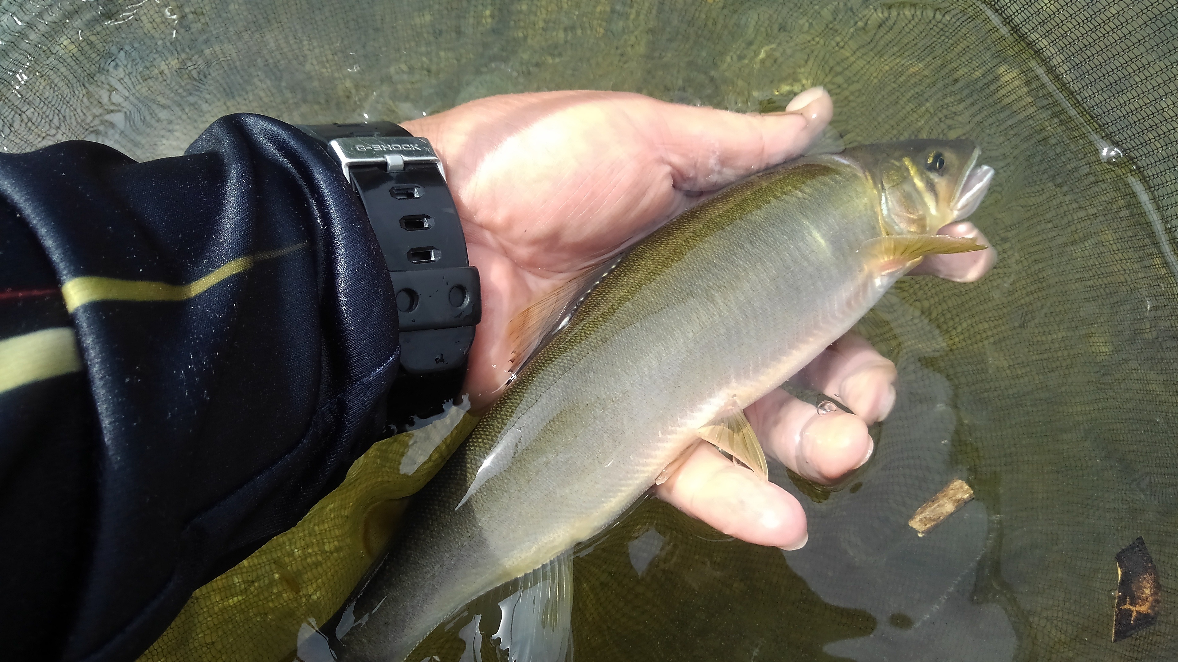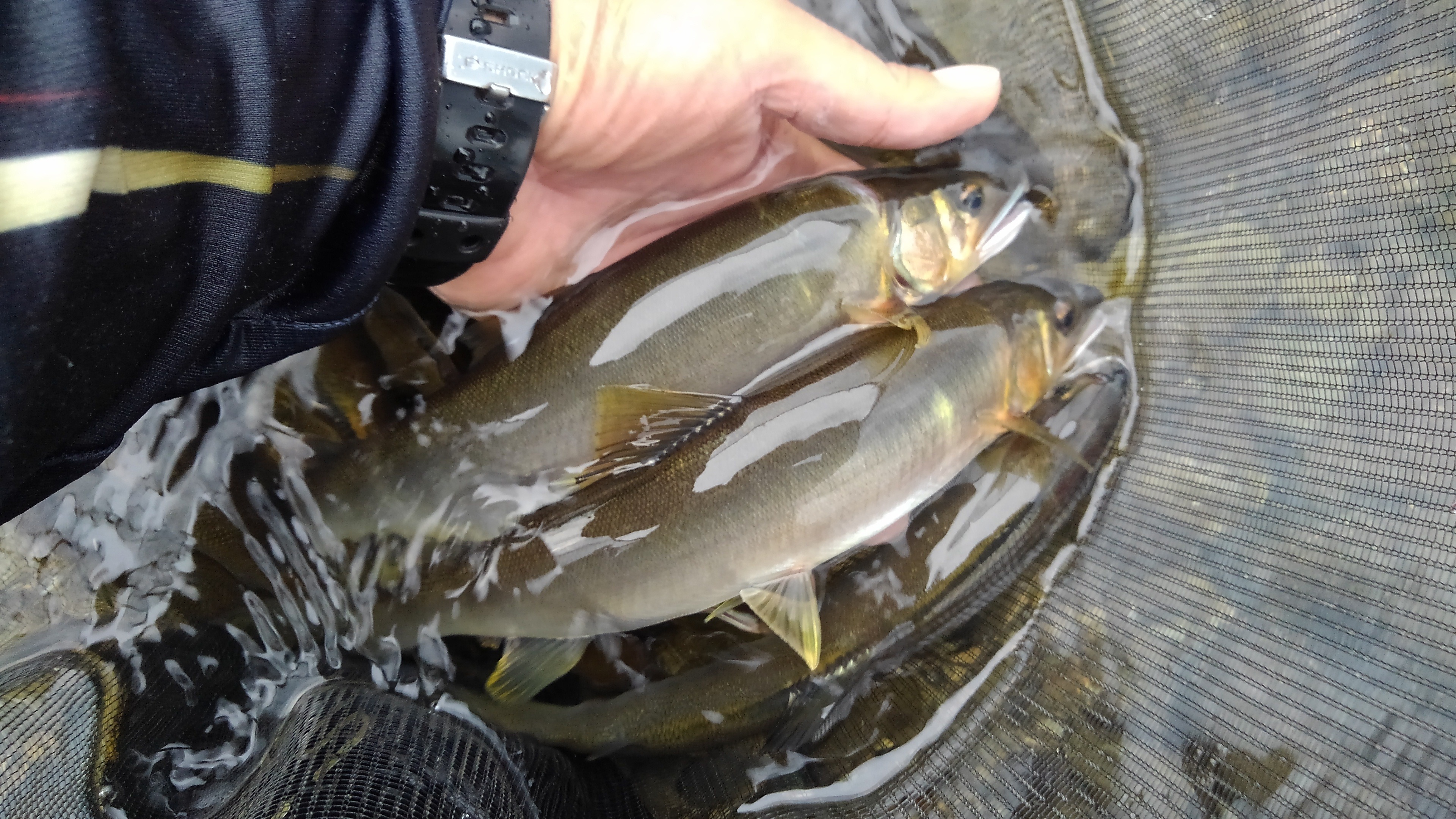2025.09.17 印刷する 奈良県 吉野川の鮎 魚種 アユ/鮎 釣り方 友釣り 場所 奈良県 スタッフ 早野恵一郞 店舗 本社 釣行日 2025.09.14 コメント 先週は大きい鮎の固め釣りができたんで、今週はさらに大型鮎を期待して二日間行ってきました。 初日は手が合わず、大雨くらいながらやってましたが、全く反応なく完全ボーズ(笑)ポイント選びも重要ですね。 二日目は、例会が入ってるようで人だらけ。かろうじて空いてるポイントへ。オトリを良さそうなとこに差し込むとガツーン!またまた、一匹目からデカイの掛かって、25センチのオトリにちょうどいいサイズに入れ替え成功!こっからポンポンとデカイの連チャンして26~27センチまで5連発して、すっかり満足! その後、22~23センチのチビしか掛からなくなったので、一旦昼休憩。13時くらいに、例会が終わったようで、ガラッとしましたが、さすがに抜かれた後で、厳しかったですが、25~26センチを数匹追加して、反応なくなったので、早めに終了しました。 鮎もかなり色づいて、瀬付きも始まり友釣りは厳しくなりそう。いよいよ終了ですね。 利用オトリ店 下西オトリ店 使用した釣具 竿 がまかつ ダンシングマスターHH85 仕掛 サンライン 天糸 1.2号 フロロ04 がまかつ ハナカン8号 要R 8.5号 大鮎要9号 3本錨