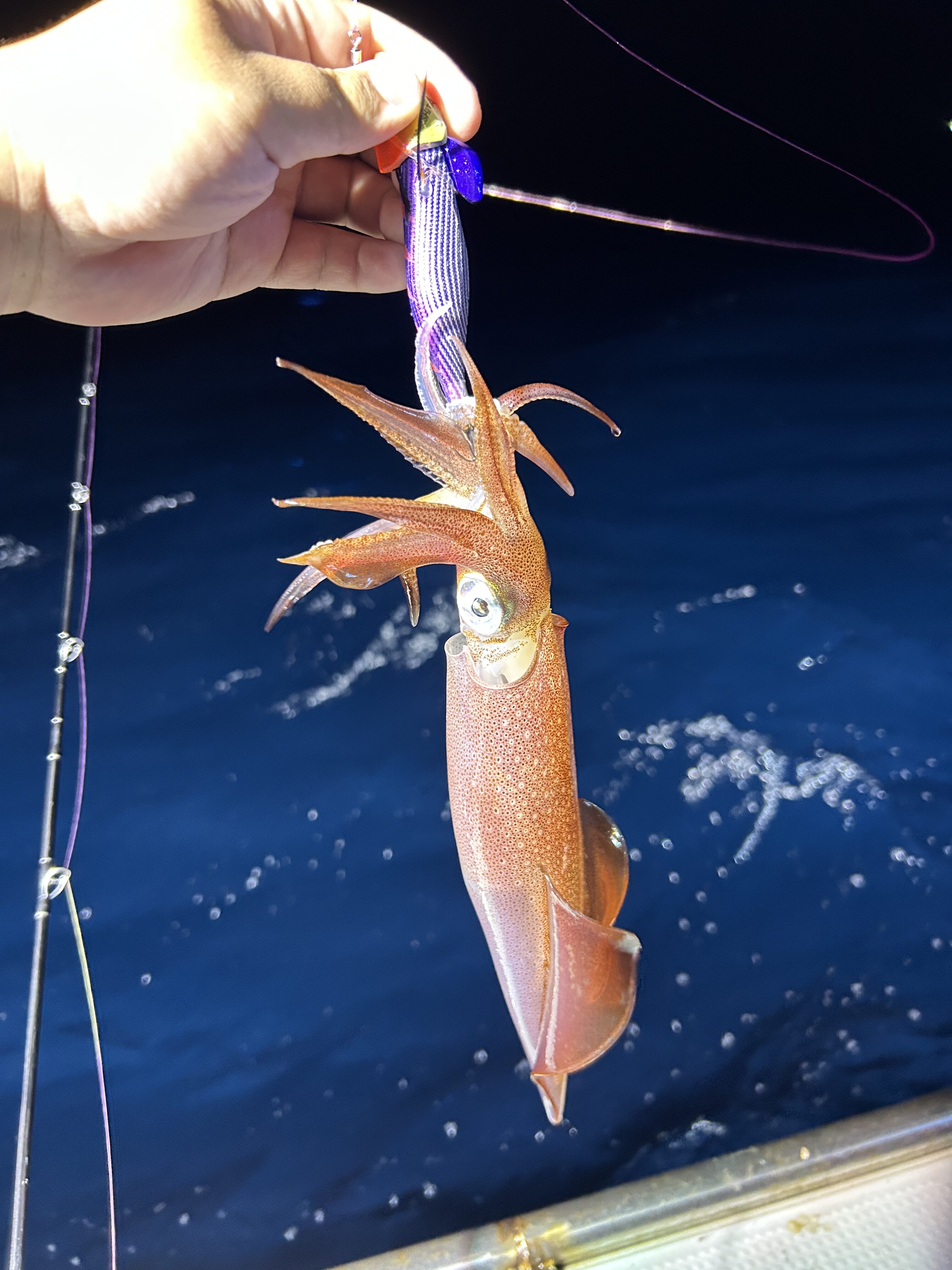 周りのアクションの仕方を真似しつつ釣りをしているとすぐにアオリイカが釣れてくれました!