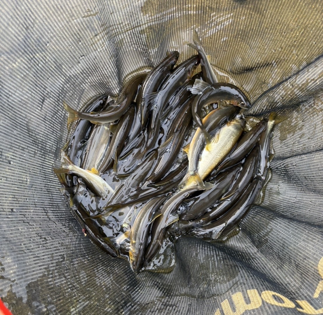 いつもとは違う場所に行き、一見するとこんな場所?というようなところで、まずはオトリ確保を目指します。