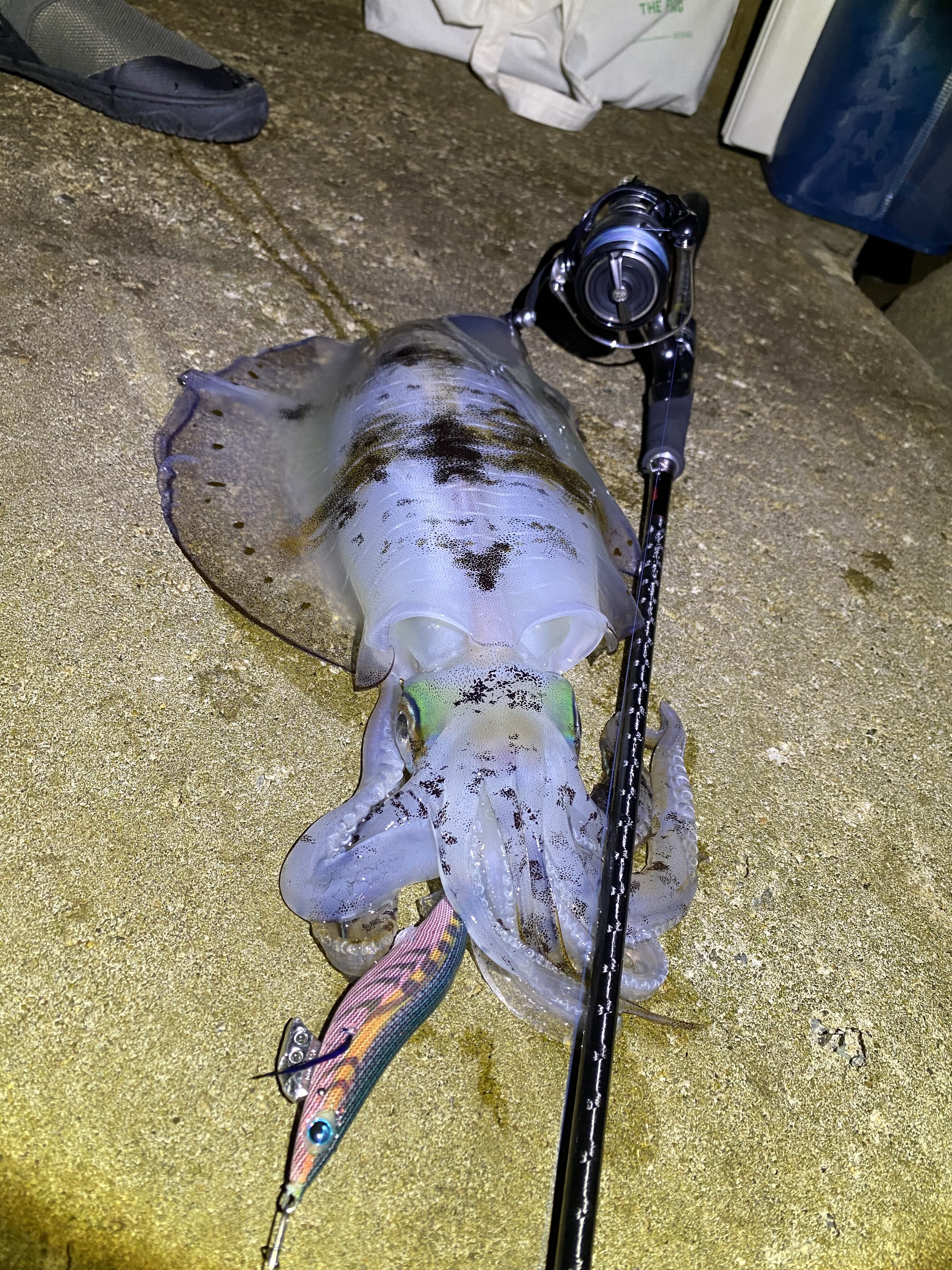 秋イカと思いましたが、秋イカではない引きと重さ。上げてくると800gの良型アオリイカでした!