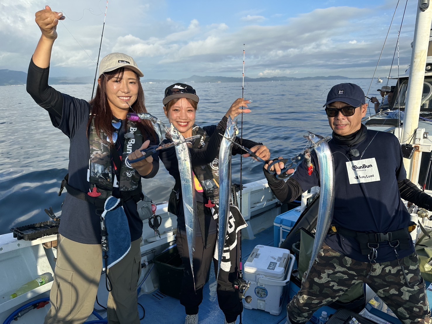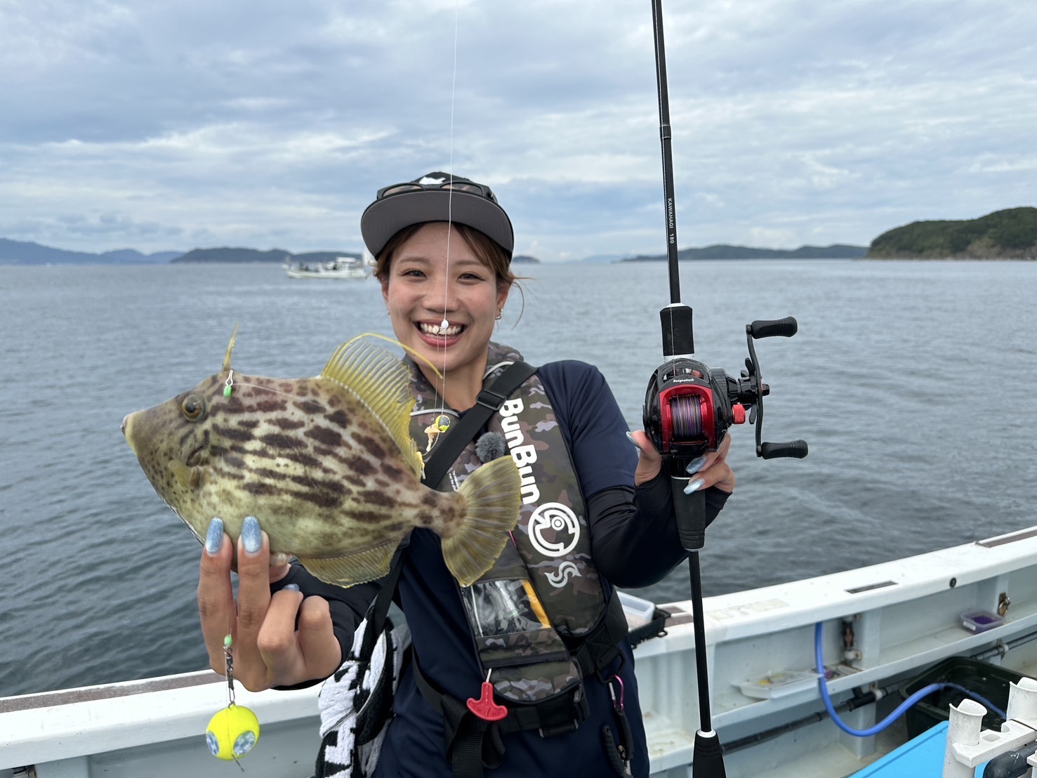 2025.09.17 印刷する ルアチャンロケ!太刀魚&カワハギ! 魚種 カワハギ タチウオ/太刀魚 場所 和歌山県 スタッフ 丸谷 侑梨 店舗 本社 釣行日 2025.09.12 コメント こんにちは!今回は『ルアルアチャンネル』のロケで、太刀魚&カワハギ釣りに行ってきました〜🎣お世話になったのは 「きしゅう丸」さんです🛥️ まずは太刀魚からスタート!水深約80mのポイントで、太刀魚がいる層を探していると、75m付近でアタリが✨そのまま誘い続けると、開始早々にヒット!その後もパターンを掴み、順調に釣り上げることができました😊 続いてはカワハギ狙いへ!この日はベラの活性が高く、ターゲットのカワハギを狙うのに大苦戦( ; ; )そんな中、リポーターの あやかちゃん は次々とカワハギを釣り上げていてビックリ‼︎ コツを聞いてみると、「激しく誘わず、ゼロテンションでしっかりエサを食わせることが大事」とのこと! 教えてもらった通りにやってみると……私にもついにカワハギがヒット‼︎✨ 太刀魚もカワハギも釣ることができて、とっても楽しいロケになりました♪ 放送をお楽しみに〜! 使用した釣具 太刀魚タックル ブンブンオリジナル「タチウオブンブン船セット」 カワハギタックル 船カワハギ専用ロッド&リールセット