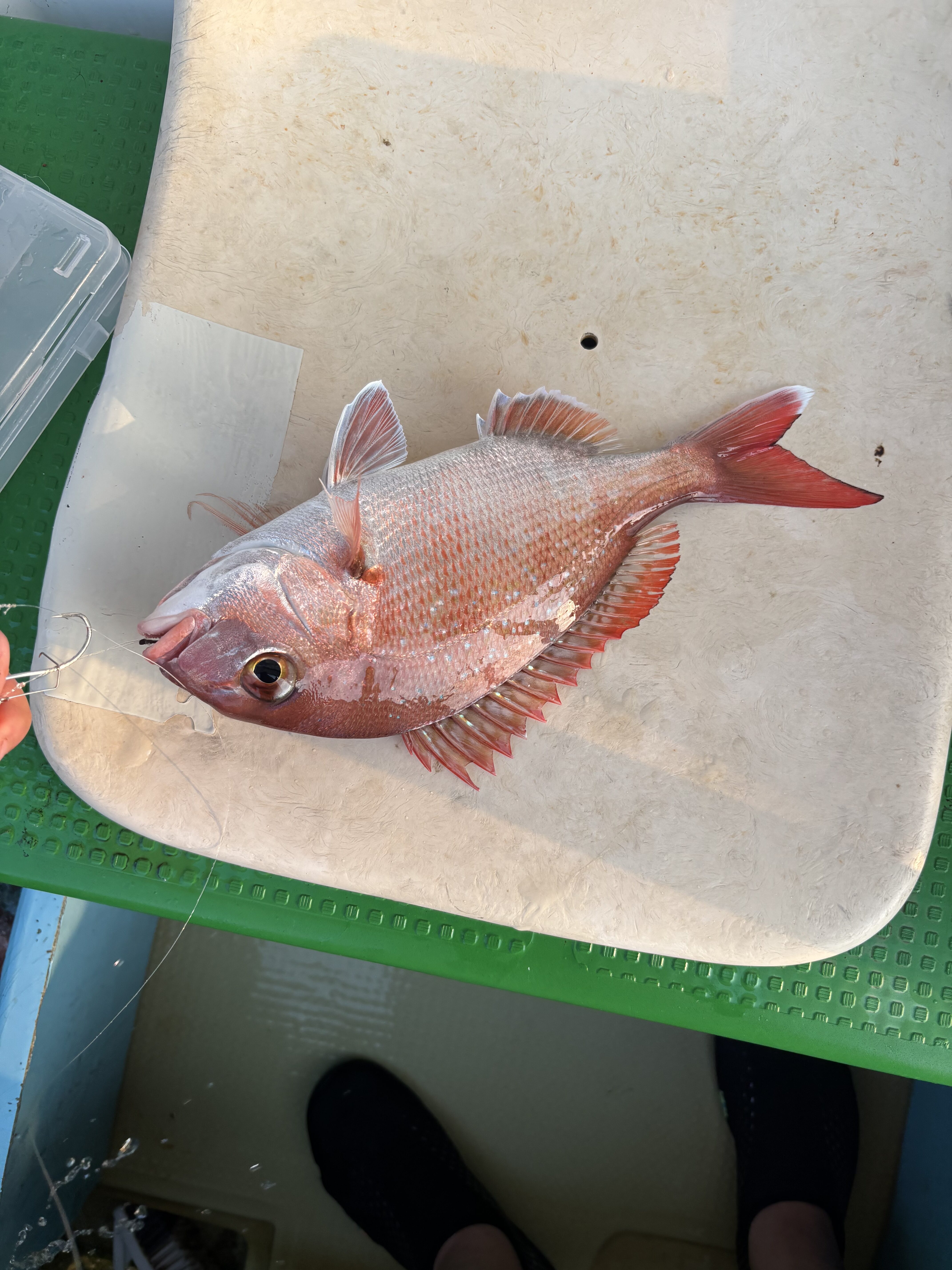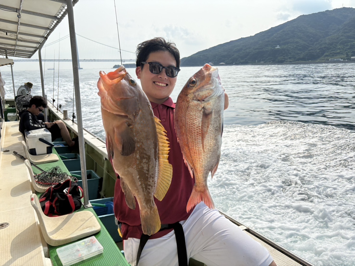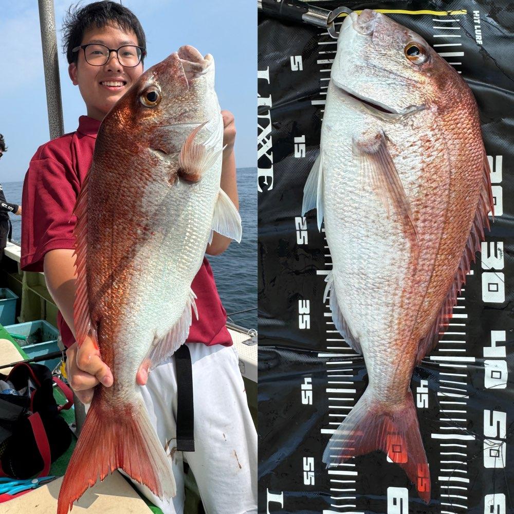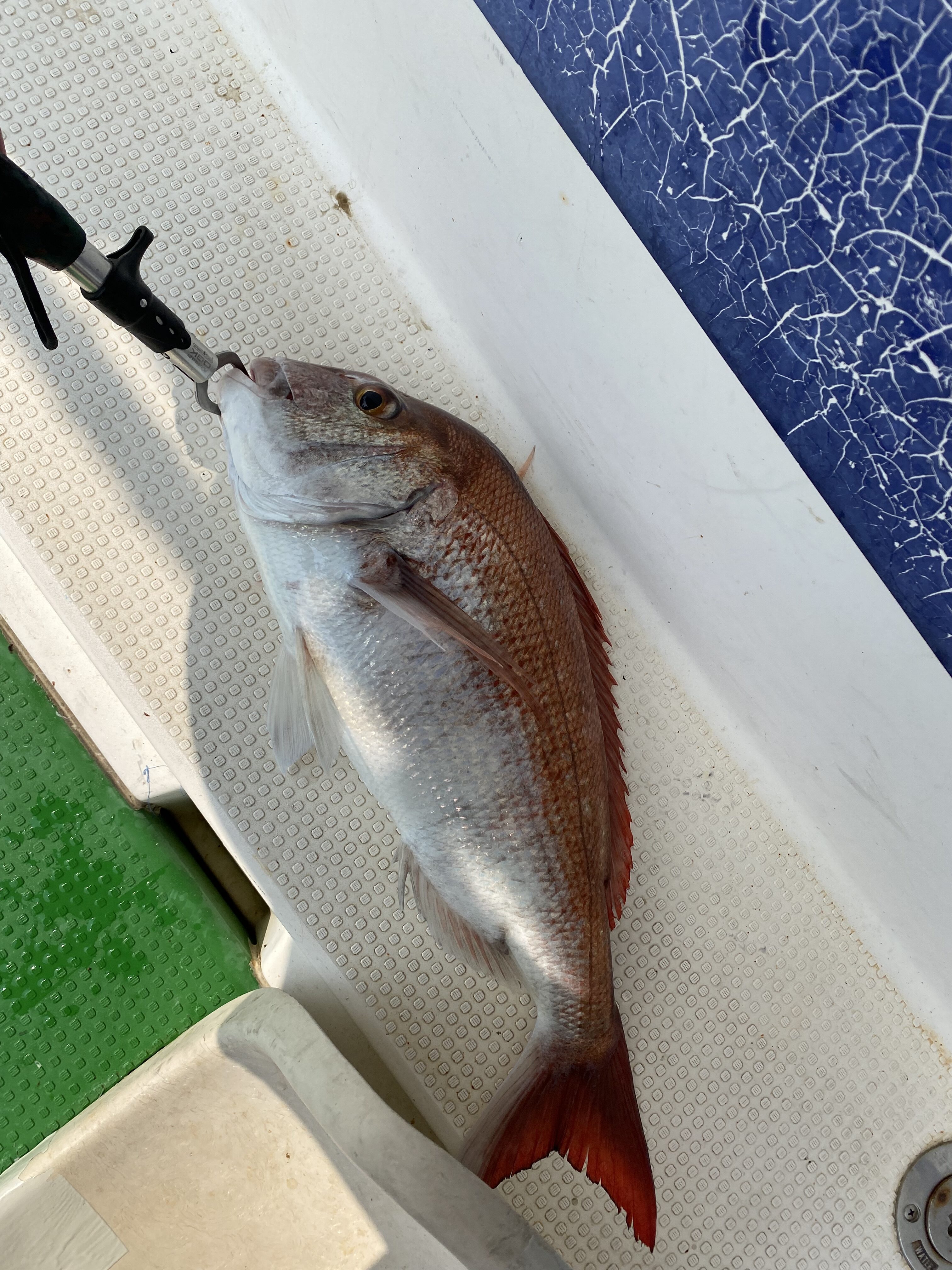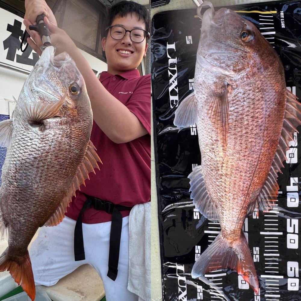 序盤は船中全体で当たりが遠のきましたが、船長から「フォールスピードを速めてみて」とアドバイス。実践するとすぐにヒットし、65cm・59cm・53cmと良型の真鯛をキャッチ\(^o^)/ さらにリリース含め計11匹、加えて自己記録となる50cmのキジハタ(アコウ)も登場!調べてみると40cmに達するまでに10年かかる魚とのことで、このサイズはかなりレアらしく感動でした。