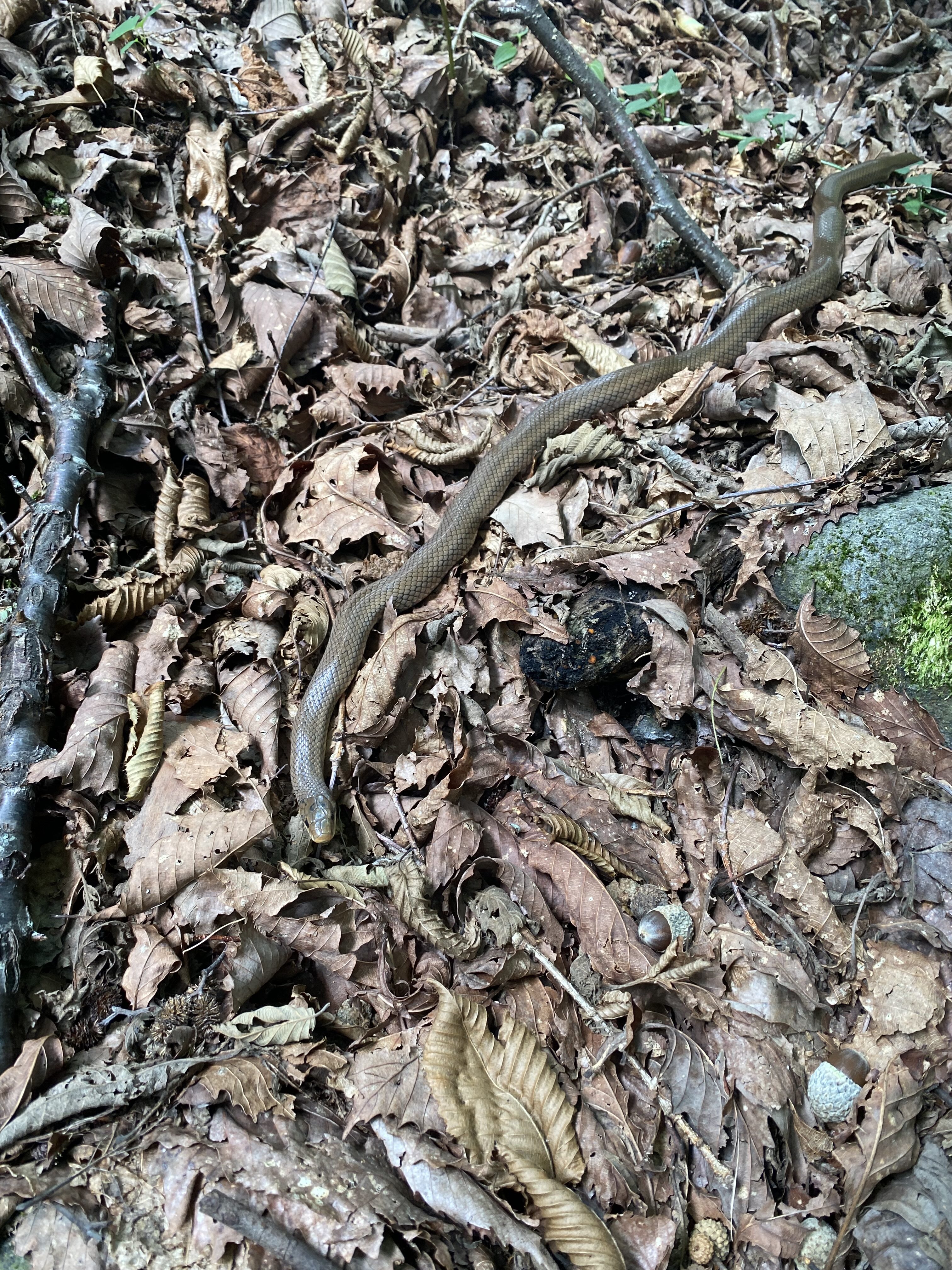 入渓してすぐに蛇を発見🐍とりあえず写真撮影して、頭が丸いので毒は無しと判断して捕獲を試みましたが岩の隙間に入られてしまいました🤥