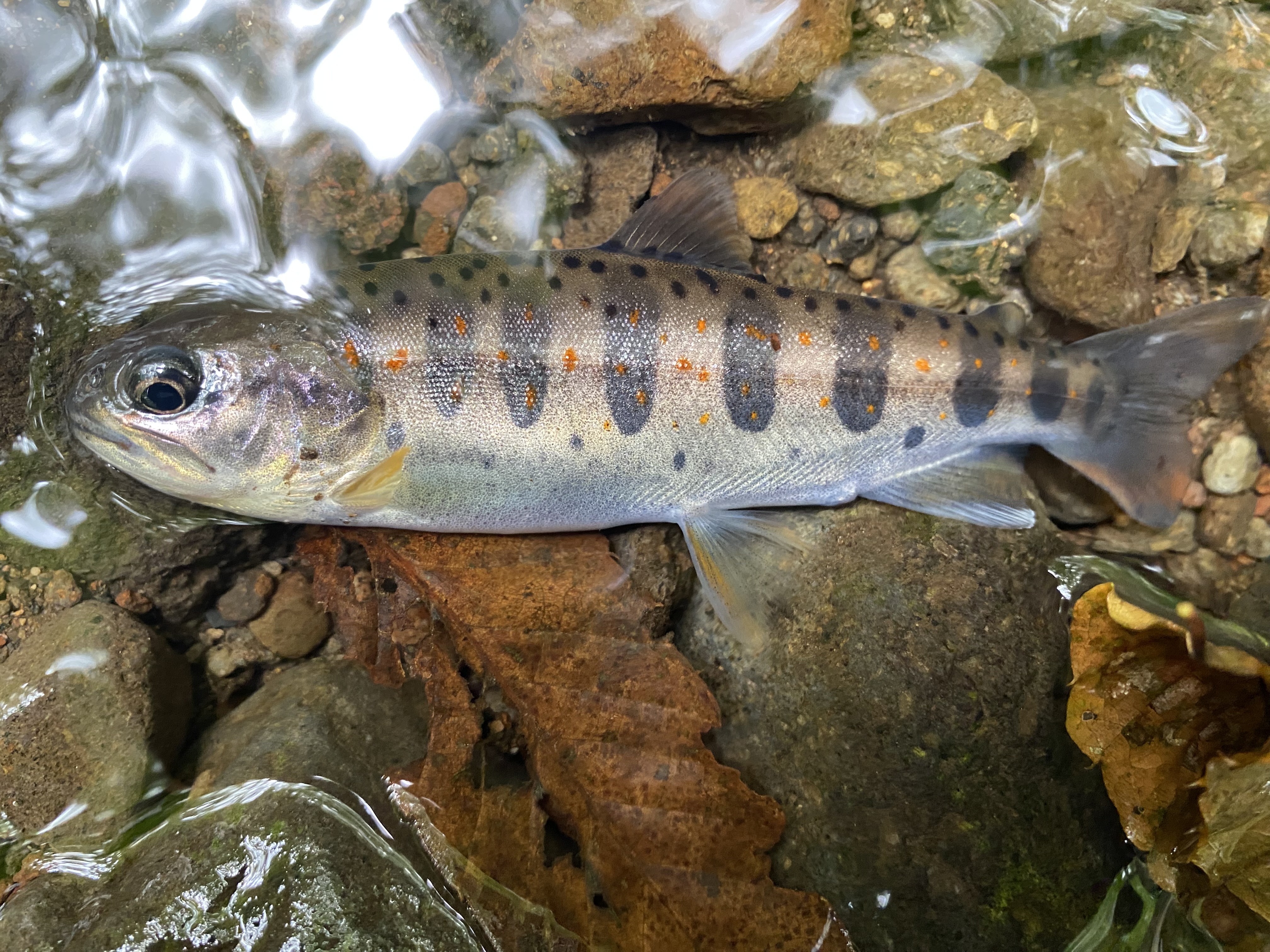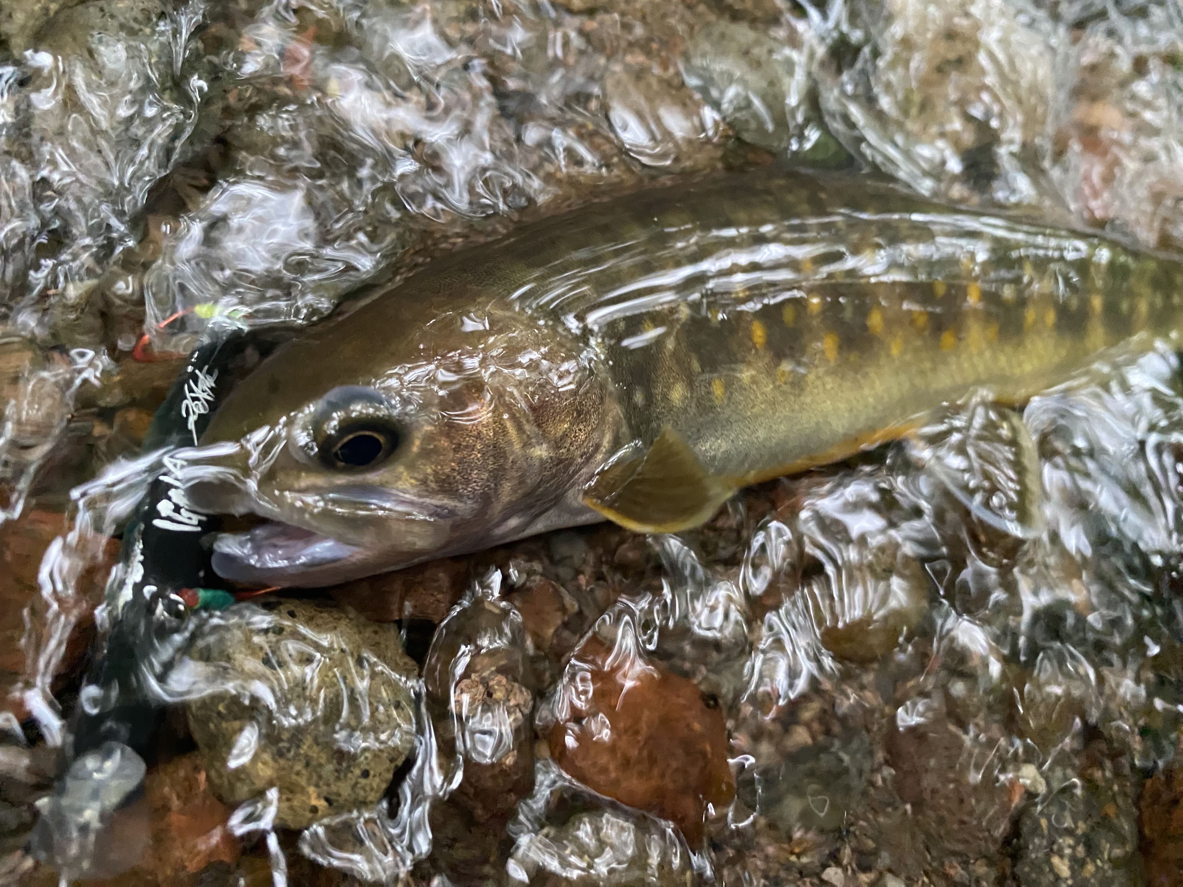 その後もバラシながらポツポツと小さい個体を釣りながら歩いていると、なんとか良型のヤマトイワナを釣ることができました!!