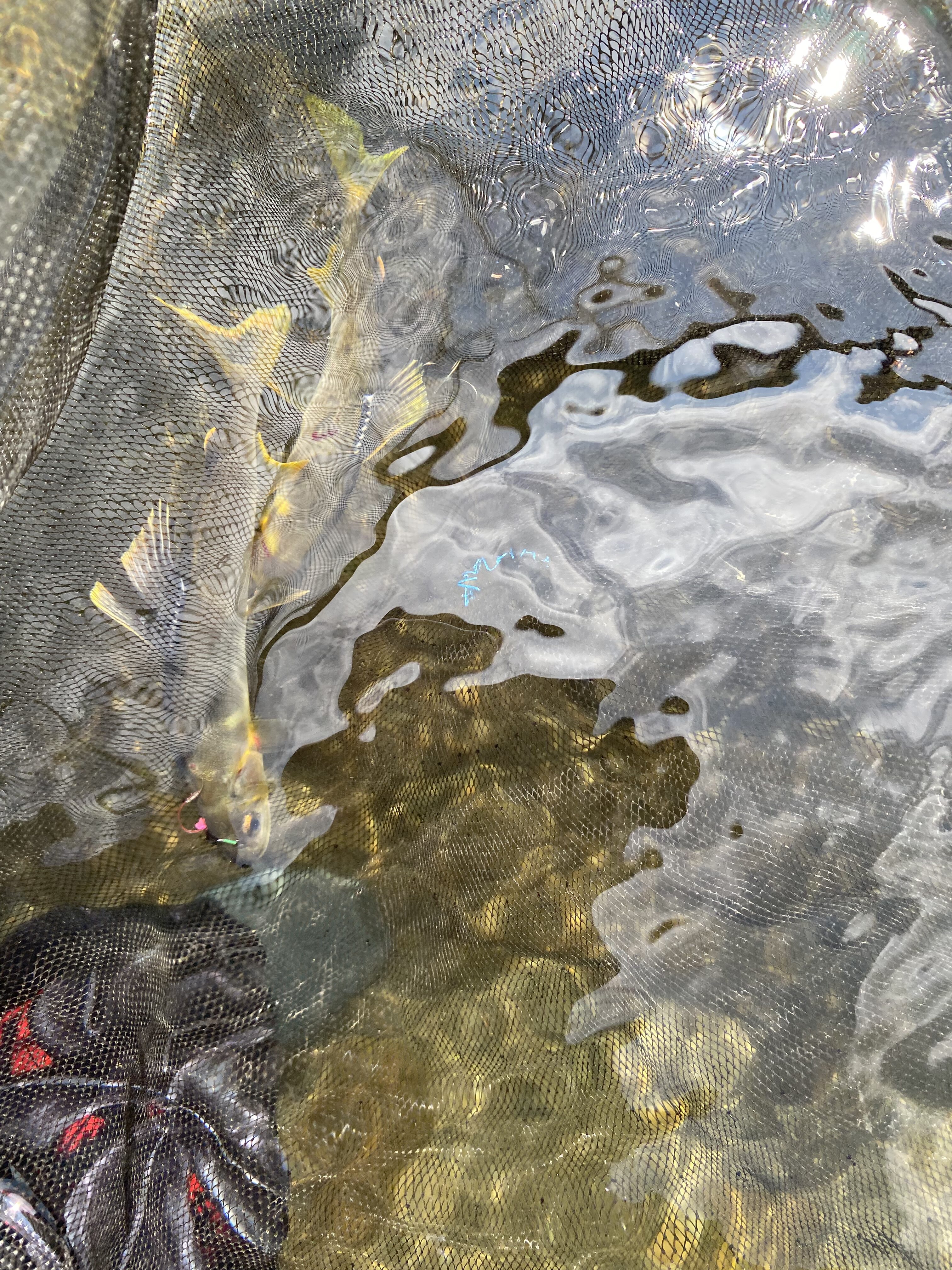 残りは1匹のみ!なんとか泳がせることができ、ファーストヒット!嬉しい1匹!!ここからペースアップかと思いきやストップ🫷それでも泳がせると追加!!