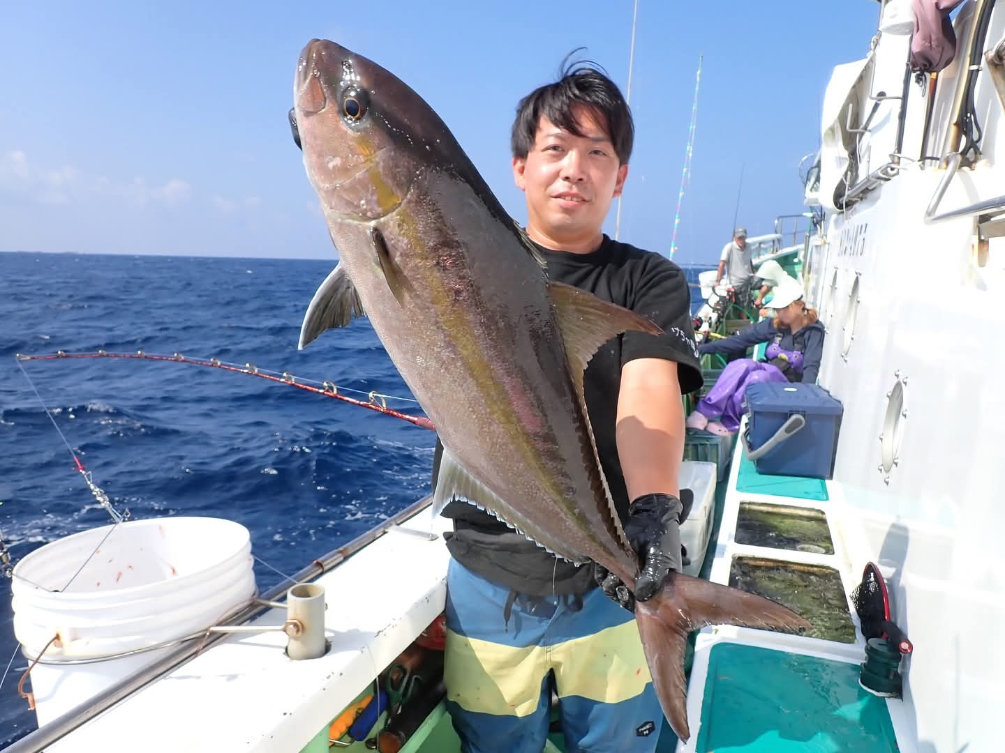 2025.09.22 印刷する とび島丸チビムロカンパチ 魚種 その他 カンパチ サイズ 6キロ 数 カンパチ/2 釣り方 泳がせ釣り 場所 静岡県 スタッフ 岡崎祐也 店舗 川崎大師店 釣行日 2025.09.17 コメント 9月17日とび島丸さんより銭洲に行ってきました♪ 本日はチビムロと中ムロがよい感じ🎵水面まで浮いてきたので、のべ竿でポンポン釣れます🐟️ 20匹位取れ泳がせスタート‼️ すぐにアタリがもらえてヒット〰️しかしバラシてしまいました🤣 次のアタリはバッチリフッキングしました。あがってきたのはツムブリさん🌈🏃 サイズ良く楽しかったです🎵 その次はフォールで止まり横っ走り💦皆さんご迷惑お掛けしました💦😭あがってきたのはデカ沖サワラ 1人外道ラッシュ😂 その次にやっと本命カンパチ! 最高です🎵 最後にチビムロは暴れてますがなかなか当たらず、巻き落としを繰り返すと、ズドン‼️ リリースサイズでしたが、針を飲んでしまい血が出ているため、キープさせてもらいました😣 その後はアタリを出せず沖上がりになりました🎵 大きいサイズも釣れているので、またチャレンジしたいです。 とび島丸さんのライブ配信がYouTubeにあがっているのですが、イメージトレーニングするには最高です! 忠文船長、裕己船長 操船にライブ配信にアナウンスや釣りのお手伝い、お疲れ様でした✨ 使用した釣具 ロッド アリゲーターギルオンスロート14-160 リール アリゲーターバトル20w