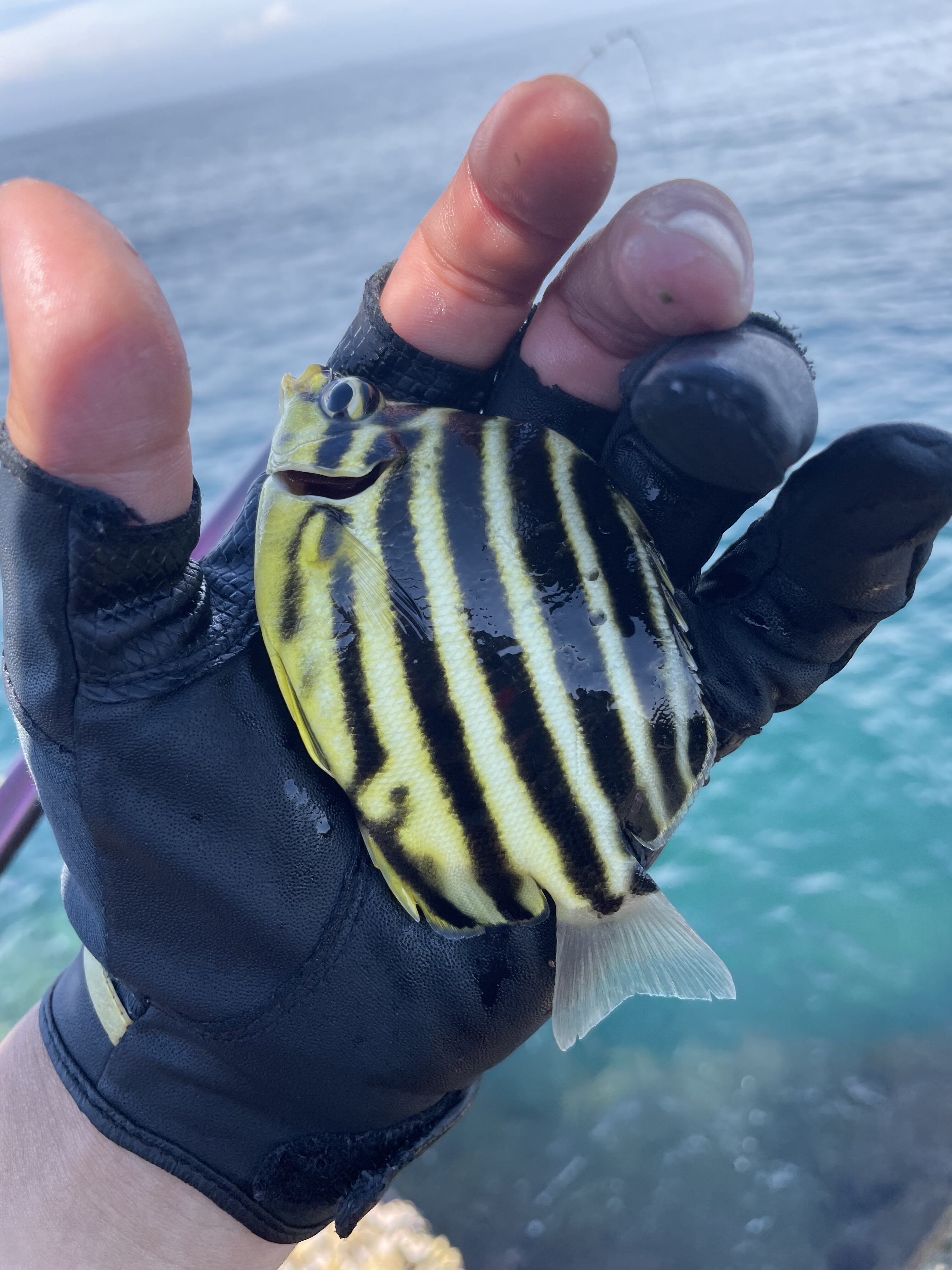 まずは一投目足下にはスズメダイ、子ハゲ、ミニアイゴまみれ💦やはり水温はまだまだ高い様