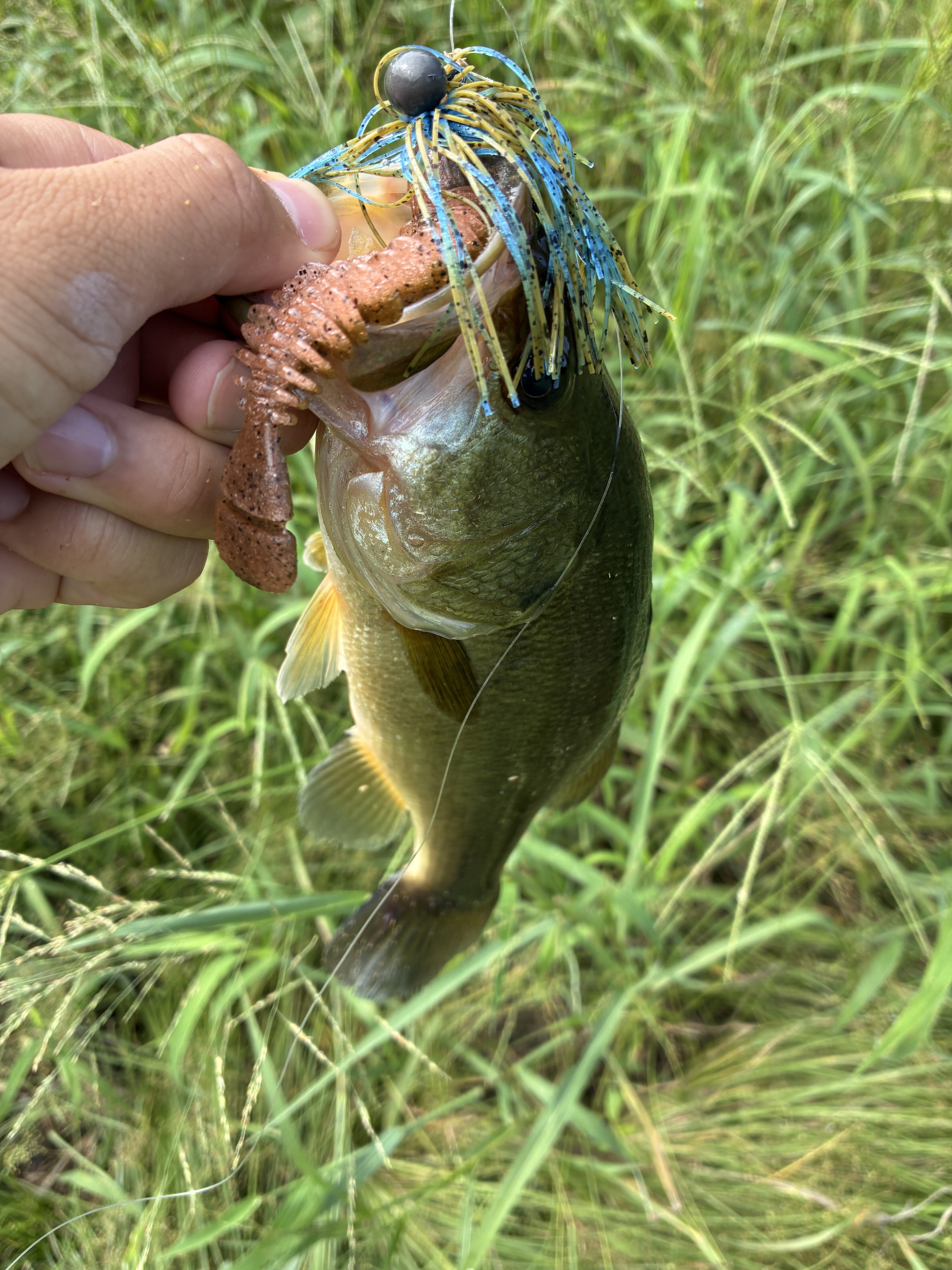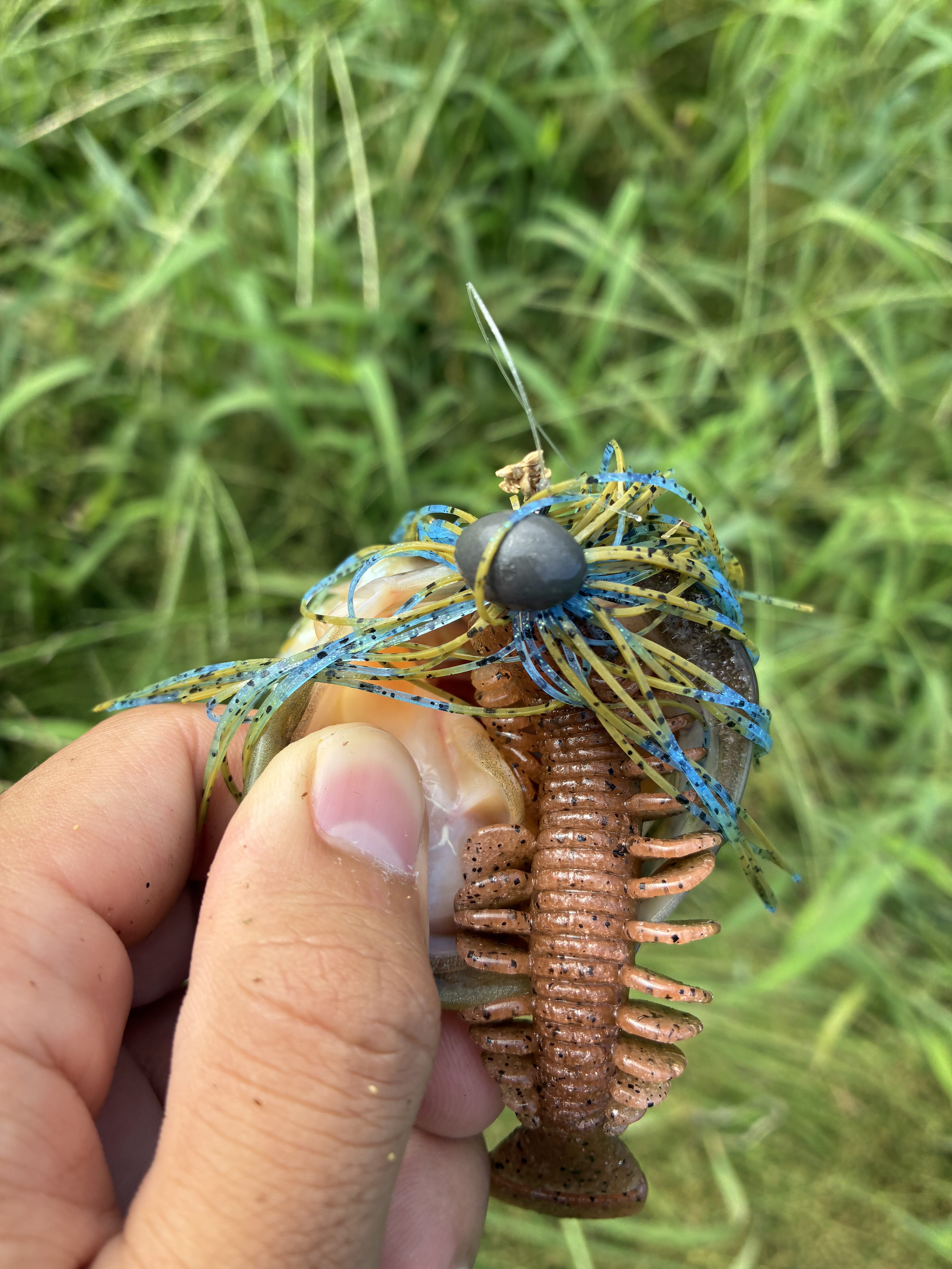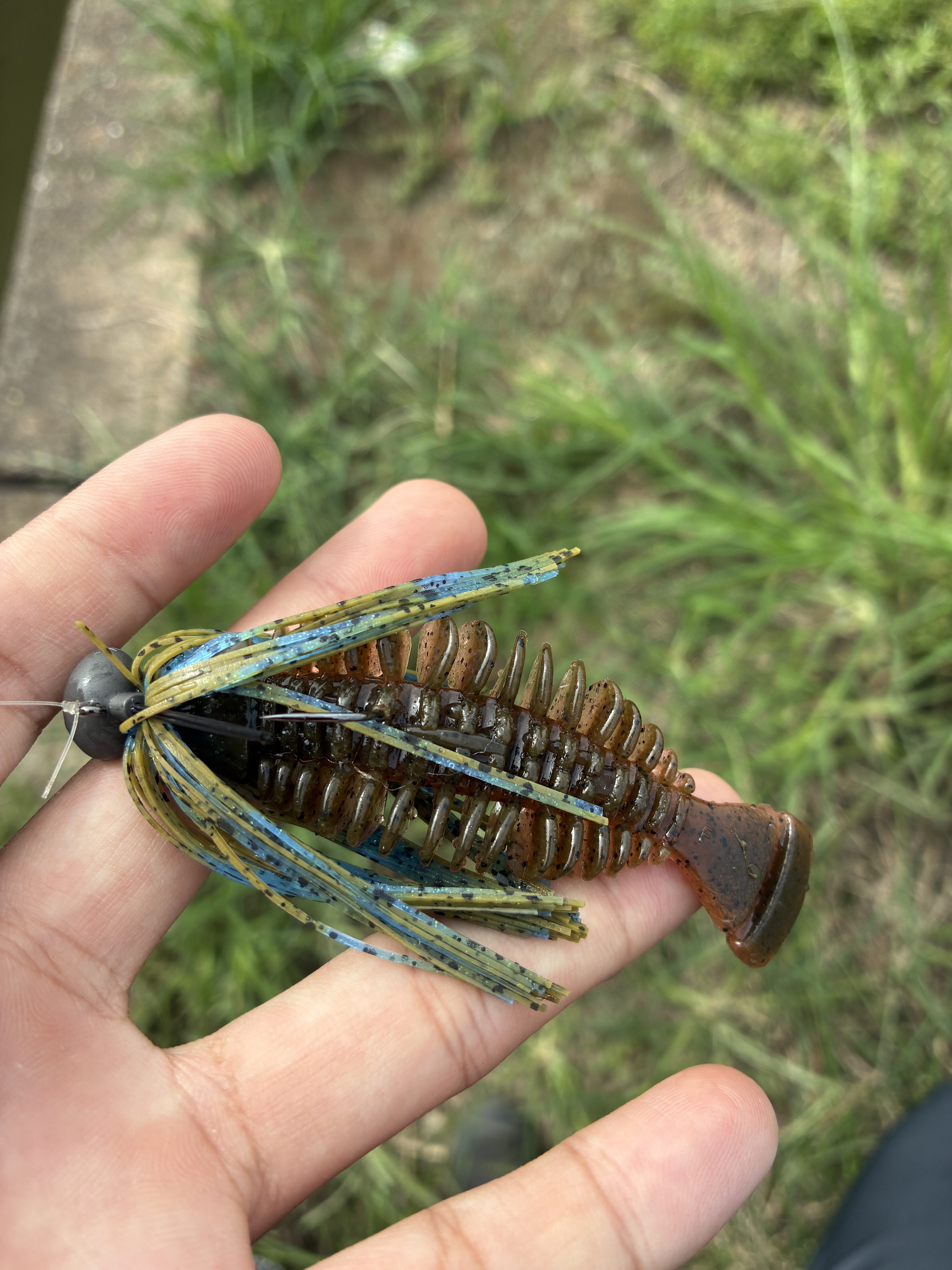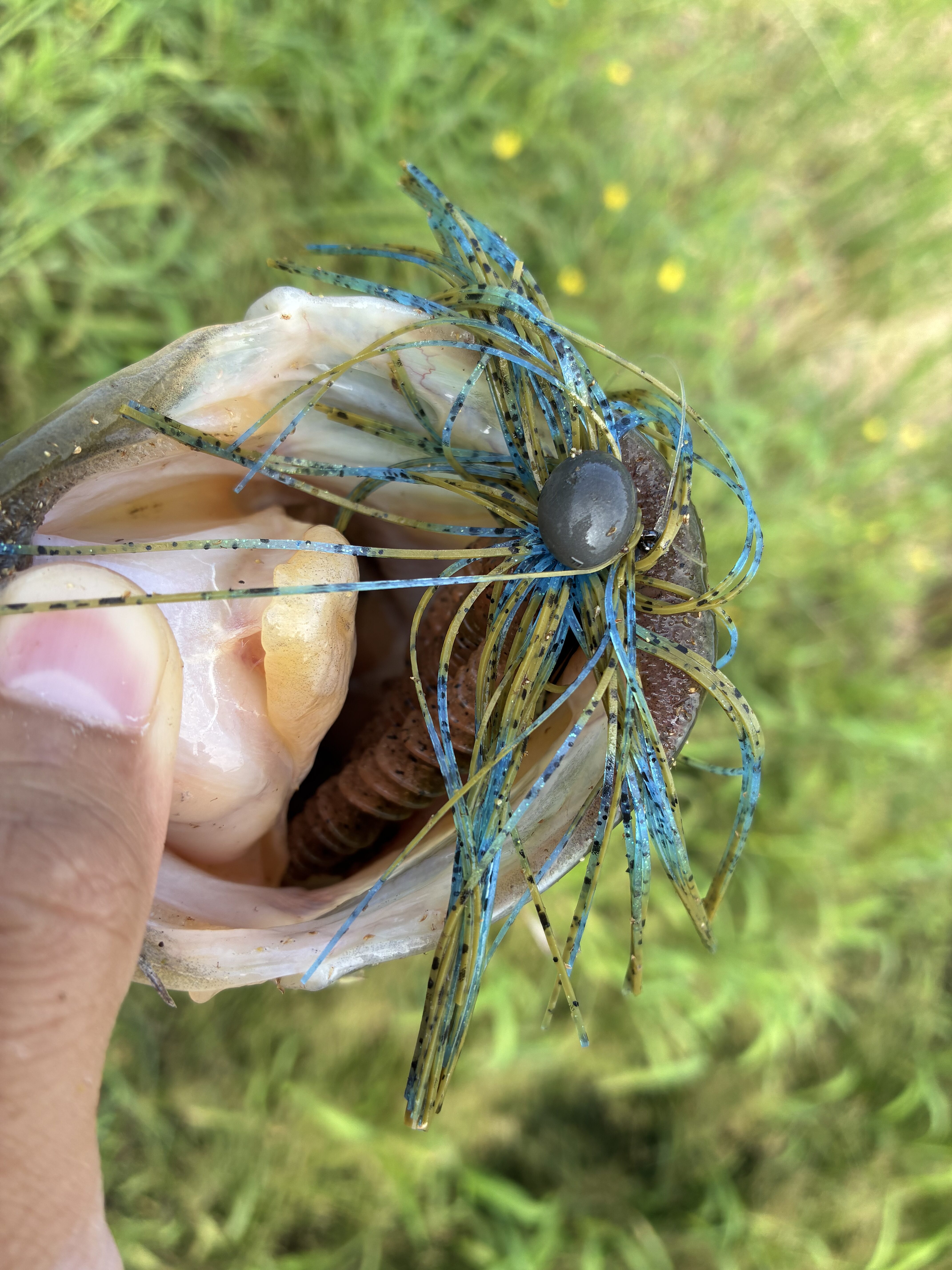 ジグは5/16オンスですので、ボトムをネチネチやるフットボール的な使い方からジグストまで使用できるように具はボトムアップのギミーを選択!