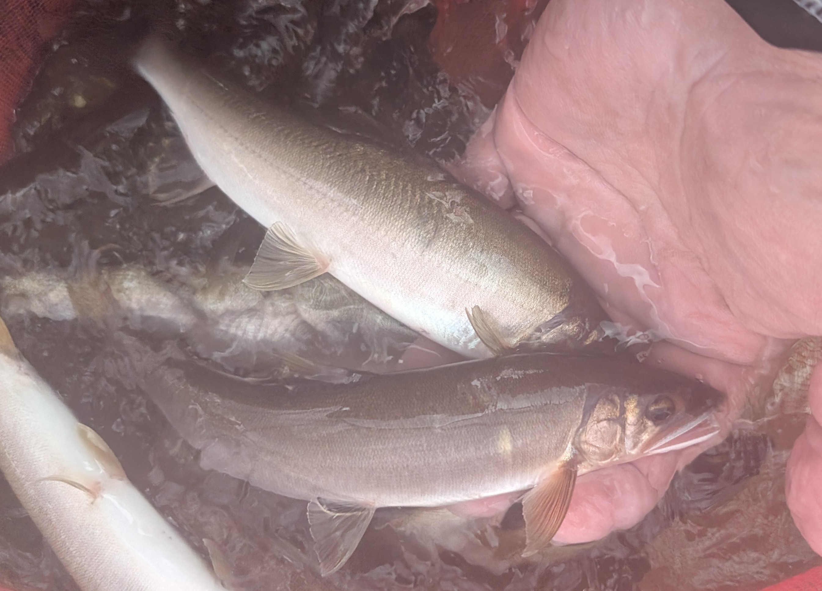 2025.09.22 印刷する 2025年鮎釣り15回目IN相模川葉山地区その4 魚種 アユ/鮎 数 17~23cm 24匹 釣り方 友釣り 場所 関東 神奈川県 天候 曇り時々小雨 スタッフ 丸田泰助 店舗 関東 イオン相模原店 釣行日 2025.09.13 コメント 前々回、数は少なかったですが23cmサイズが釣れた相模川の葉山地区へ釣行。以前と同じで下流側の瀬の方は人が多いので、人が少ない上流側の堰の手前に入ってみることにしました。川の真ん中の筋が深くなっていて他の釣り人もそこを攻めていましたが、全然竿が曲がっていなさそうです。とりあえず同じように深くなっている筋を狙いますが、やはり反応なし。そこで、他の釣り人の立ち位置や向き、攻めている場所を見て、深い筋に入って他の釣り人が立っている場所から竿1本分のスペースを攻めてみることにしました。すると・・・これがばっちりハマってそこから結構いいペースで釣れ始めました。20cm前後のサイズがポツポツ掛かり、たまにいいアタリで23cmまで掛かってきます。 ただ、風が強いのでキャッチミスやバラシも多く、途中で3本錨から2本ヤナギに変更。掛かりはちょっと遅くなりましたが、風で取り込みがもたついてもバラシが全くなくなって、しかもほぼ背掛かり!16時ごろからアタリが全然なくなったので、17時前に納竿しましたが、キャッチできただけでも24匹で、半分ぐらいが20cm以上と楽しい釣りができました。 探せば竿抜けポイントはまだまだあると思います。皆さんもいいポイント探してみてはいかがですか? 使用した釣具 竿 ダイワ ギンエイエアショートリミテッドMT 87M + 専用SMT穂先 仕掛け がまかつ アーマードF+プロ0.08号 針 オーナー こだま7.5号3本錨 がまかつ 管付チラシ8号2本ヤナギ