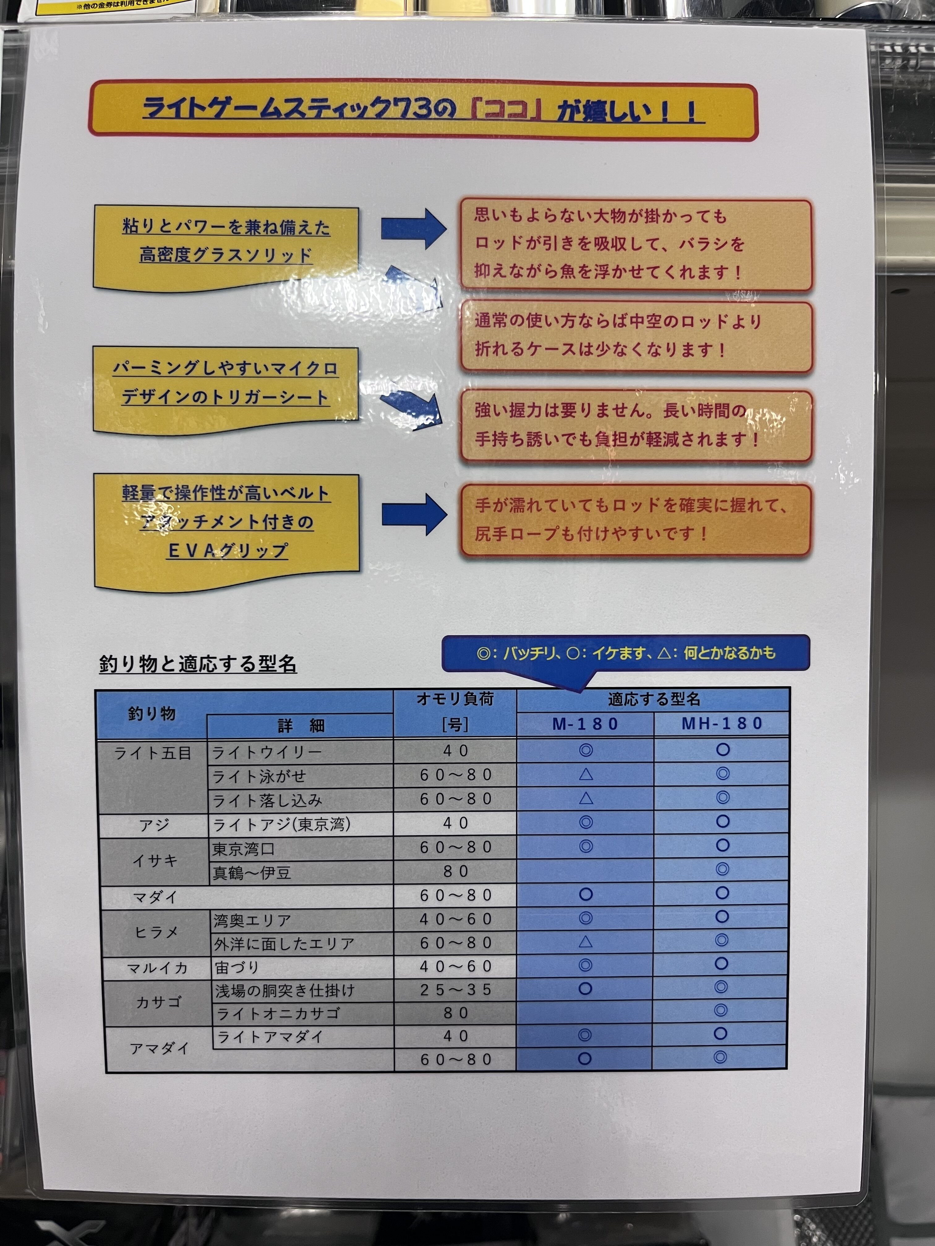 今回も使用ロッドは前回のアジ釣りに引き続き『ブンブンオリジナルライトゲームスティック73MH180』