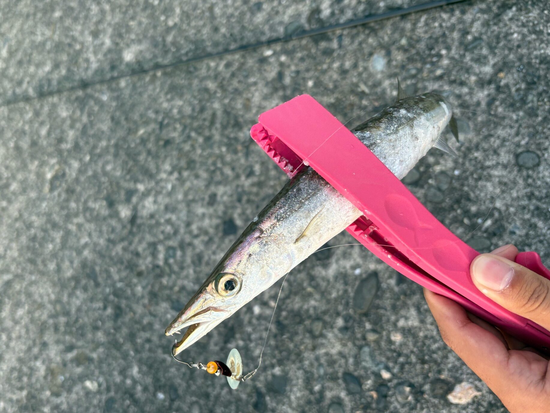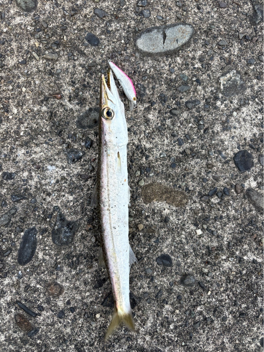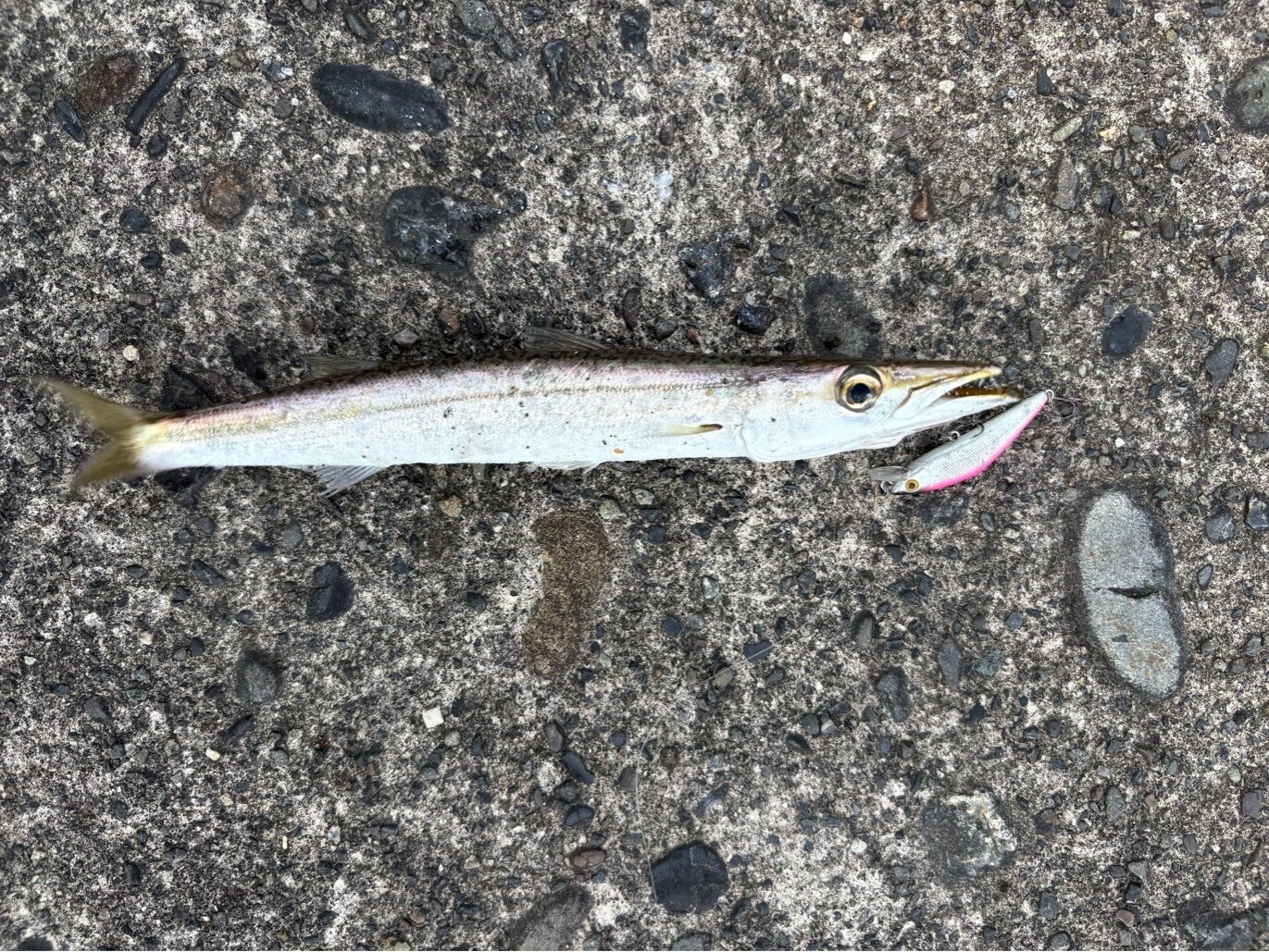 小さめですがまづめ前にヤマトカマス(水カマス)ゲット。 単発のようで当たりは続かず、ルアーもいろいろ試していきます。