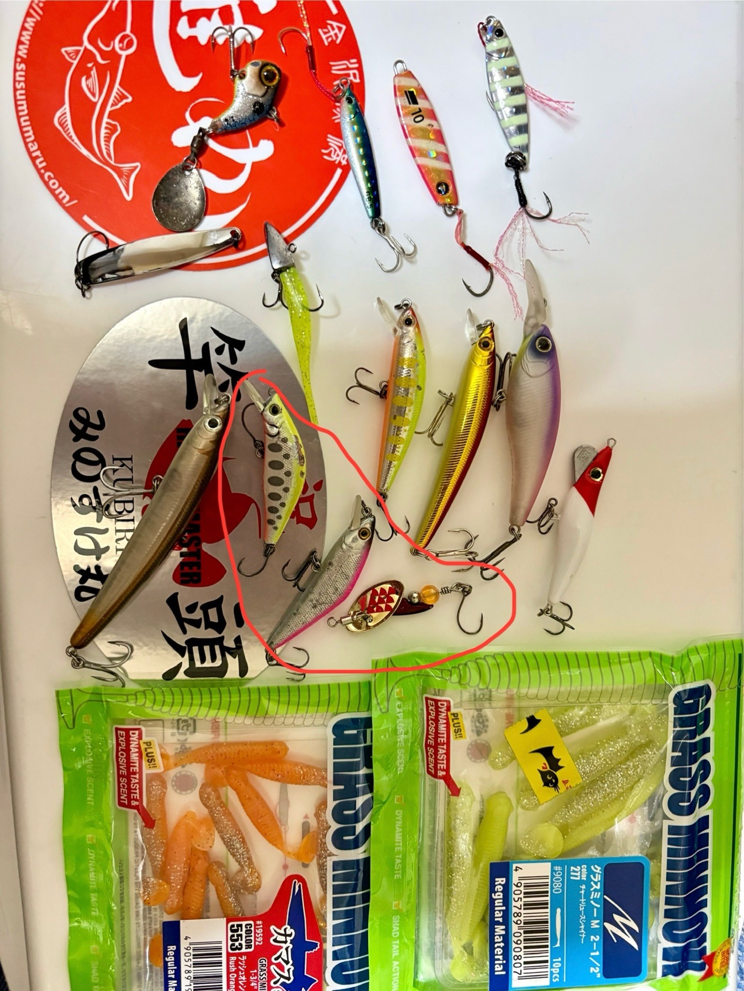 それ以降はバス用のシャッドで1バイトのみ。 ベイトサイズもわからないのでルアーの大きさは幅広く試し、カラーもベイトライクなものからフルグローまで複数試しましたがダメでした。