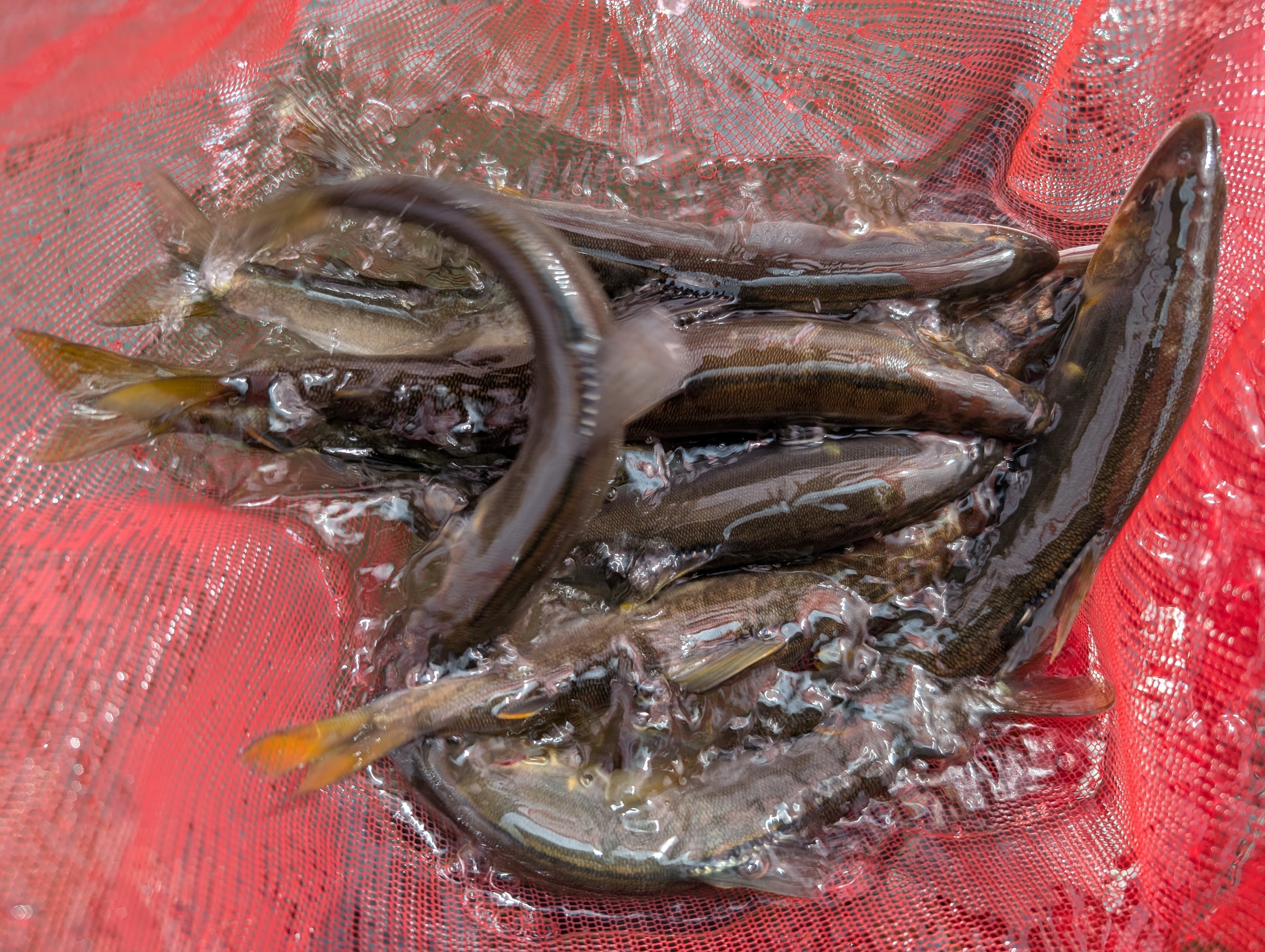 2025.09.25 印刷する 2025年鮎釣り16回目IN相模川葉山地区その5 魚種 アユ/鮎 数 18~22cm 8匹 釣り方 友釣り 場所 関東 神奈川県 天候 晴れ スタッフ 丸田泰助 店舗 関東 イオン相模原店 釣行日 2025.09.22 コメント 今回は午後から用事があるので午前中3時間の短時間釣行。10日前にいい釣りができた葉山地区のポイントに入りました。 が、前回のようには釣れず、最初の1時間は0匹。月曜日なので、土日に散々釣られた後のようです。なので、引き釣りと上飛ばしで広範囲を移動しながらの釣り方に変更すると、20~30分に1匹ペースですが、やっと掛かり始めました。 途中、強烈なアタリ&引きがありましたが、なんと針がハリスから抜けてしまって痛恨のバラシも発生。さらに、周りに釣り人が入り始めて身動きができなくなって、中々ペースが掴めないまま正午になったので納竿となりました。 3時間で8匹と今一つの釣果でしたが、サイズはほとんどが20~22cmとだいぶサイズが良くなってきました。相模川で鮎釣りができるのも残り3週間ほどなので、可能な限り釣行したいと思います。 使用した釣具 竿 ダイワ ギンエイエアショートリミテッドMT 87M + 専用SMT穂先 仕掛け がまかつ アーマードF+プロ0.08号 針 オーナー こだま7.5号3本錨 がまかつ 管付チラシ8号2本ヤナギ