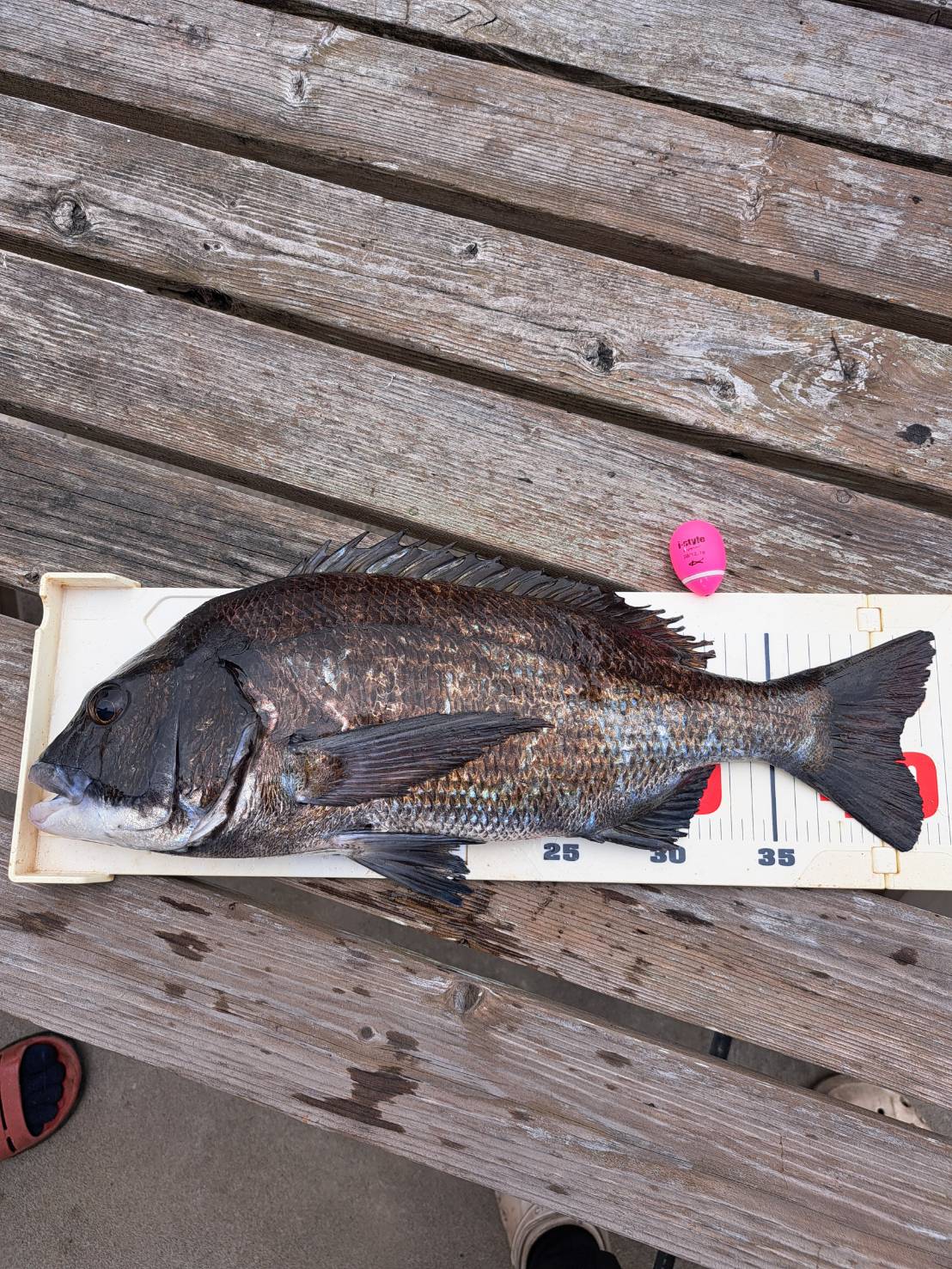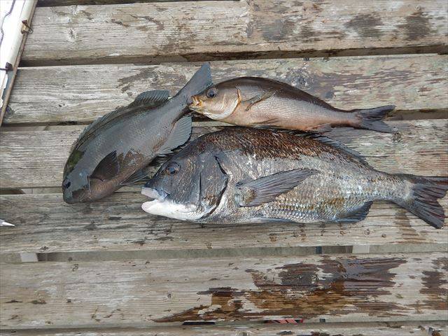 本命はグレ狙いでしたが、最初に姿を見せたのは良型黒鯛。力強い引きを楽しませてもらい、その後もアイゴや型は小さいながらグレがコンスタントに姿を見せます。