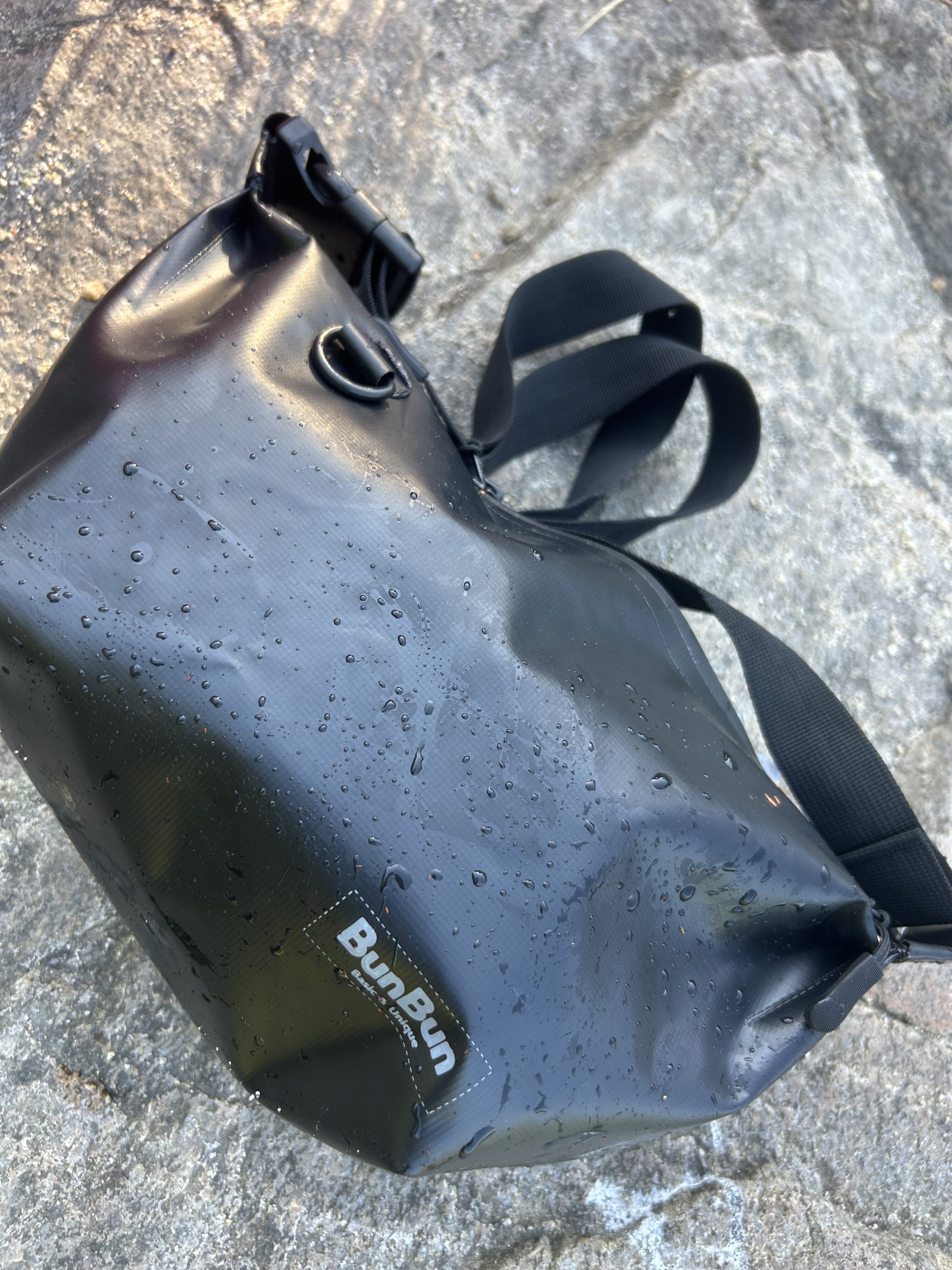 ブンブンのオリジナルウエストバックは超防水で釣り人の強い味方です。鮎釣りの時も常に川に持参しています!