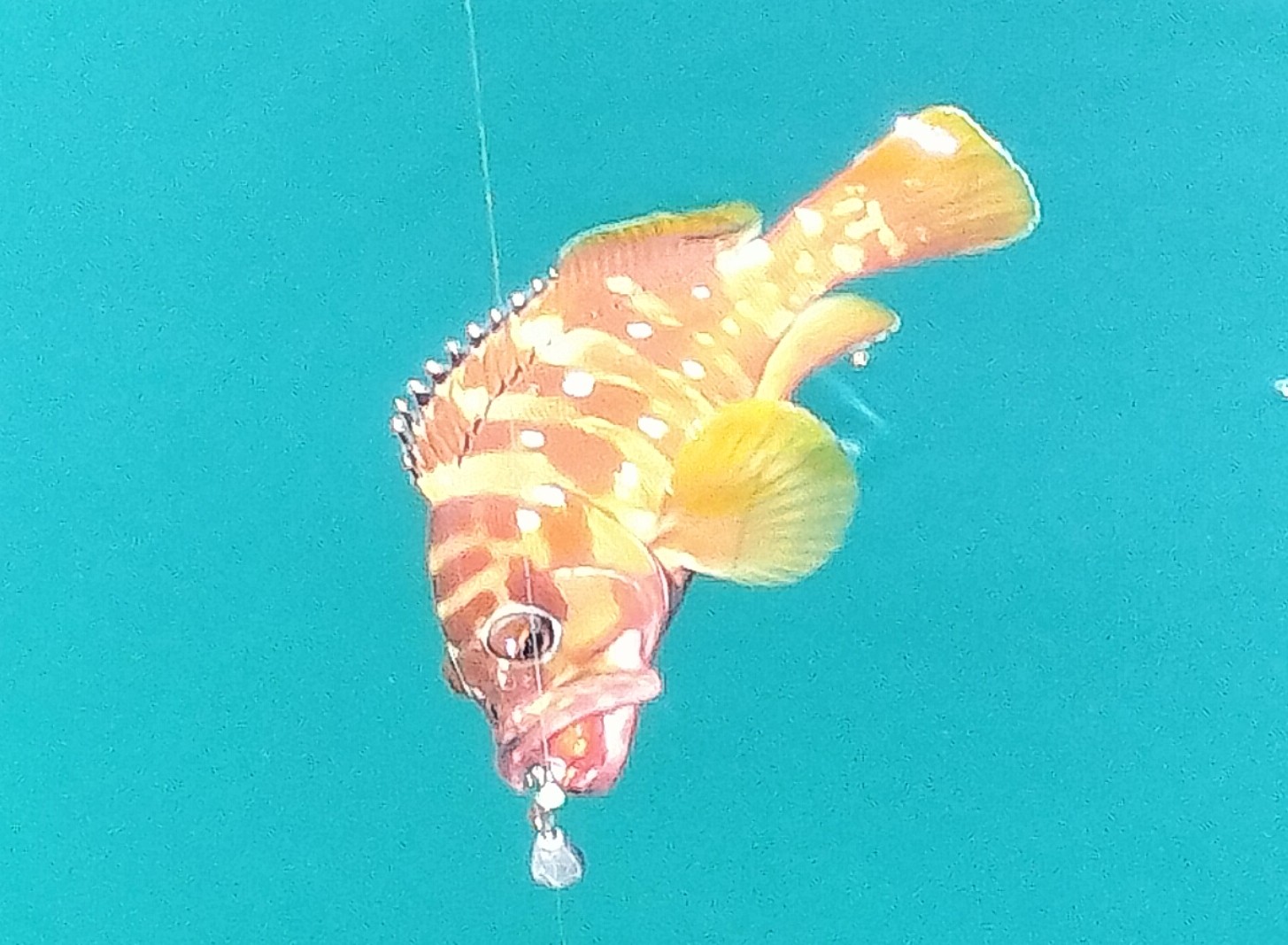 5時35分に受付を済ませて出船し、前回35〜36センチのオオモンハタ、アカハタをゲットした水深10mくらいの浅場から実釣開始。