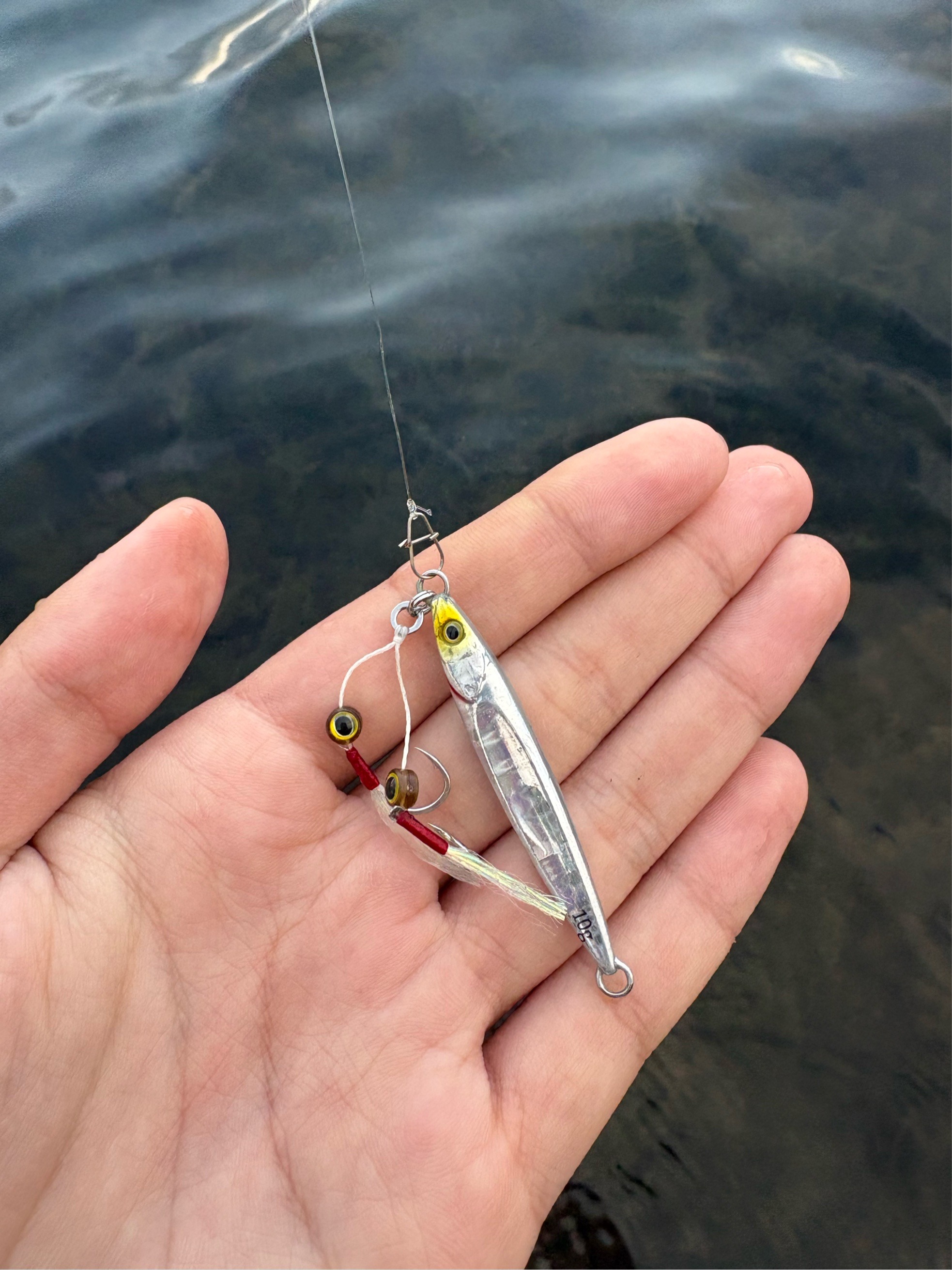 その後、アブガルシアのヒラヒラ系のジグで小さいのがヒットしますがすぐにバレてしまいました。 ヒメマスかウグイかなと思います。