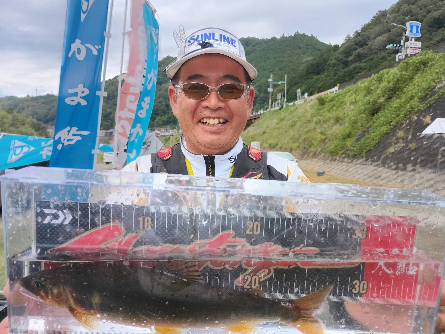 2025.09.30 印刷する 奈良県 吉野川の鮎 魚種 アユ/鮎 釣り方 友釣り 場所 奈良県 スタッフ 早野恵一郞 店舗 本社 釣行日 2025.09.28 コメント 今週も土日の連チャンで行ってきました。 日曜日はブンブン堺店のスタッフが、お客様をお連れして遊びに来られるというので、土曜日はとにかく反応あるとこ調査です!先週も神奈川のブンブンのお客様にデカい鮎釣って頂いたので今週もこの厳しい吉野川にせっかく来られるので出来る限りのことはしてミッション達成したいとこです。 土曜日は比較的釣り人少なかったので広範囲出来ました。瀬落ちスタートして25~27クラスがポツポツ。下って行き28センチ絡めていい感じで釣れ、午後も26~27センチまで。一発デカイの掛かりましたが、身切れやられました。 しかしながら先週と掛かるとこが大幅に変わりましたが、反応あるとこ調査できたので、明日に備えて早上がりして、先輩の家に泊めさせてもらってゆっくり休みます。 日曜日、予想以上の釣り人でまあまあポイント埋まりました、ブンブンスタッフの鮎のスペシャリストの堺店の平川さんとそのお客様とオトリ屋さんで合流。準備してもらって急いで昨日のポイントへ。どうにかお二人に入ってもらってポイント説明して釣りスタートしてもらいました。 しばらく見たあと、私は入るとこなかったので先輩とジャコ釣り(笑)はじめてやってみましたが、これがなかなか面白いのとマキエとの同調が意外に難しい(笑)エサが無くなるまで2時間ほど遊んで、鮎釣りの準備してお二人の様子見に。 スタッフの平川さんが見当たらず、下へ移動されたようです。お客様に状況聞いたところ『釣れました!見てください!一匹26センチくらいの大きいのも』2~3匹釣られたようです。見せて頂くと、やっぱり28センチくらいのデカイやつ(笑)先週もそうですが、サイズ感覚がおかしくなるのでしょうか(笑)『こんな大きい鮎はじめて釣りました!』ととても喜んで頂き、ミッション達成!その後もお客様はいいサイズポツポツ掛けてとても楽しそうです。私もひと安心してちょろっと竿出して、26センチくらいの二匹ほど釣って昼休憩。 平川さんが厳しそうなので、万が一の時にオトリ缶に浸けておいた、26~28センチの元気なオトリを二匹ほど渡して午後の部スタート。 午前と同じポイントに入りますが、反応弱い。あとから様子見に来た先輩は左岸から28センチ絡めて3匹ほどサクッと釣ってます(笑)お客様も少し下のポイントに入ってプチ入れ掛かりして楽しんでおられます。 私にも強烈なアタリで首まで浸かりながら下がっていくとなんか引きが違う?今日はデカいナマズくん(笑)どうにか取り込み。その後も少しやってみましたが、掛からず早めに終了。 平川さん、お客様もほどなくして戻って来られました。お客様は初吉野川で28センチ絡めて大きいので揃えてツヌケ!素晴らしいです!これで吉野川ファンまた1人増えました(笑)喜んでもらえてよかったです! そろそろ吉野川も終了が近づいてきて名残惜しいですね 利用オトリ店 下西オトリ店 オトリが少なくなってきてますのでオトリの状況をお問い合わせされてから行かれるほうが良いかと思います。 使用した釣具 竿 がまかつ パワースペシャルV 引抜急瀬90 仕掛 サンライン 天糸2号 フロロ05 がまかつ 大鮎無双8.5号チラシ 大鮎要9号3本錨など