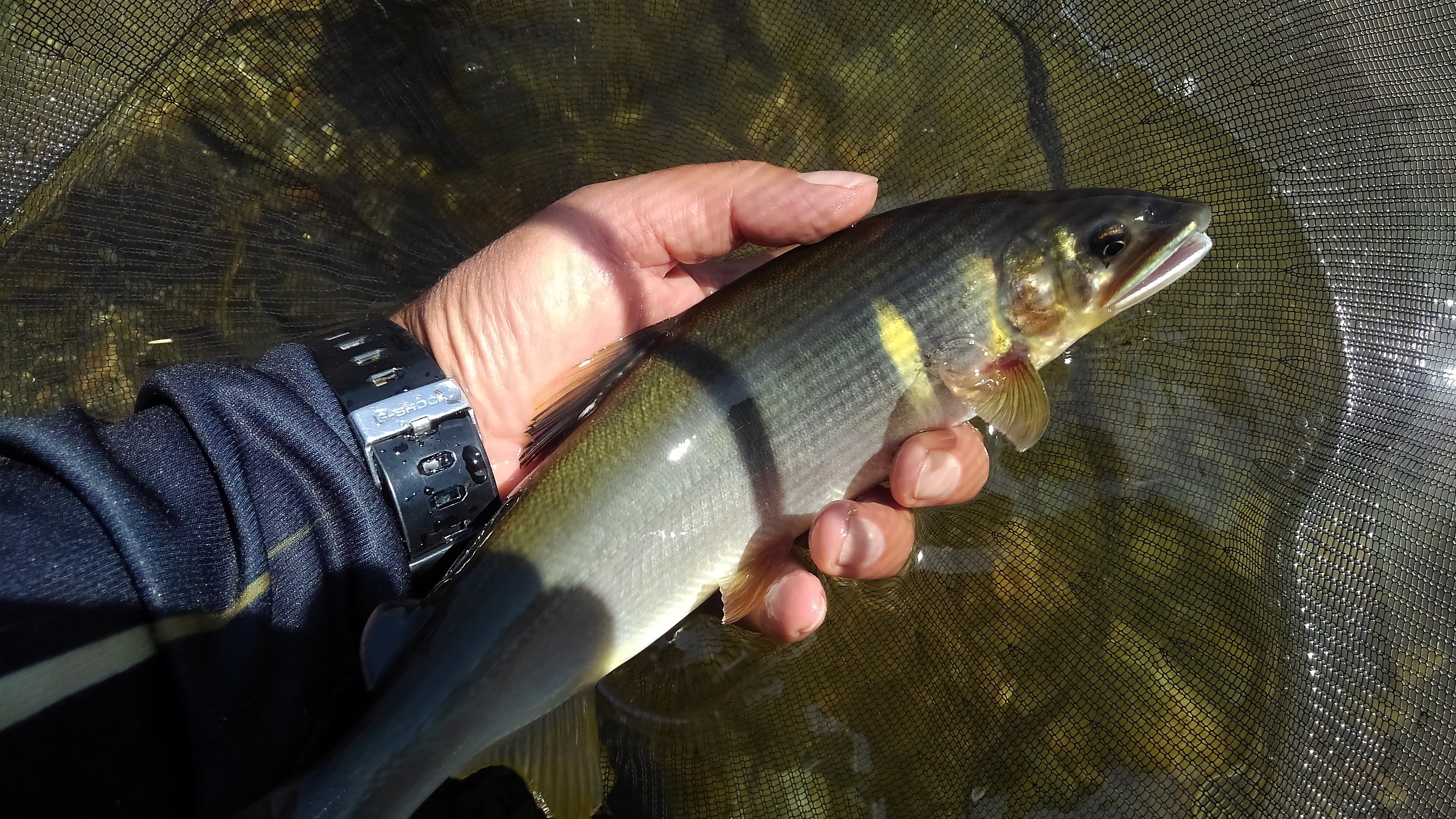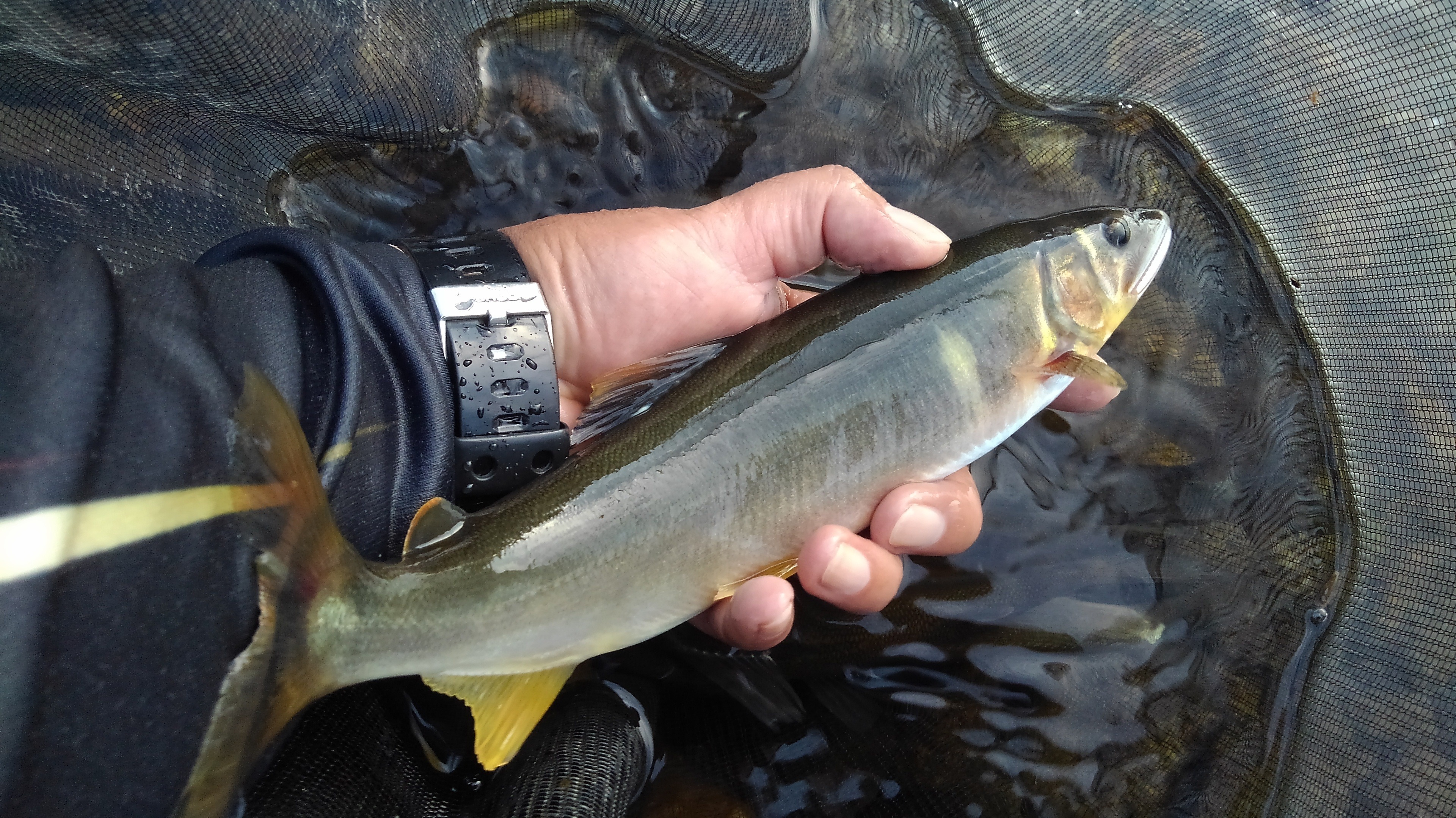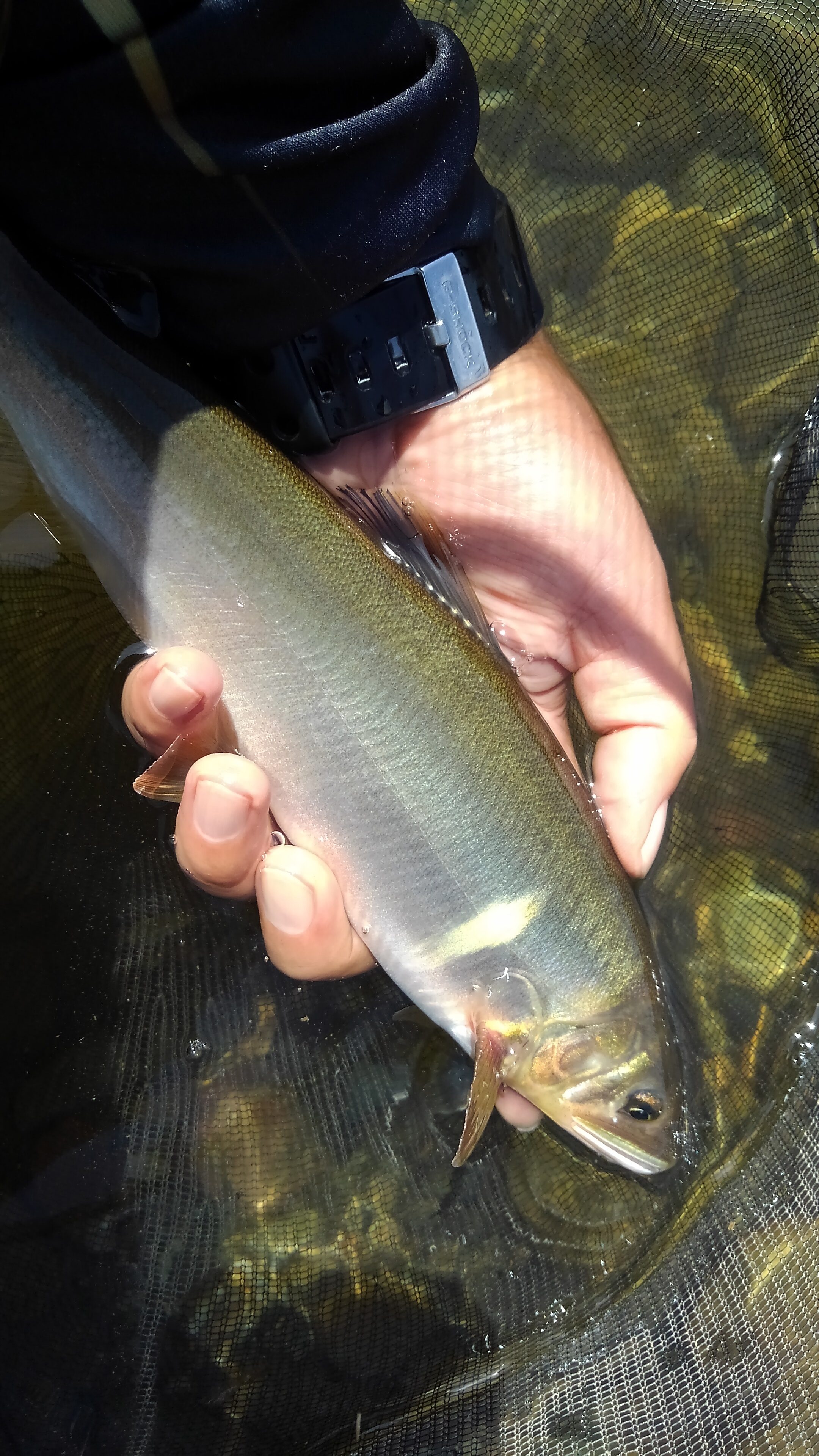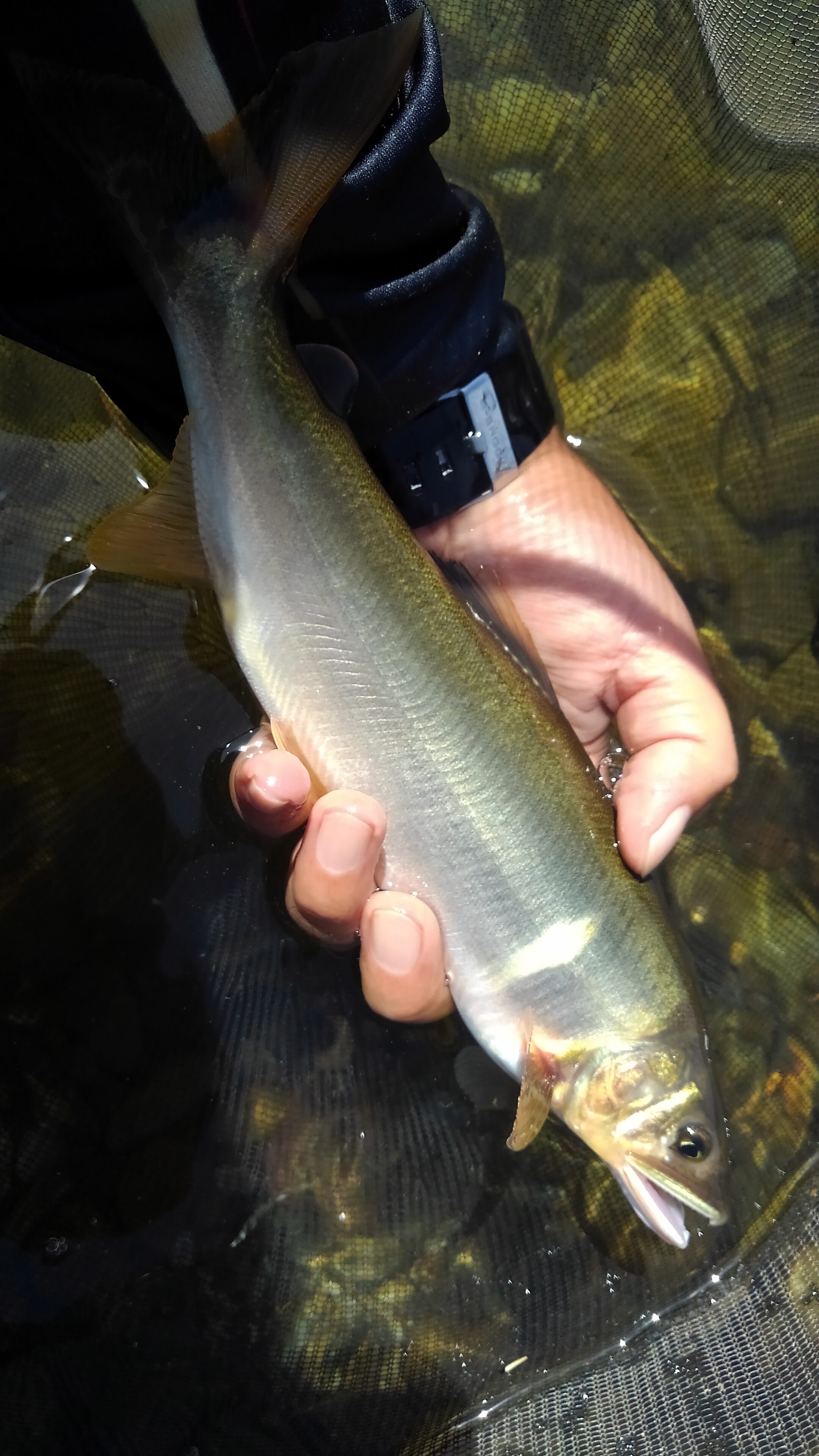 午前と同じポイントに入りますが、反応弱い。あとから様子見に来た先輩は左岸から28センチ絡めて3匹ほどサクッと釣ってます(笑)お客様も少し下のポイントに入ってプチ入れ掛かりして楽しんでおられます。