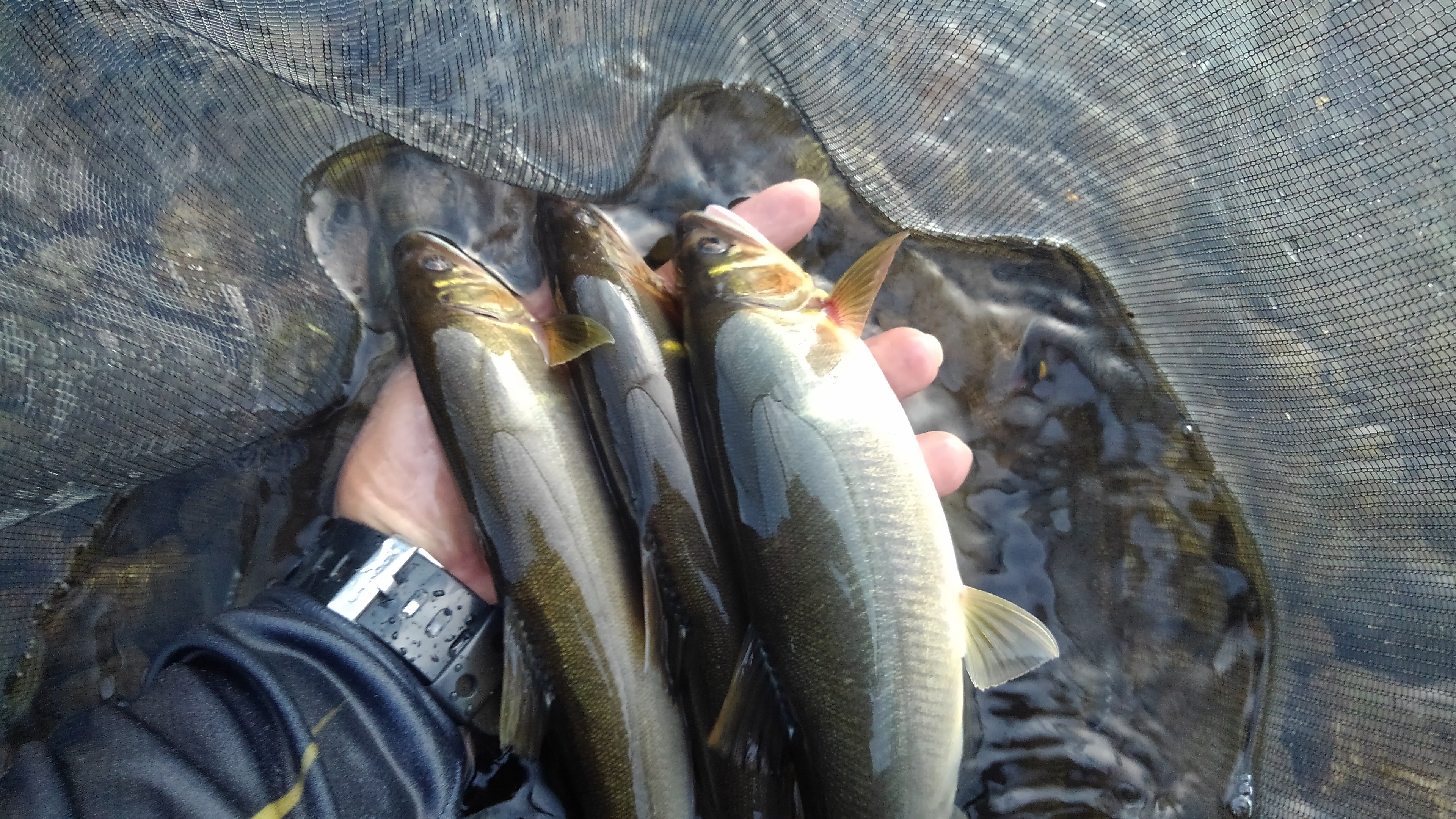 土曜日は比較的釣り人少なかったので広範囲出来ました。瀬落ちスタートして25~27クラスがポツポツ。下って行き28センチ絡めていい感じで釣れ、午後も26~27センチまで。一発デカイの掛かりましたが、身切れやられました。