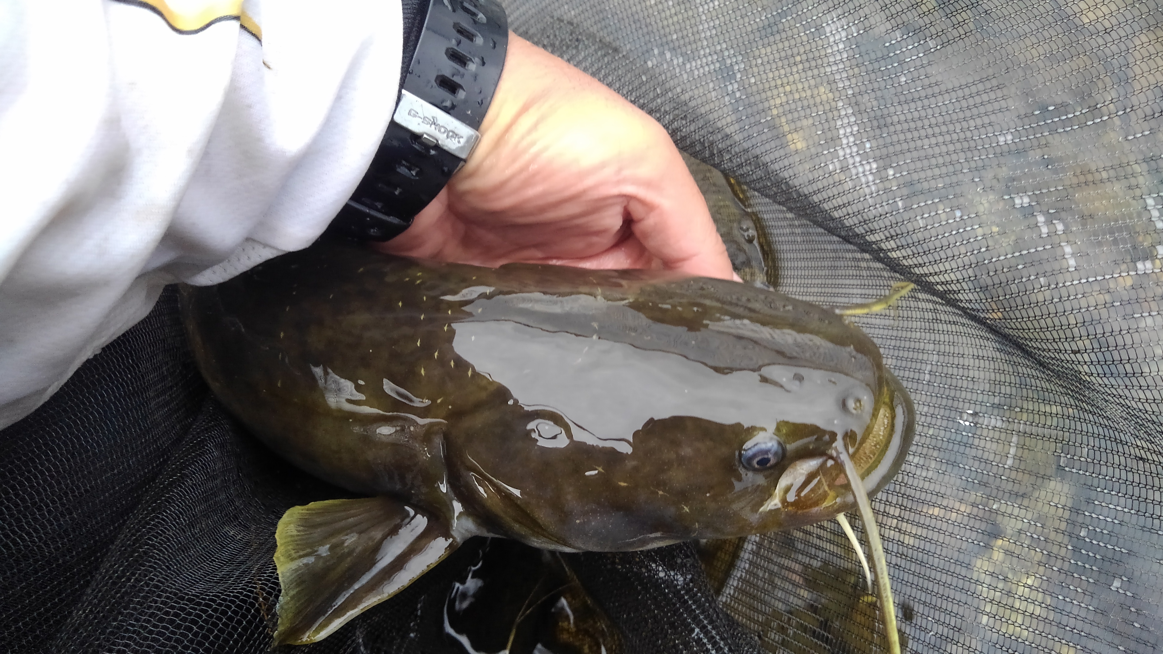 私にも強烈なアタリで首まで浸かりながら下がっていくとなんか引きが違う?今日はデカいナマズくん(笑)どうにか取り込み。その後も少しやってみましたが、掛からず早めに終了。