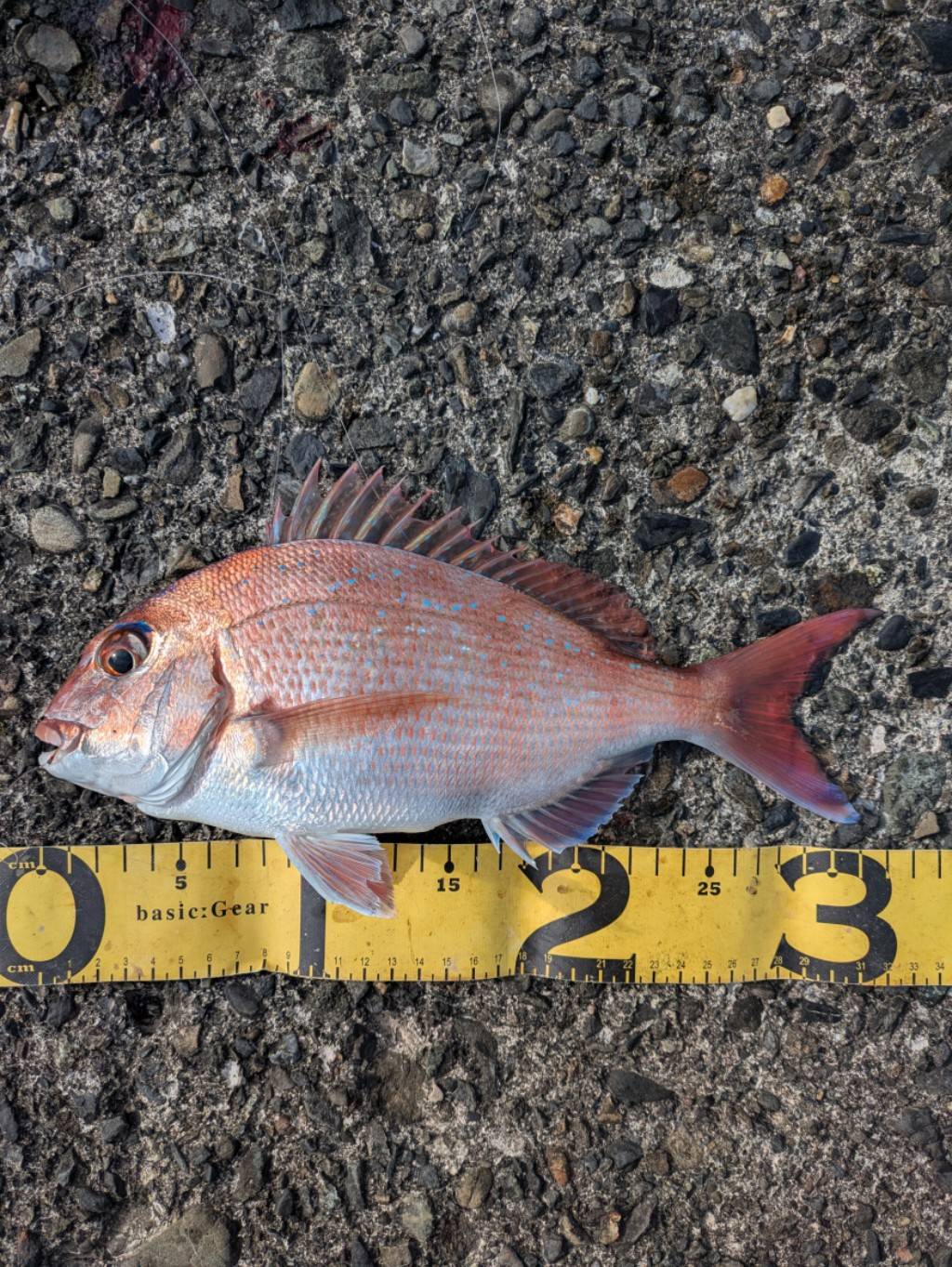 一投目、タナ22mハリス6mまさかのウキが入り合わせると、重量感!!&下に張り付き全く上がってこない。。5分後ようやく出てきてタモでキャッチ!