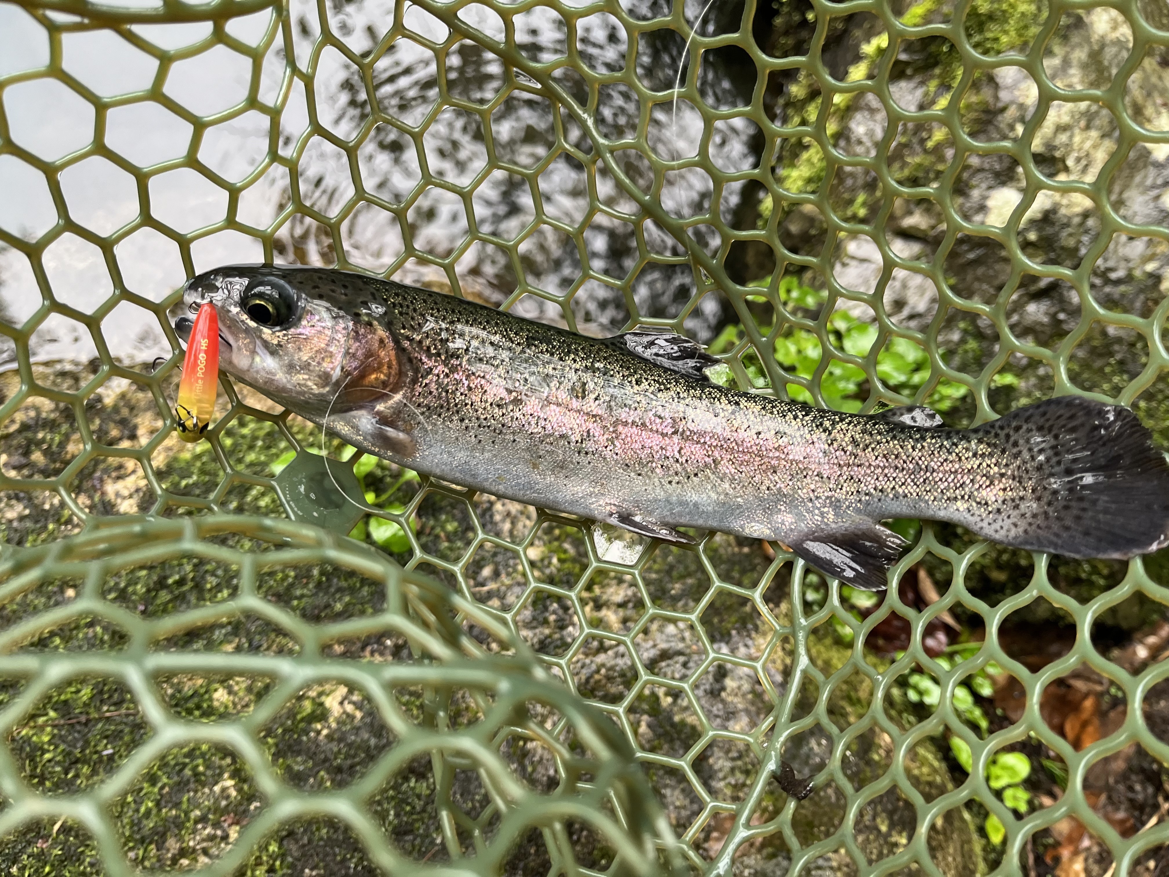 2025.10.02 印刷する 美濃フィッシングエリア 魚種 ニジマス/レインボートラウト サイズ 30 数 18匹 釣り方 ☆エリアトラウト 場所 岐阜県 天候 小雨 スタッフ 加納史暁 店舗 名古屋小牧店 釣行日 2025.09.25 コメント ブンブン名古屋小牧店スタッフの加納です! 今回は岐阜県の美濃フィッシングライフエリア様にてエリアトラウトフィッシングを楽しんで来ました🎣 昼から半日券を購入してポイントへ🐟 渓流の大自然を感じながら釣り歩くストリームエリア🏞️ 豊かな清流の水を利用したポンドエリア🏞️ 釣りのスタイルに合わせてお好きなシチュエーションで楽しめます🎣 今回私はポンドエリアでじっくり狙ってみることにしました。 クリアウォーターで魚はかなり表層に浮いていたのでまずはトップウォーター系クランクで様子見。 すると開始2投目で良型のニジマスゲット🌈 ヒットルアーはスミスのパペットサーフェス 幸先のいいスタートですがあとが続かず反応のいいパターンを探ります。 するとマイクロ系スプーンの水面直下引きで連発! ヒットルアーはサウリブのシャースFe ルアーに反応を示さない個体が多いなか釣ることが出来ました。 中層の魚にはダートアクションでリアクション的に使うと効果的でした。 水質が綺麗で魚の警戒心は高めでテクニカルな展開でしたが、ヒットパターンを探す釣りはとても楽しかったです✨ なにより大自然のなかでじっくり釣りをたのしめて最高でした🎣 使用した釣具 ロッド 天龍 ルナキア582 リール ダイワ 18イグジスト LT2000S-P
