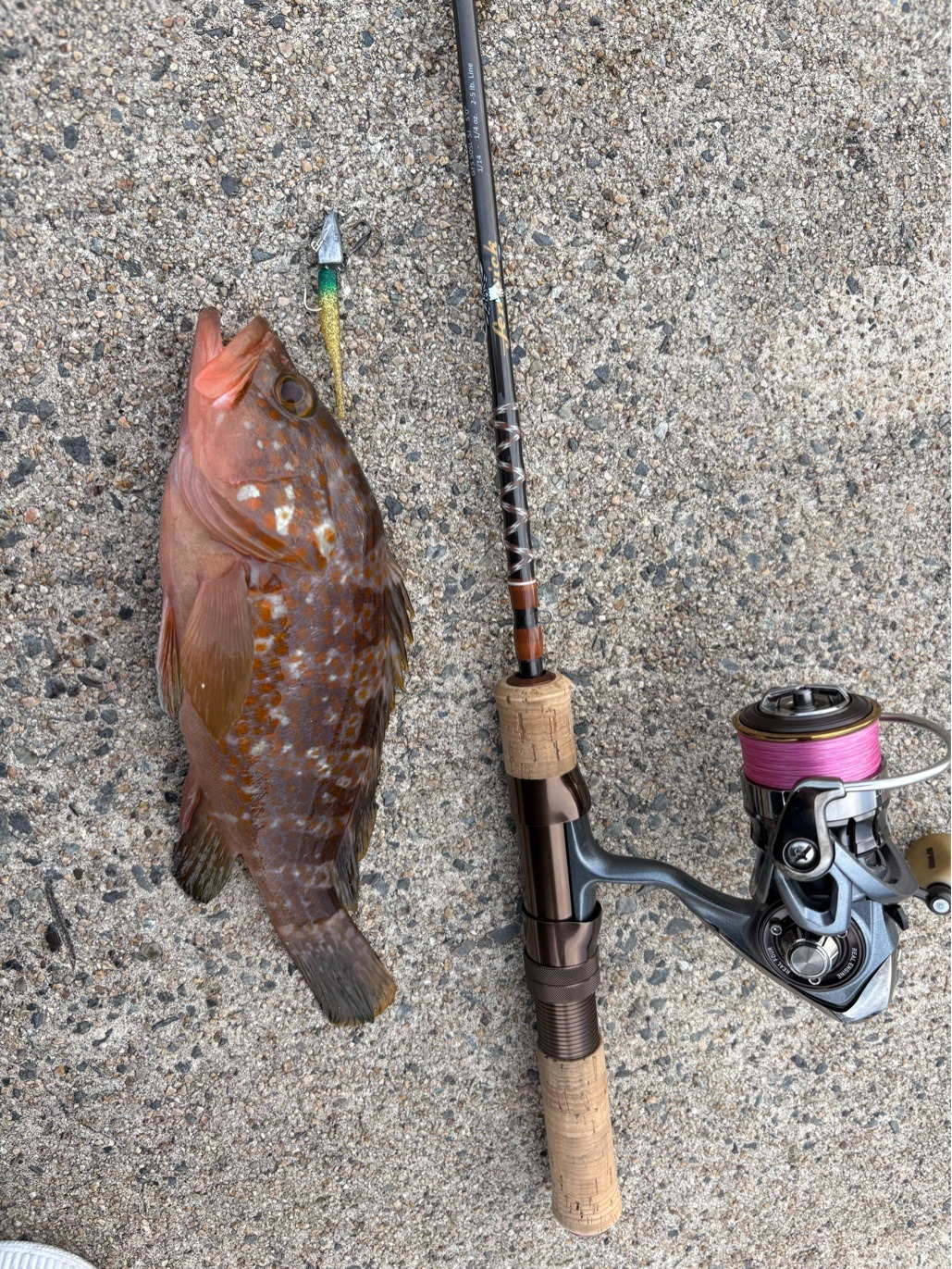 瀬戸内に来たからには釣りたいキジハタをキャッチ♪ 渓流ロッドで釣るとめちゃくちゃ曲がって楽しいです。