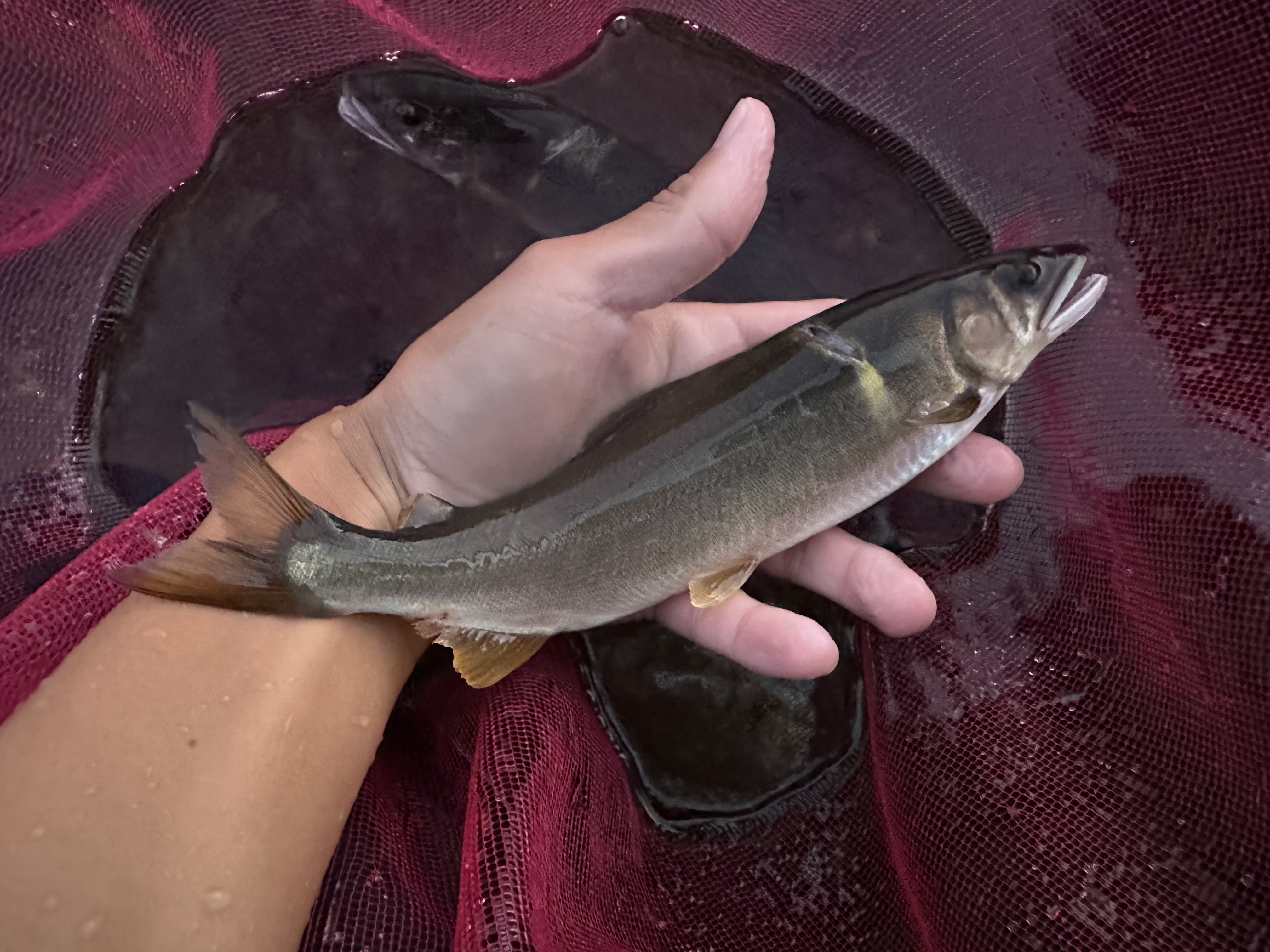 2025.10.03 印刷する 今季初の根尾川 魚種 アユ/鮎 サイズ 最大23cm 釣り方 友釣り 場所 岐阜県 天候 晴れ スタッフ 山上知哉 店舗 大津店 釣行日 2025.09.26 コメント こんにちは!ブンブン大津店の山上です。 9月26日、岐阜県の根尾川へ行ってきました。 昨年もシーズン終盤でお世話になった川で、尺鮎も出るような川。今年も尺までとはいかないものの、中々の大鮎が釣れているとのこと。もう今年の友釣りは終わろうかと思っていましたが、あまりにも名残惜しかったので行ってきました! 昼前に到着しましたが、中々の釣り人の数で場所選びに苦戦。去年以来の2回目なので、ポイントもあまり知りません。 必死に探してたどり着いたポイントへ降りてみると、シマノの某テスターさんが撮影をされておりました。少し見学していると凄いペースで釣っておられました。 やる気満々で泳がせ釣りからスタートすると、早速背掛かり!これは結構釣れる予感!と思いましたが、中々ペースは上がらず。足で稼いで竿抜けをやってあげないと中々掛かりませんでした。 しかも僕が選んだエリアは何故かサイズが上がらず、最大23cmで終了となりました。 ラストのつもりでしたが不完全燃焼なので、もう少しだけ悪あがきしてみようと思います! 使用した釣具 竿 銀影エアショートリミテッドMT87M 水中糸 アーマード0.1号 針 ダイワ3本錨9.0号