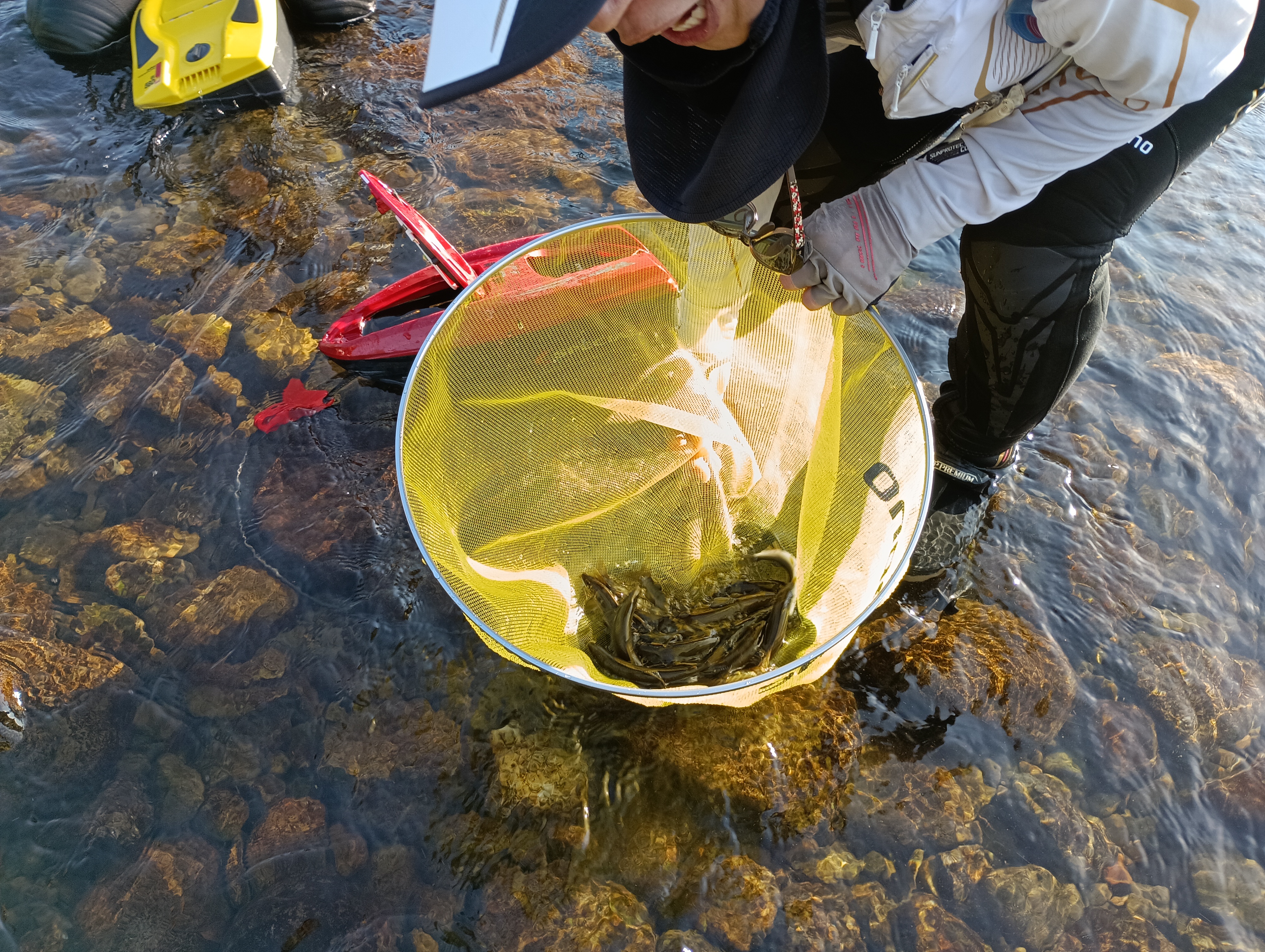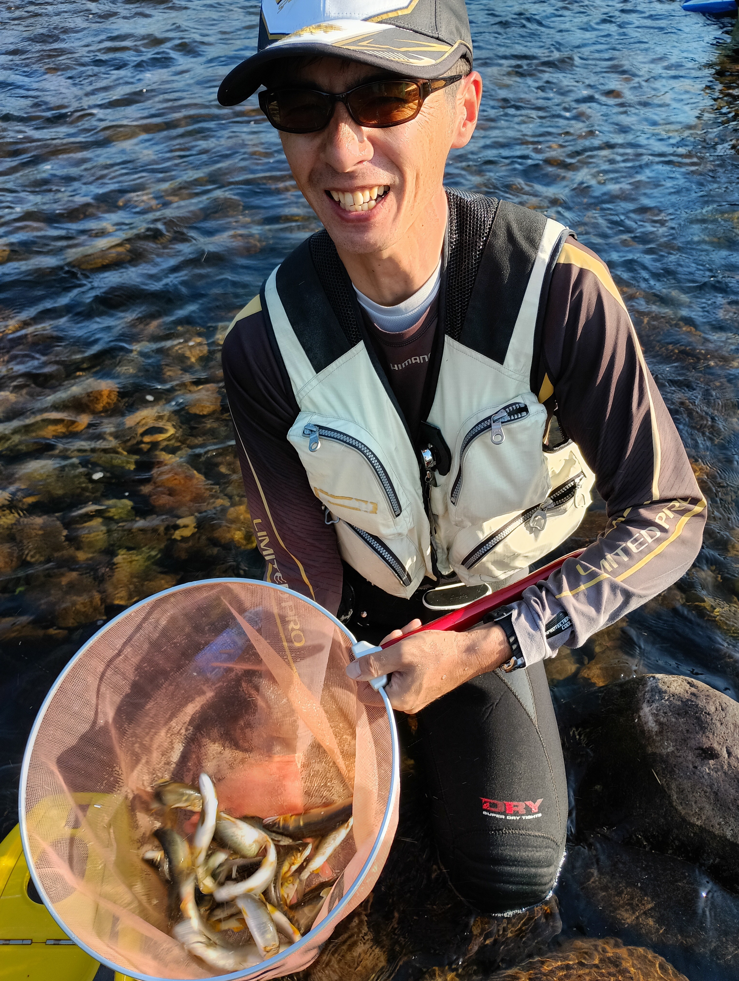 サイズは18センチくらいまででしたが、瀬でのあたりは激しく、よく引きます