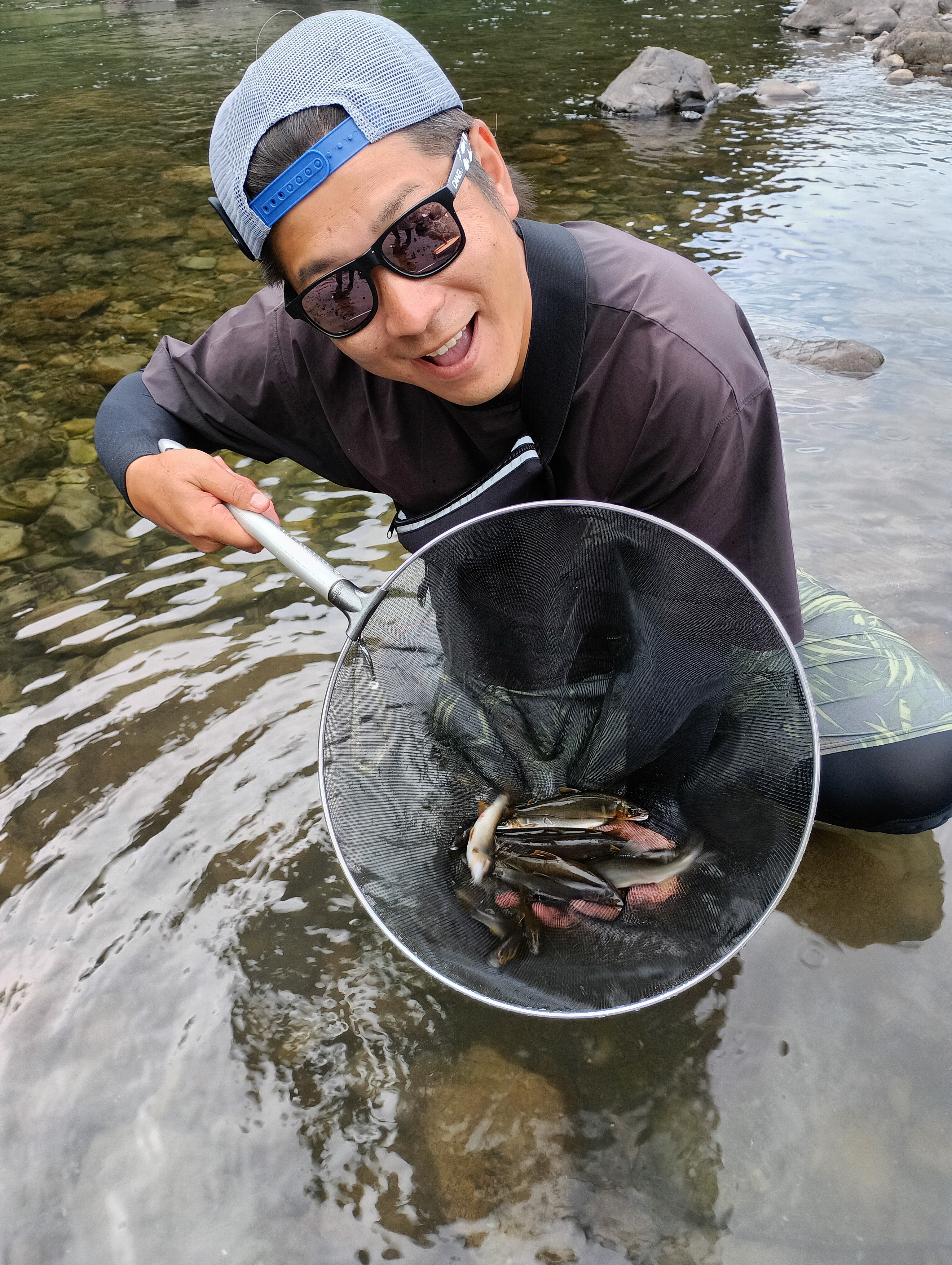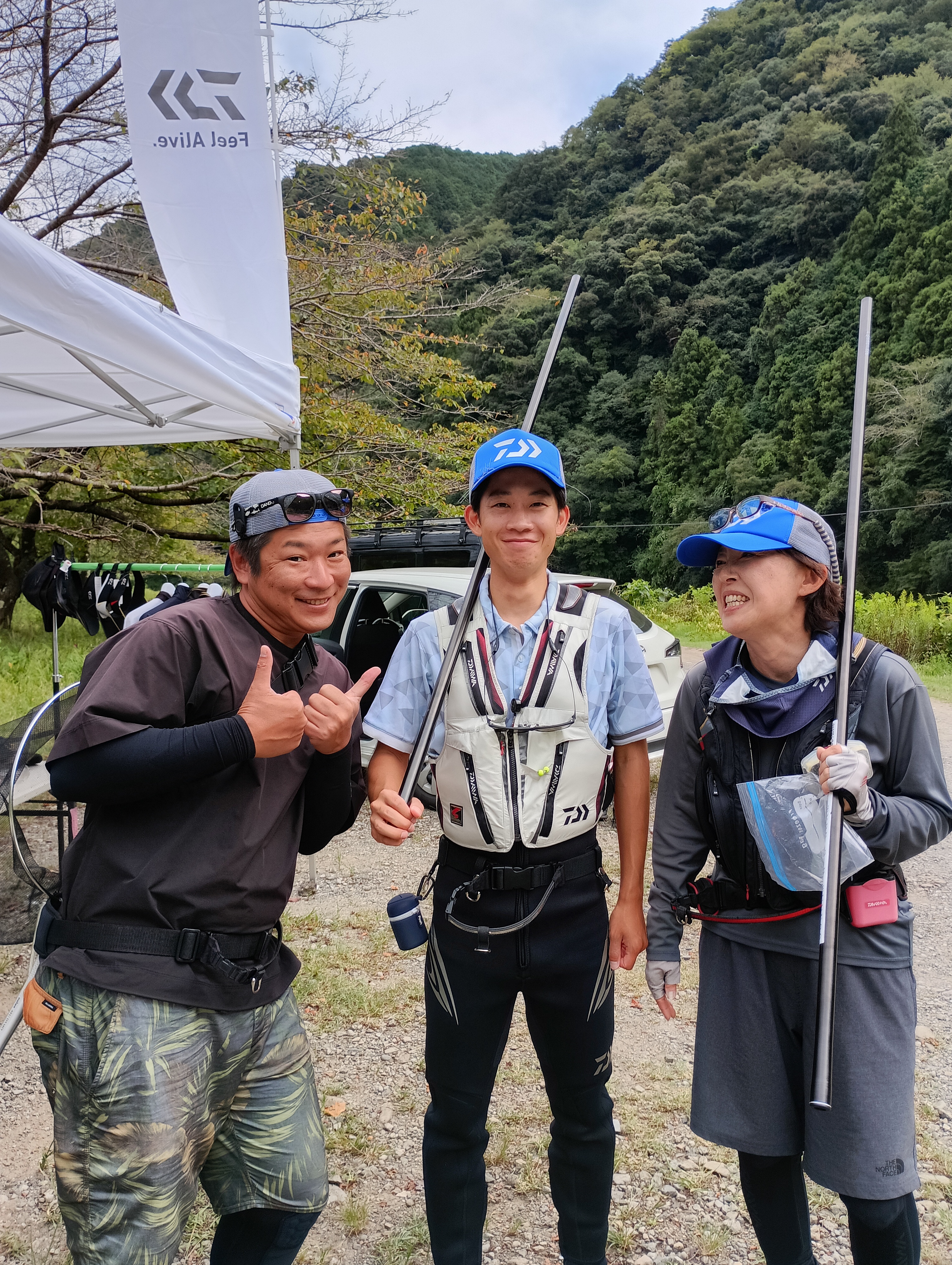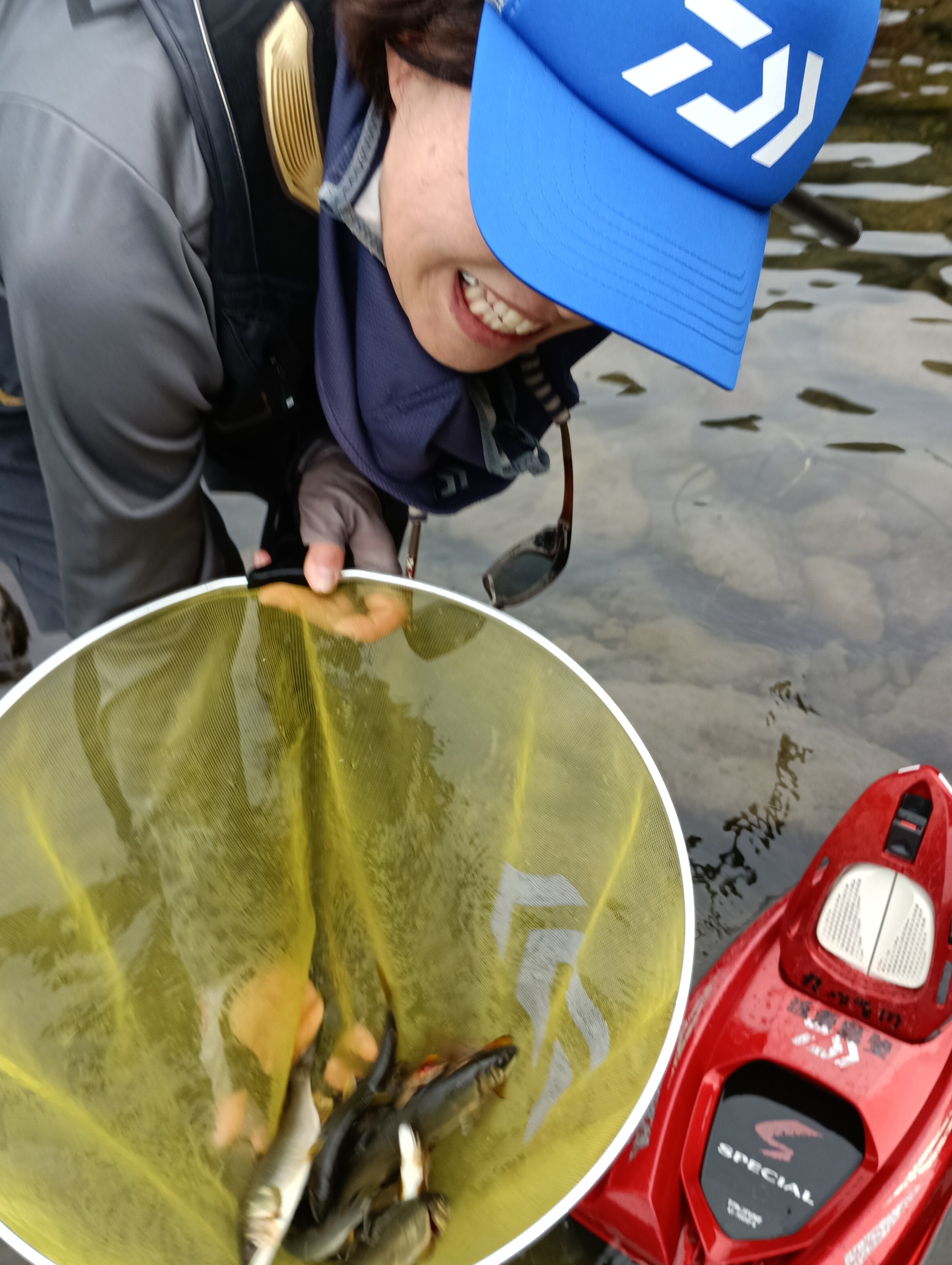 2025.10.06 印刷する ブンブンメンバーで有田川2日目は白石の瀬♪ 魚種 アユ/鮎 サイズ 10~15センチ 数 鮎/15匹 釣り方 友釣り 場所 和歌山県 天候 晴れ後曇り スタッフ 平川葉子 店舗 堺店 釣行日 2025.10.02 コメント 今日はブンブンメンバーでまたまた、有田川。今日は白石の瀬へ来ました 朝8時に集合。 今日は郡山店から横尾さん、大津店から山上さんと釣行です。 白石の瀬は貸し切り♪ 朝イチは降りてすぐの瀬肩へ。 養殖から変えるのに少し時間が掛かりましたが 野鮎に変われば掛かりが早くなります 3匹ほど釣れたので瀬の流れ込み付近を打っていきます。サラ場サラ場でポンポン掛かります アタリもキツく、浅めのところでは、掛かるところが見えてエキサイティング♪ 10匹ほど掛かり、皆さんでお昼に。 午後からは少しお客さんも増えましたが 人は少なめです。 白石の瀬は大会でもよく使用され、車も停めやすく足場も良いので、人も多く 比較的プレッシャーの高いエリアです この日は人も少なく、よく掛かりました。 朝からは、水中糸を今年発売のダイワメタコンポデュラヘビー005でやりました 水切れがよく、従来のざらざら感がなくなり使いやすい糸でした。 針も最初はダイワエアスピードでしたが蹴られが多かったので、スペシャルパワーミニマムに変えると、バレなしでした。 午後からは少し曇ってきて、追いも少し収まってきたのでフロロに変え、ポツポツ掛けましたが やはり深いところは入りにくさを感じました 15時には終え、竿を片付けました。 有田川ダム下は海産の天然遡上が、型は少し小さいですが、数が掛かります ダム上では、網入れは入りましたが、鮎は結構残っており、しかも放流鮎はかなり大型化しており尺も出ています ぜひ、仕掛けを種類を持っていかれ、数釣りと、大鮎釣りの両方を楽しめる、有田川へ逝かれてみて下さい 堺店では、鮎用品が通常価格より更に10%オフ(当社指定品に限る)となっております。 ぜひお立ち寄り下さいませ 使用した釣具 仕掛け 天井糸pe04 水中糸ダイワメタコンポデュラ005 針 ダイワ エアスピード6,5 4本錨 仕掛け 天井糸pe03 水中糸フロロ0175 針 ダイワスペシャルパワーミニマム6,5 4本錨 竿 ダイワ 銀影競技axh85
