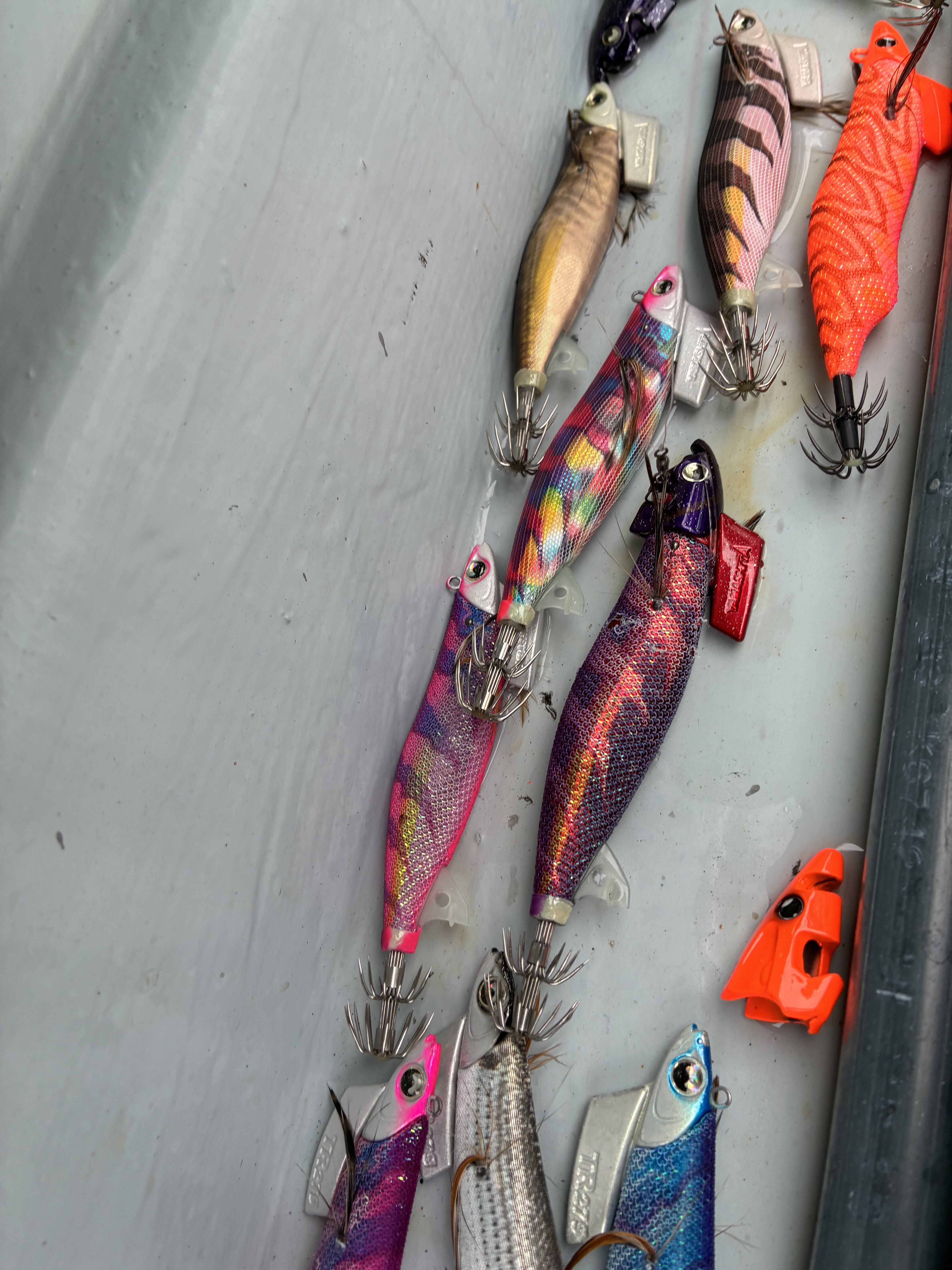 2025.10.06 印刷する 今年初のティップラン! 魚種 アオリイカ 釣り方 ☆ティップラン 場所 神奈川県 スタッフ 浦田悠生 店舗 イオン相模原店 釣行日 2025.10.03 コメント こんにちは!イオン相模原店の浦田です🍒 今回は今期初戦のティップランに行って来ました! 釣果情報等見ているとポツポツ釣れていますが、まだまだサイズは小さい模様… まだ早い様な気もしますがとりあえずという事で行って来ました! 出船してすぐのポイントからスタート!10m前後の水深のためシンカーは無くてもいいですが、個人的には少し重いぐらいの方がアタリが取りやすいため、7gのシンカーをセット! 早速船中でポツポツ釣れ出し、自分にもモゾっとしたアタリが!まずはかなり小型ですがゲット!! その後も何回か流しを変えてやってみますが、潮も走らず、風も無いというティップランには不向きな状況でアタリが遠のきます笑 悶々とした状況の中、船長の判断で深場に行きます!深場での1流し目!しゃくりあげて止めているティップがプンッ入り、ヒット! すると船中でも次々にヒットが重なります!そんなパターンが何回かありポツポツですが拾って数を伸ばせる様に!そして、最後の流しで本日最大サイズがヒット!!何とか締め括れました!笑 最後までご覧いただきありがとうございました🍒 使用した釣具 ロッド 【ダイワ】エメラルダス AIR BOAT 65ML リール 【ダイワ】24セルテート2500−H