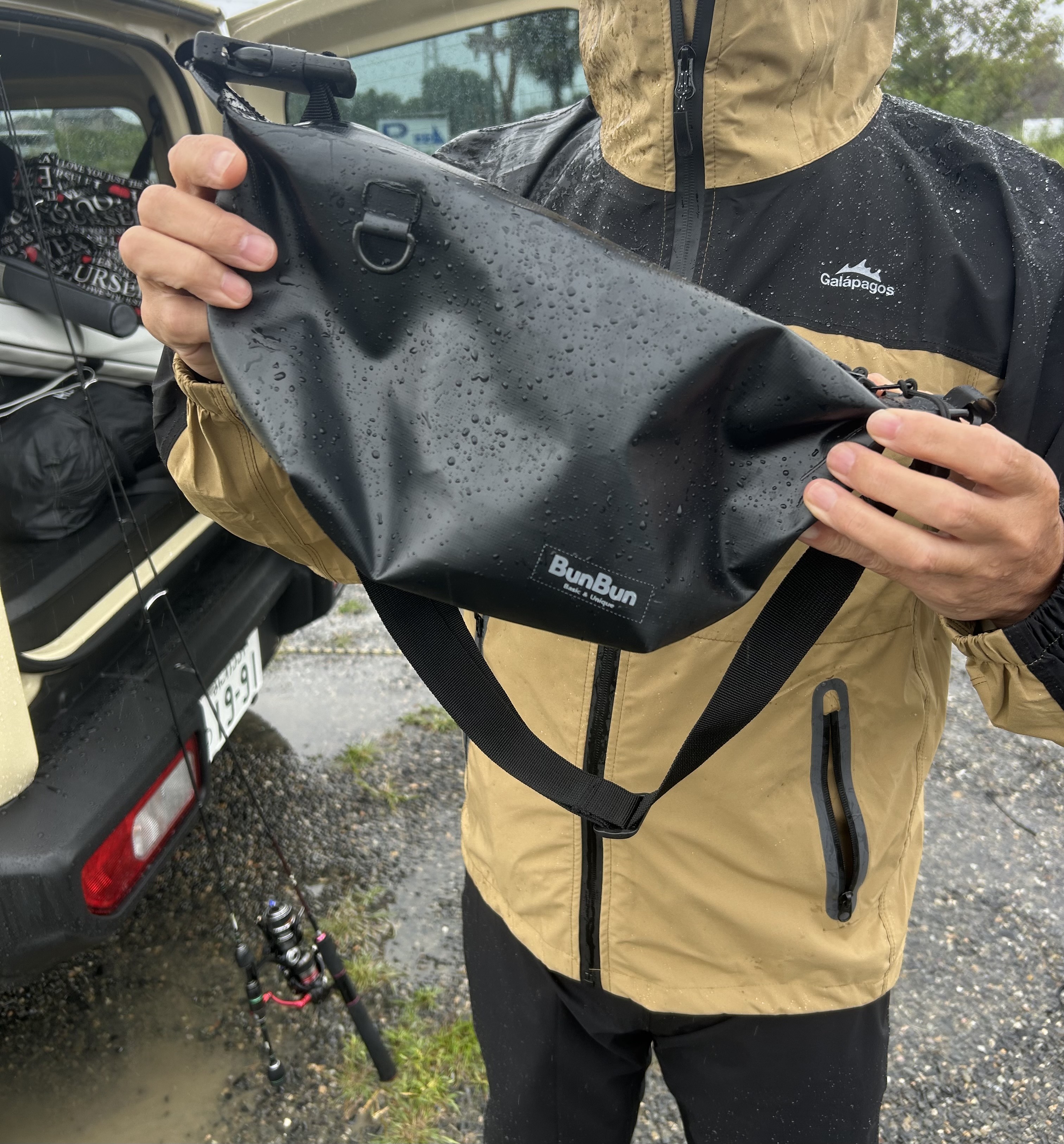 本日は雨の中の釣行でしたが、いつも釣りに携帯するブンブンオリジナルのウエストバッグは防水性抜群で雨でも全く問題なしです。