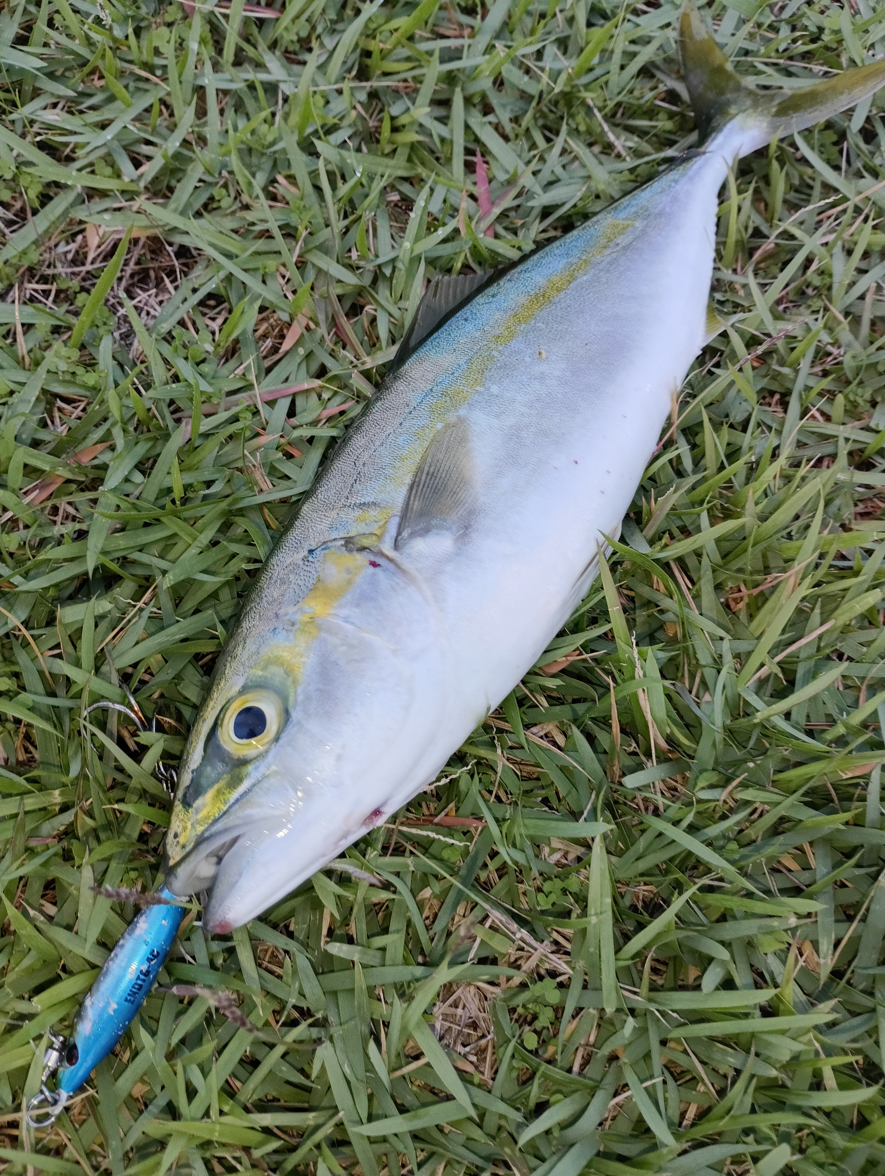 夕マヅメの時合いでは、ツバスの回遊が確認でき、抜き上げポチャリもありましたが、お土産確保。