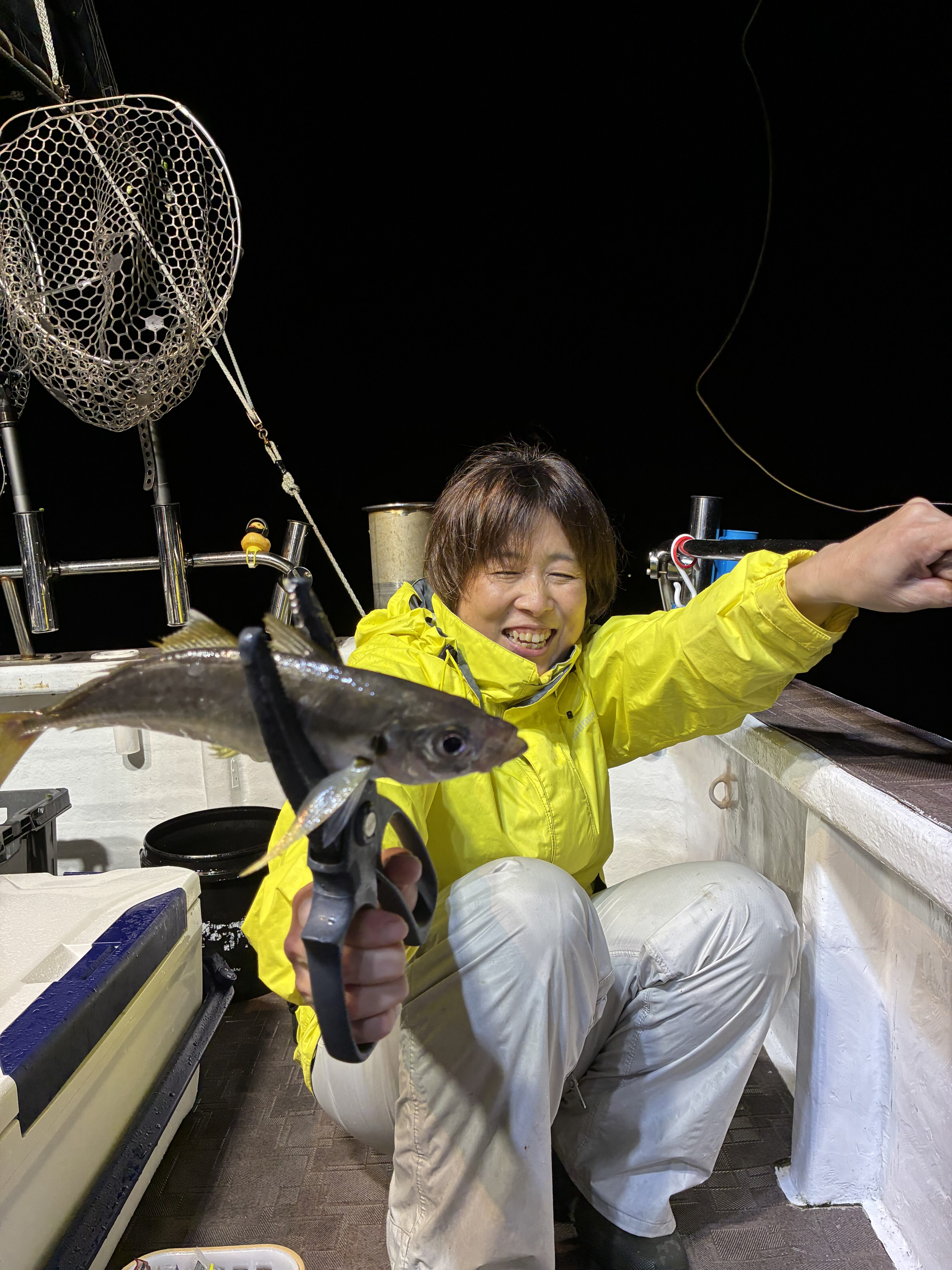 2025.10.09 印刷する 和歌山バチコンアジング 魚種 アジ サイズ 25cm 釣り方 ☆バチコン 場所 和歌山県 天候 小雨 スタッフ 小嶋里美 店舗 高槻店 釣行日 2025.10.03 コメント 今季初めてのバチコンアジングに行ってきました。和歌山県田辺のシーホースさんです。去年もSLJ &バチコンで良型マダイやマアジをたくさん釣らせてもらったので今回もと意気込んでスタートしました。ポイントまで15分ほどの水深28mでほどなくしてアタリがありましたが掛けられず…その後もヒットするもなかなか釣りあげられず、やっと釣れたと思ったらマルアジでした…サバも湧いていて底のマアジまでたどり着くのが大変でした。オモリや仕掛けを切られつつもずっと何かしらアタるのでなかなか忙しい感じでした。でもそれが楽しくて1人で爆笑したりしながはよく遊びました。終わってみると持ち帰り用は良型5〜6匹というところでした。シーホースさんでは氷を用意して下さるので新鮮な魚をベストな状態で持ち帰れてとても有難く、大変美味しくいただきました。またすぐに行きたくなりました(笑) 使用した釣具 リール ヴァンキッシュC3000MHG ロッド 鯵泥棒竿 ADR-S611M