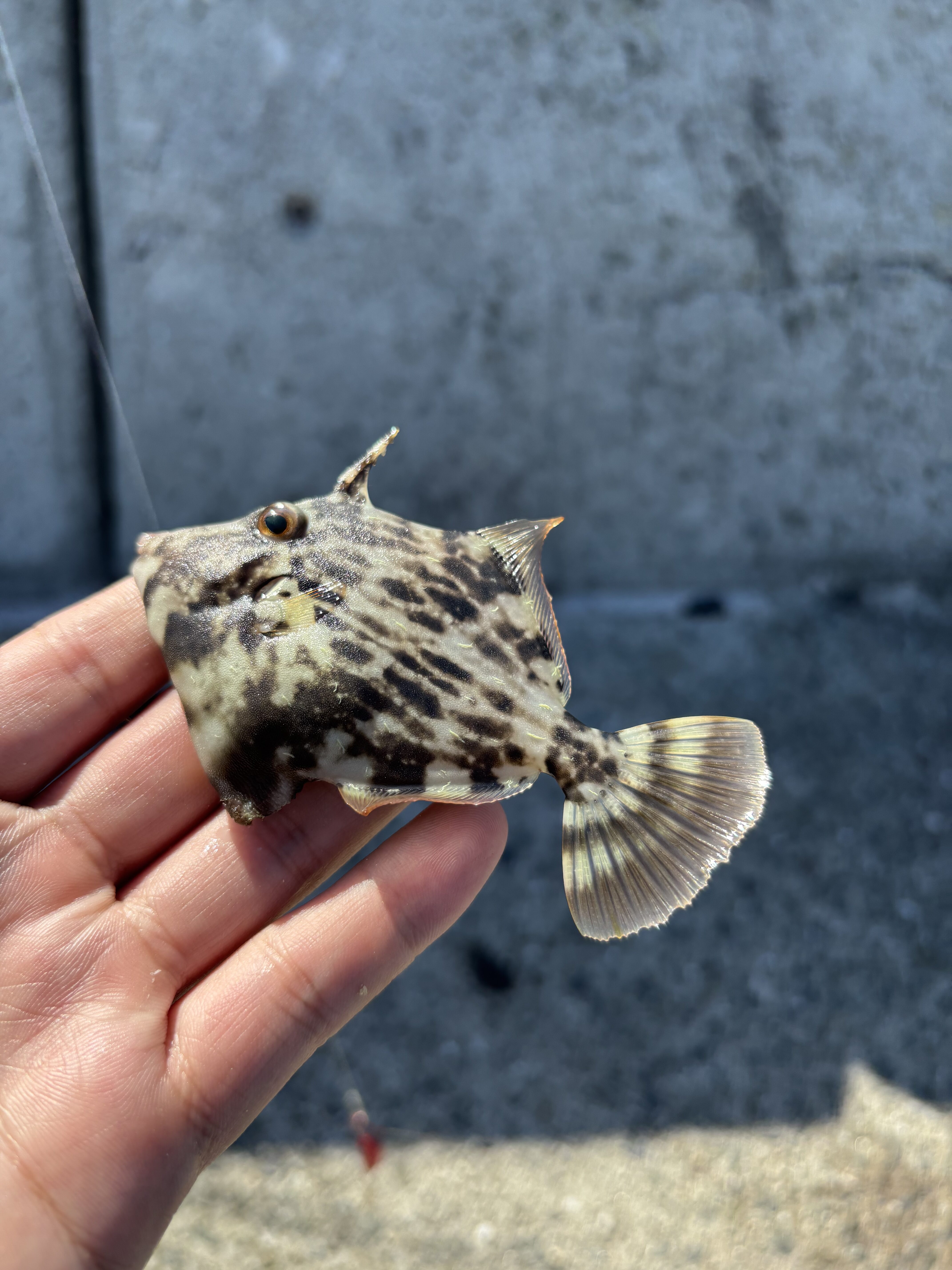 一投ごとにアタリはあるものの、なかなか掛けきれず…。上がってくるのはキュウセンベラやササノハベラ、チャリコなどの外道ばかりで、本命は苦戦気味💦 そこで少しポイントを移動して再チャレンジすると、明確なアタリと引きが!抜き上げで惜しくもバラしましたが、同じ場所に投げ直すと良型のキスをGET‼️