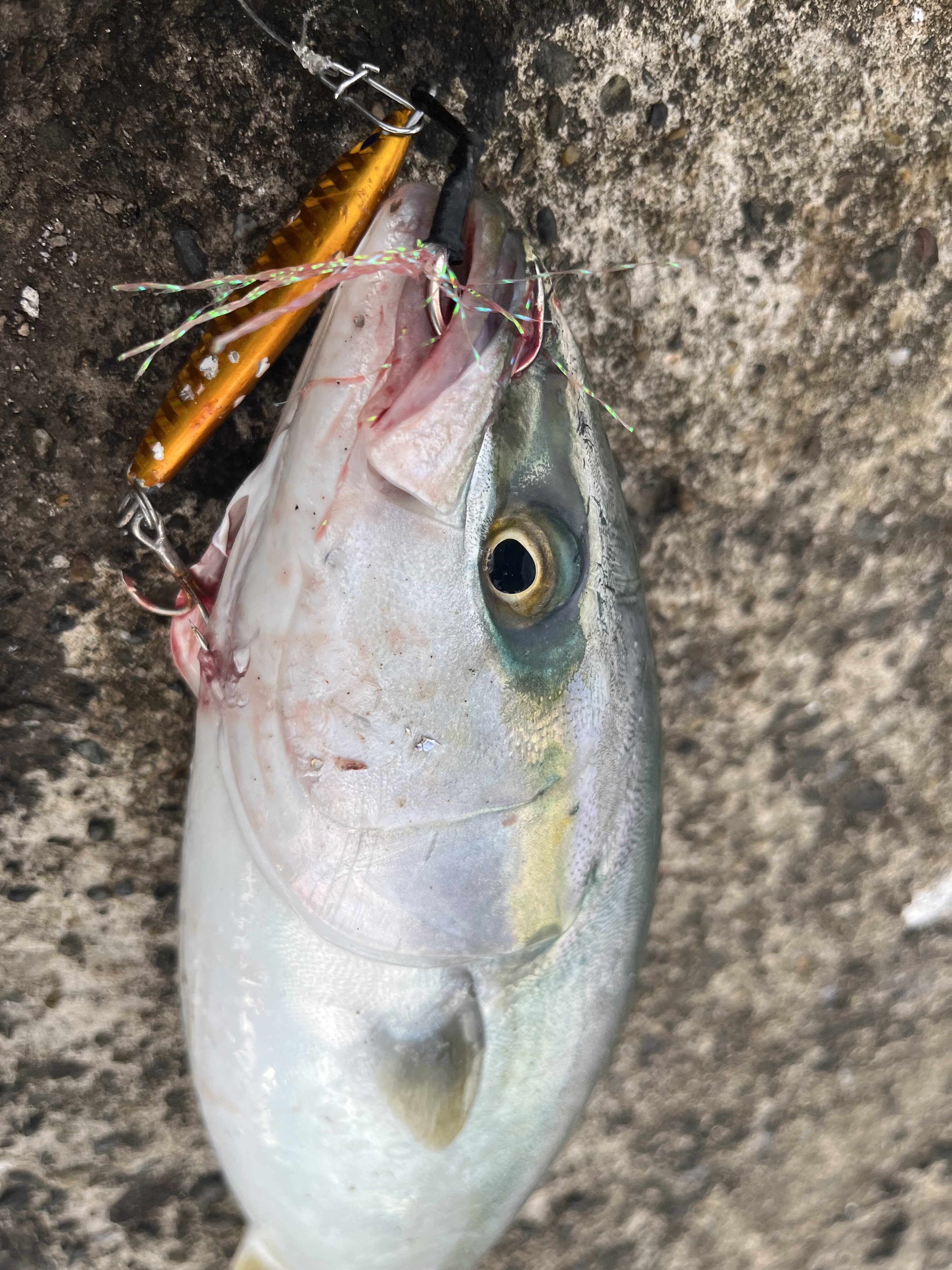 2025.10.15 印刷する 青物継続中 魚種 タチウオ/太刀魚 ブリ/メジロ/ワラサ/ハマチ/イナダ/ツバス/ワカシ 釣り方 ☆ショアジギング 場所 千葉県 スタッフ 陶山蓮 店舗 川崎大師店 釣行日 2025.10.06 コメント 仕事終わりにいつもの千葉県某所へ 暗いうちは太刀魚を狙うも不発… 何もなしかーとおもって朝を迎えると一瞬だけ入れ食いに ワームのワインドにやたら好反応で数本キャッチしたところで反応皆無へ 明るくなって水面を確認するもベイトはおらず…… しかしルアーを投げるのが釣り人の宿命 ひとまずローライト気味で反応良さげなトップルアーから投げると、ボコん!! っとド派手にバイトが出るも乗らず… その後も連続してバイトがあるが不発… 何故なのか…と思いつつも反応が薄れて来たのでジグに変更 フルキャストしてからの誘いを入れているとしゃくっている最中に止まるハンドル 上がって来たのはイナダサイズの青物 トップルアーに反応するけど針がかりしない理由が判明 朝イチはちっちゃいサイズが群れてたようで… その後はこれと言ったあたりもなく納竿 使用した釣具 ロッド コルトスナイパーXR リール ツインパワーc5000xg