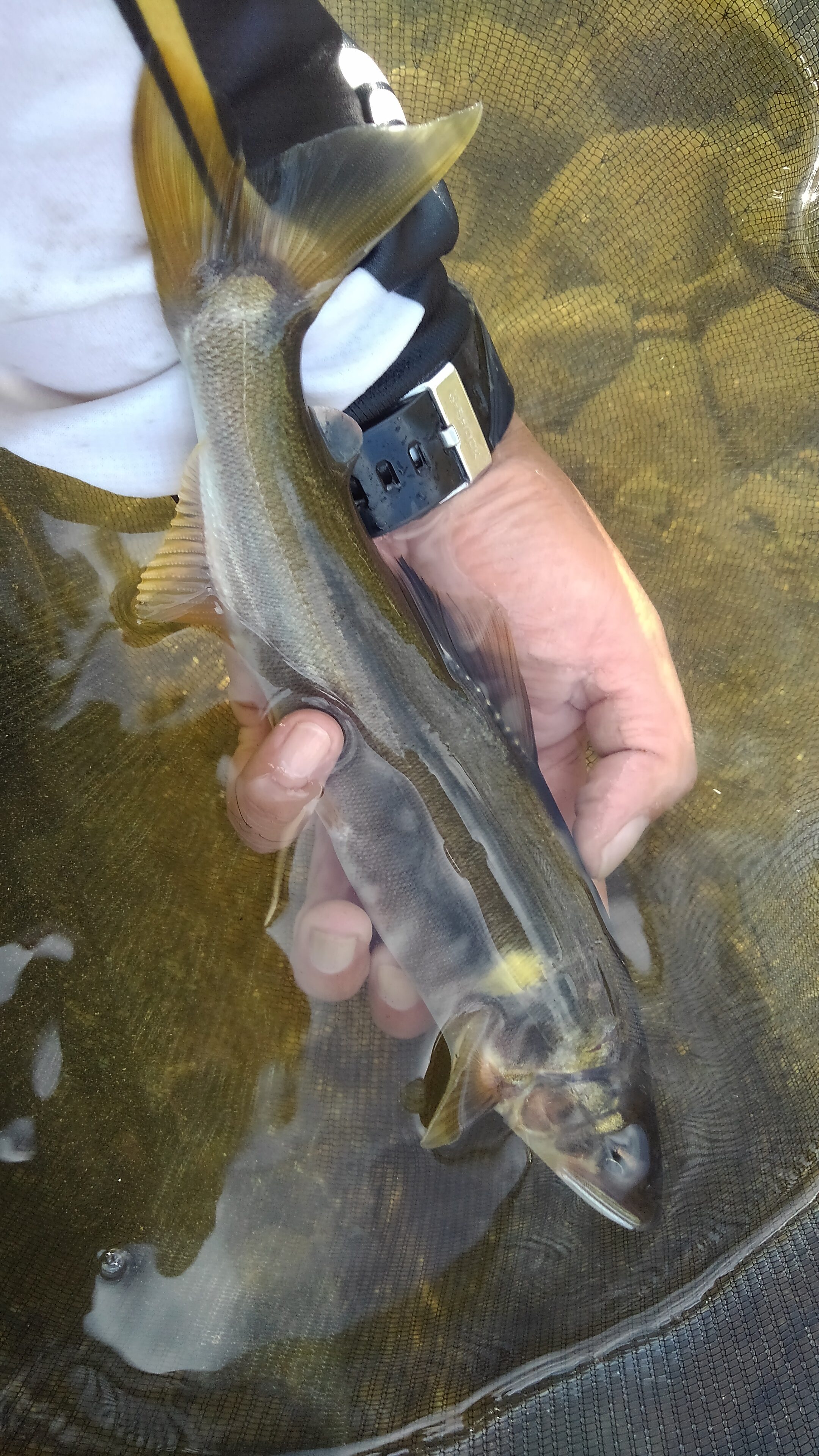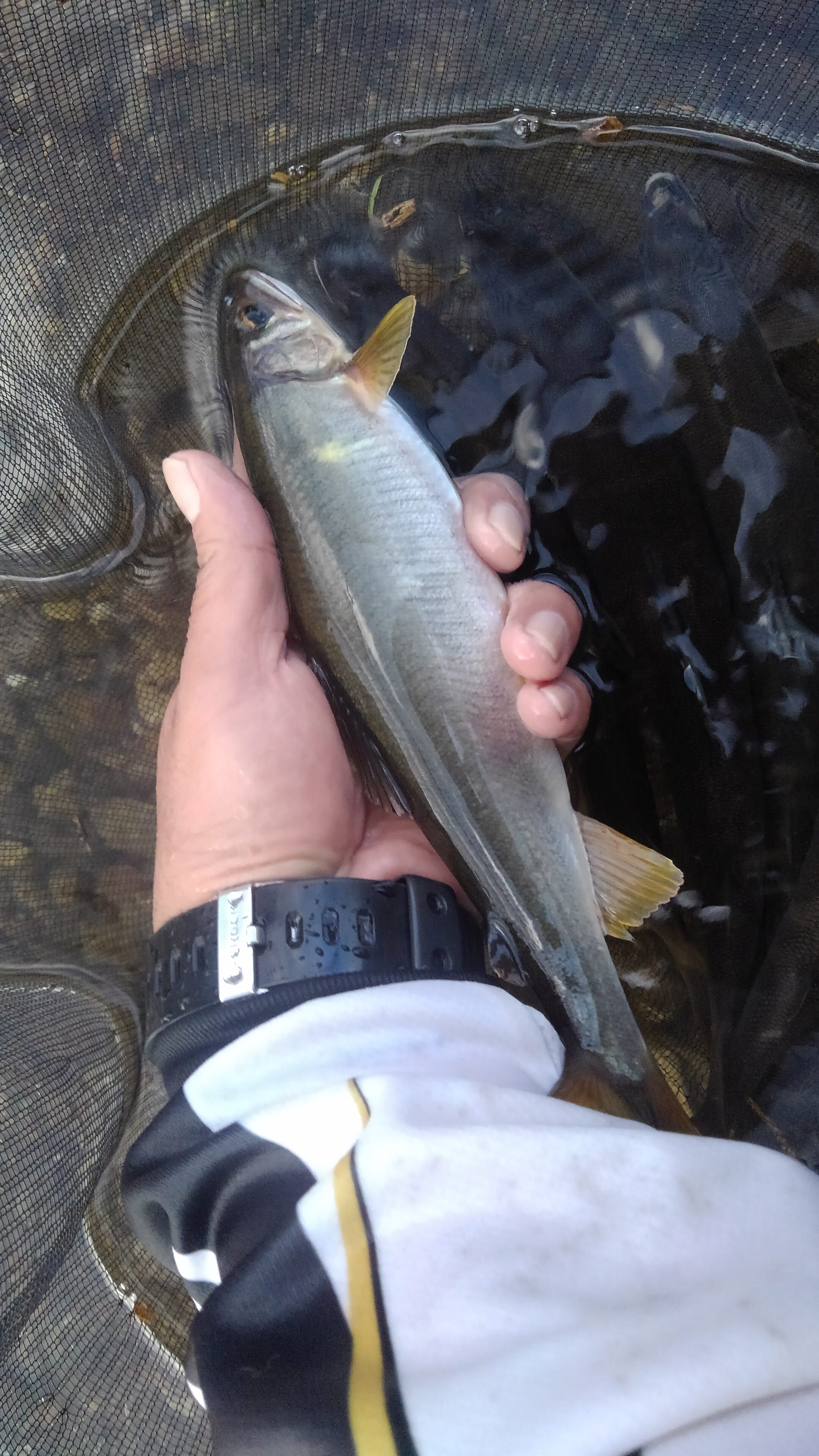 2025.10.15 印刷する 奈良県 吉野川の鮎 魚種 アユ/鮎 釣り方 友釣り 場所 奈良県 スタッフ 早野恵一郞 店舗 本社 釣行日 2025.10.12 コメント いよいよ最終戦。今週釣れなかったら終了予定の奈良県吉野川へ、二日間行ってきました! 土曜日は釣りの準備中に雨が降りだし、かなりの本降りになってきたので、小一時間ほど待機。11時前に止んだので釣りスタート。 浅いとこから探っていきますが、無反応。下りながら深いとこもやってみますが、無反応。二時間ほどやってみましたが、あまりの反応の無さに一旦昼休憩。 一時間位休憩して、2時過ぎに再スタート。上のチャラ瀬が反応あるらしいので、二時間弱やってみましたが、一匹バラシのみ。残り時間も少なくなってきたので、寒いですが立ち込みポイントへ移動。 立ち込んで、いいとこ引いて止めると、ガツン!なんなく27センチちょいのいい鮎。オトリ入れ替えできて、三連チャンで27.7センチ、28.4センチがものの30分で掛かり、今までの苦労はなんだったのか。満足して終了しようと思いましたが、最後は28センチのオトリにして石周りの深いとこやってみました。即掛かりましたが、針伸ばされバラシ。残念です。これで初日は終了しました。 二日目も前日と同じように、チャラ瀬からスタートして、午前中は26センチあるなし一匹のみ。午後は前日の深いとこ立ち込んで探っていきますが、25~26センチまで。夕方まで粘ってみましたが寒さの限界で終了しました。 次回はさすがにラストかな~、オトリももう無いかもしれませんが、とりあえず釣れなくなるまで行ってみます。 利用オトリ店 下西オトリ店 オトリの有無をご確認をお願いいたします。 使用した釣具 竿 がまかつ パワースペシャルV 引抜急瀬90 仕掛 サンライン 天糸2号 フロロ06 がまかつ 大鮎無双8.5号チラシ 要R8.5号3本錨