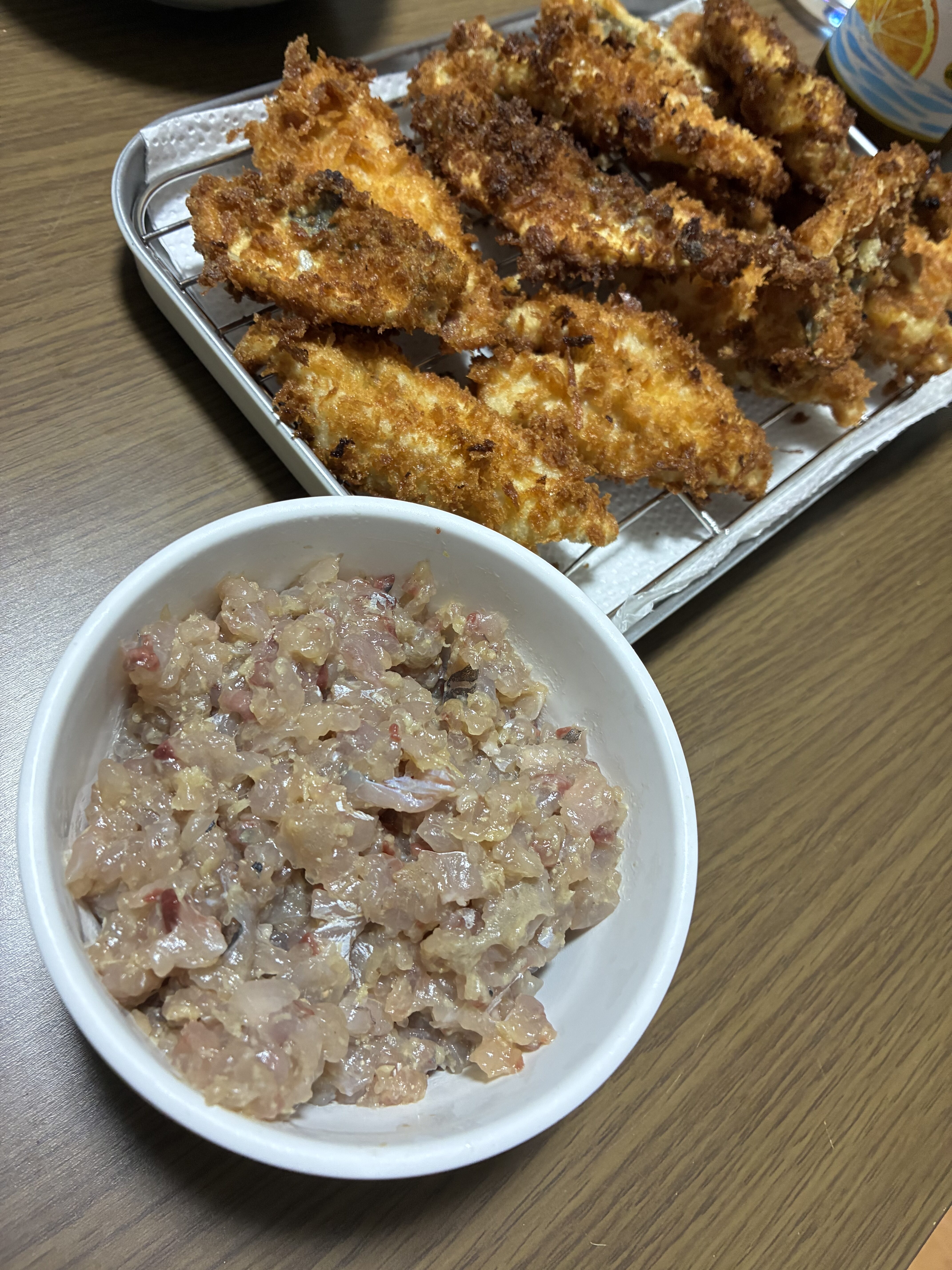 今回はアジフライとなめろうにしてみました!笑アジフライはふわふわしてて美味しいです!笑