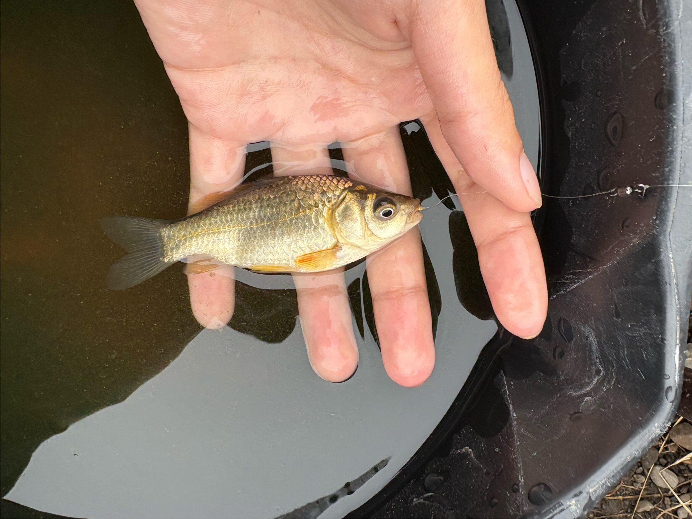 スムーズに魚体に触れずに針を外すには小物用の針外しがあるといいです、受付でも借りられます。 手で外すと手が濡れてしまい、餌をつけるときに練り餌が緩くなってしまうのでこの点においても有効です。