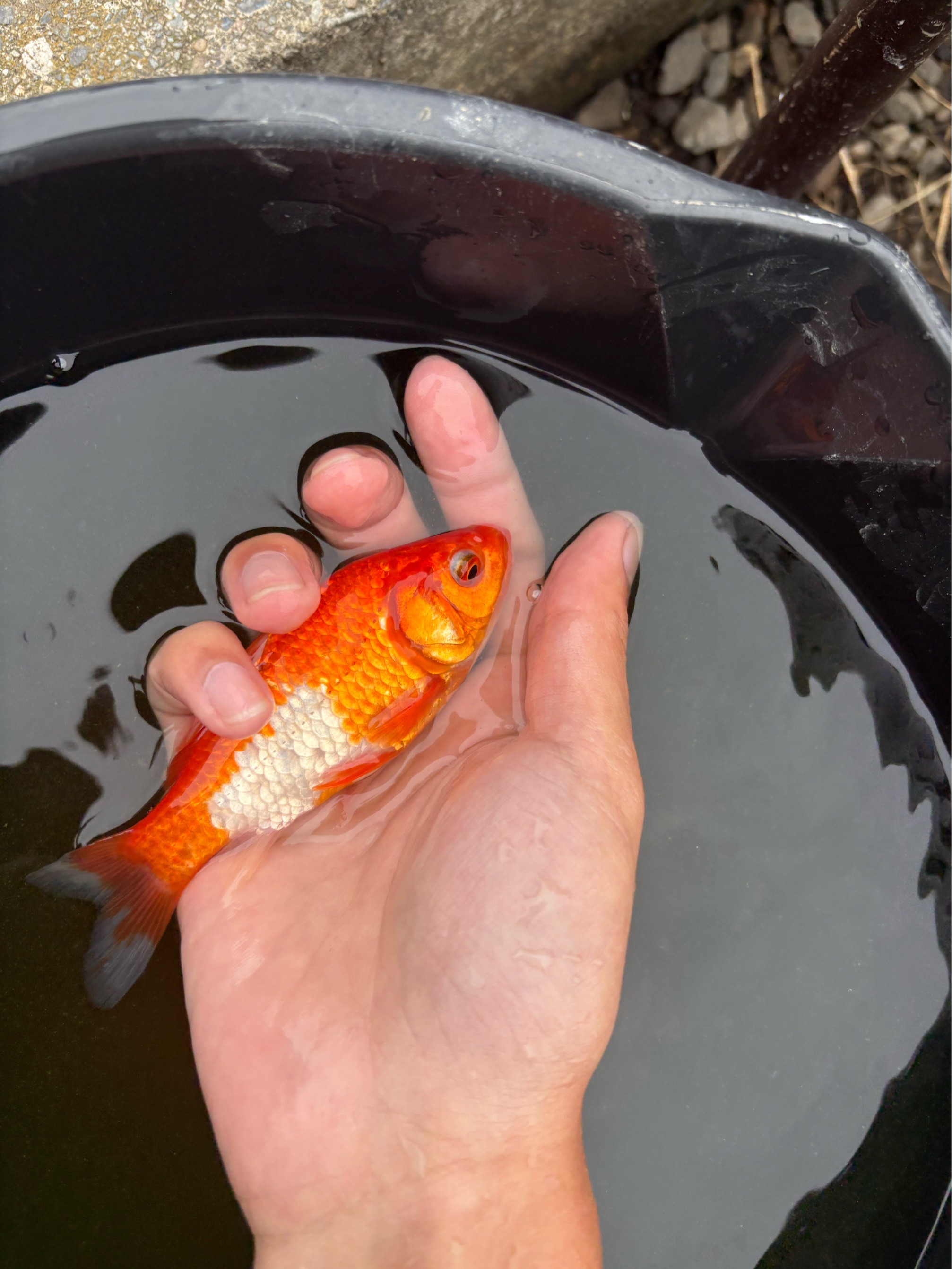 水道水だと魚によくないかなと思い池の水を汲みましたが、今日はかなり濁っていてバケツ内の金魚がぜんぜん見えず数は数えませんでした。 みなさん水道水を汲まれているようです。