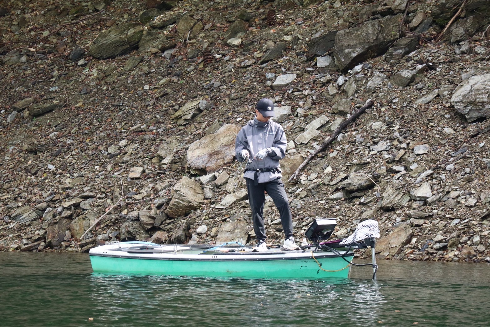 Day1 フライト番号は65番。かなり後ろからのスタート。ほとんどが入野筋へ。屋敷跡へ向かうと船団が…屋敷跡向かって右側の赤土バンクへエントリーしたいが先行者がいるので移動するまで待ってからエントリー。前日プラクティスで岬ら辺に魚が出たり入ったりしてるのを確認済み。ライブ当てると案の定いました!バンク沿いに確認できた小魚のサイズにカットしたイージーラボのシェイキンテールを2.7gダウンショットにして投入。バンクと並行にキャストして5mラインにいる魚に2ジャーク1ステイでアプローチ、そして1匹猛反応!からのバイト!朝一速攻で無事キャッチ!800gくらいですが一安心!その後は回遊ポイントへ。屋敷跡向かって右側の立木が出てないワンドへ。ジャッカルのエリーゼのホバストをボトムから1m浮かして置いておくと回遊してきたバスがバイト!これはデカい!が痛恨のバラシ…その後も10回ほど鼻先チェイスあるも物にできず帰着。初日は25位でした。