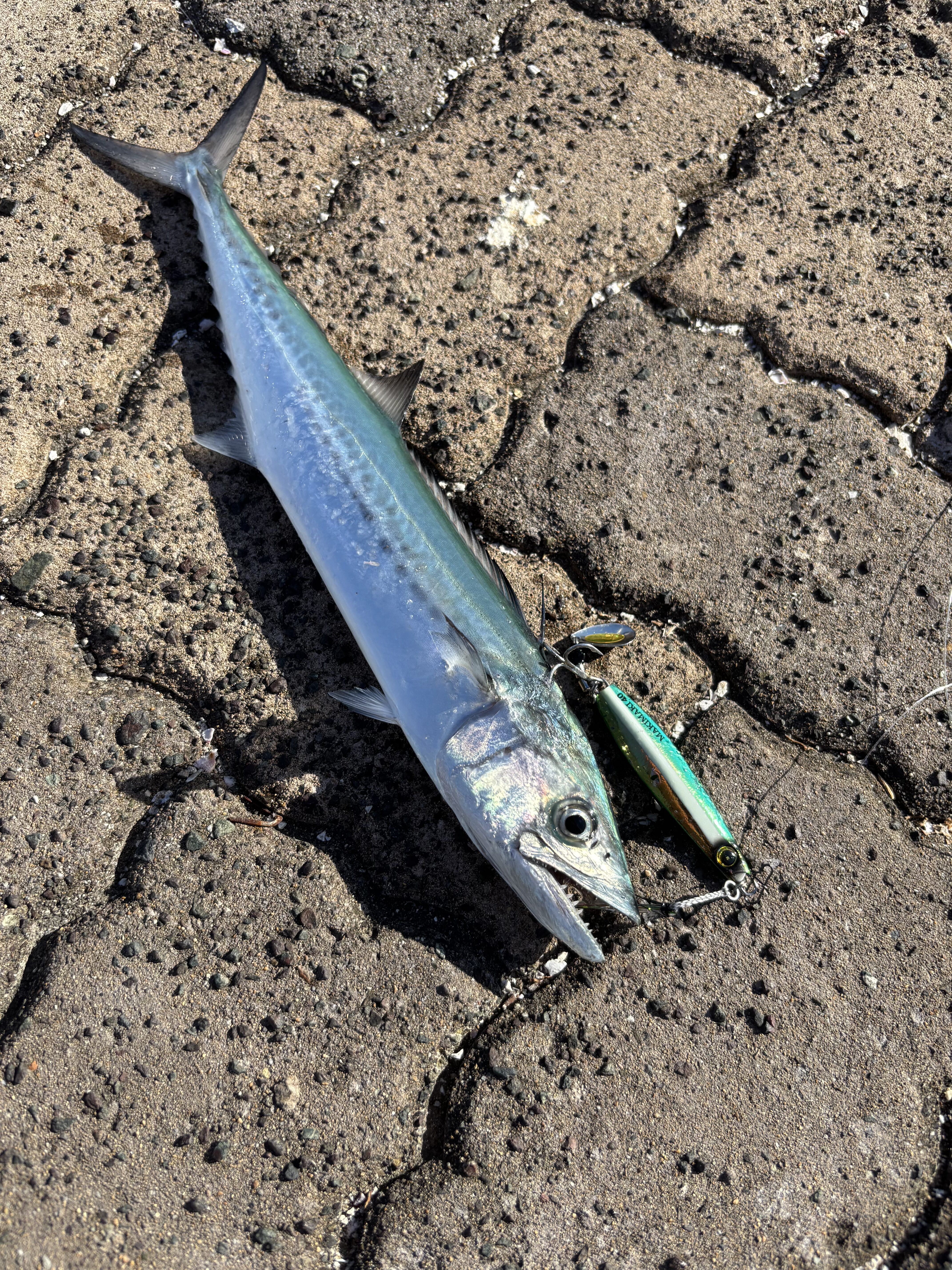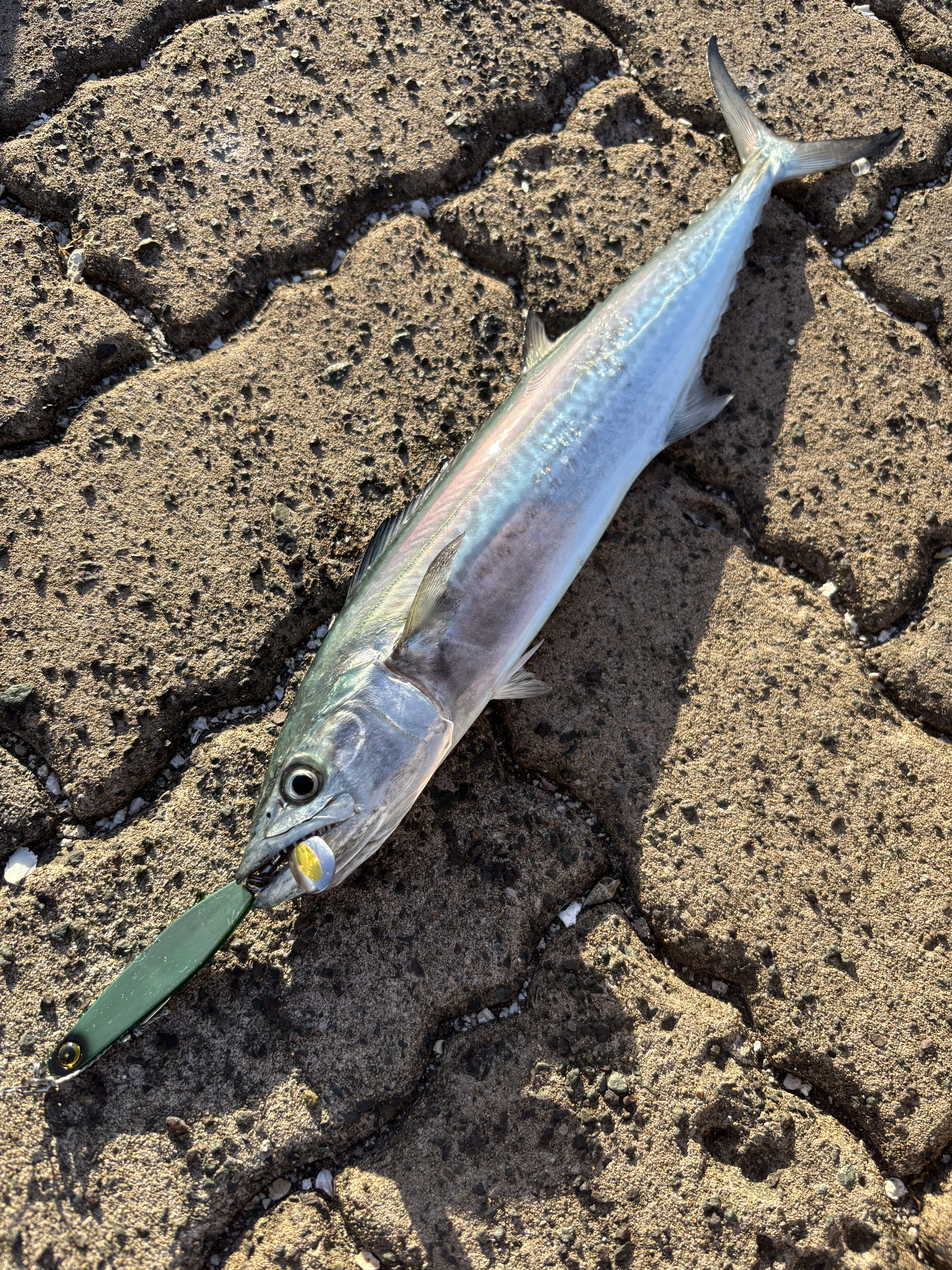 しかし、7時ぐらいから当たりが増え、サゴシカッターでジグを切られることもありましたが、なんとか40センチのサゴシを3匹釣ることができました❗️