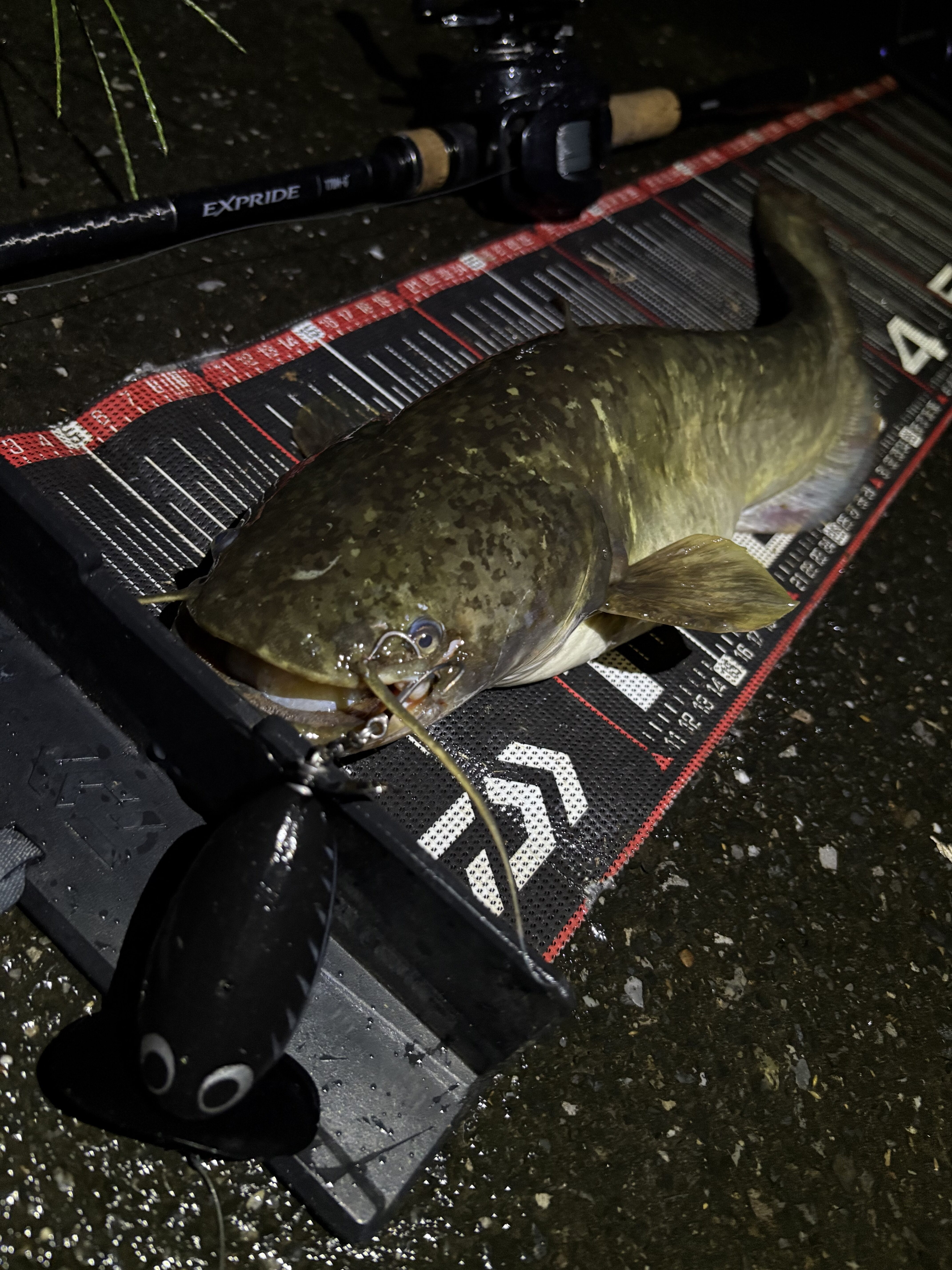 2025.10.22 印刷する やわらかでんぐり入魂! 魚種 ナマズ サイズ 54cm 数 1本 場所 埼玉県 天候 雨 スタッフ 中村祐 店舗 柏店 釣行日 2025.10.16 コメント 柏店中村です! 今回は勤務後のナマズゲームに行ってきました!やや雨が混じる中ですが、雨にも負けずやっていきたいと思います! 今日はニューウェポンを投入!コーモランのやわらかでんぐりガエル鯰SPです!2025年の新製品で、人気のでんぐりガエルが柔らかくなったアイテムです!早速使っていきますが、ウェイトが25gとやや重ためで軽く投げてもぶっ飛んでいきます!笑今回のような飛距離を出すポイントではかなり良さそうです! 正直ルアーの動きに関しては、横流れでブレてしまいイマイチですが、このかっ飛び具合は魅力的です! 大本命ポイントで巻いていると、ルアー後方に忍び寄る波紋!そして、最高のバイト! いただきました!良いサイズの個体でやわらかでんぐりガエル鯰SP入魂でございます! ウェイトがあるのでバイトも弾きにくそうですね!使い所によってはかなりイケてるルアーです!柏店では在庫ご用意しておりますので、ぜひお試しください♪ 今回の1本で今シーズン145本!150本まで残り5本!かなり際どくなってきましたが、達成できるように頑張ります!笑 使用した釣具 ロッド シマノ エクスプライド170M-G リール メタニウム DC70XG