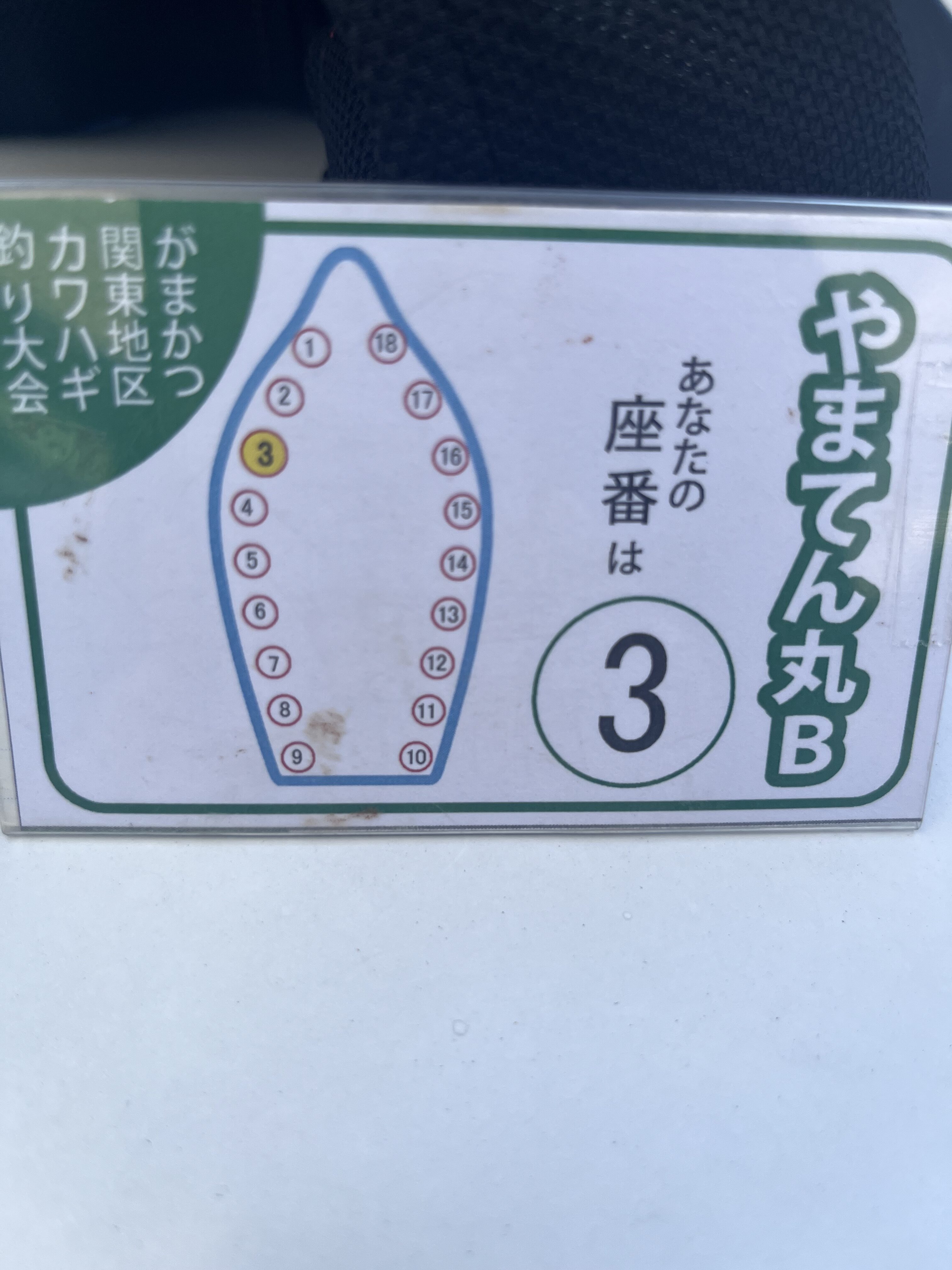今日はいい事ありそう✨と受付をし釣座の抽選。『山下丸A.B』みのすけ丸A.B』『やまてん丸A.B』の中からくじを引き私達は『やまてん丸B』の左舷の3番と真船さんは左舷の大艫✨開会式をして船に乗り込み出船です