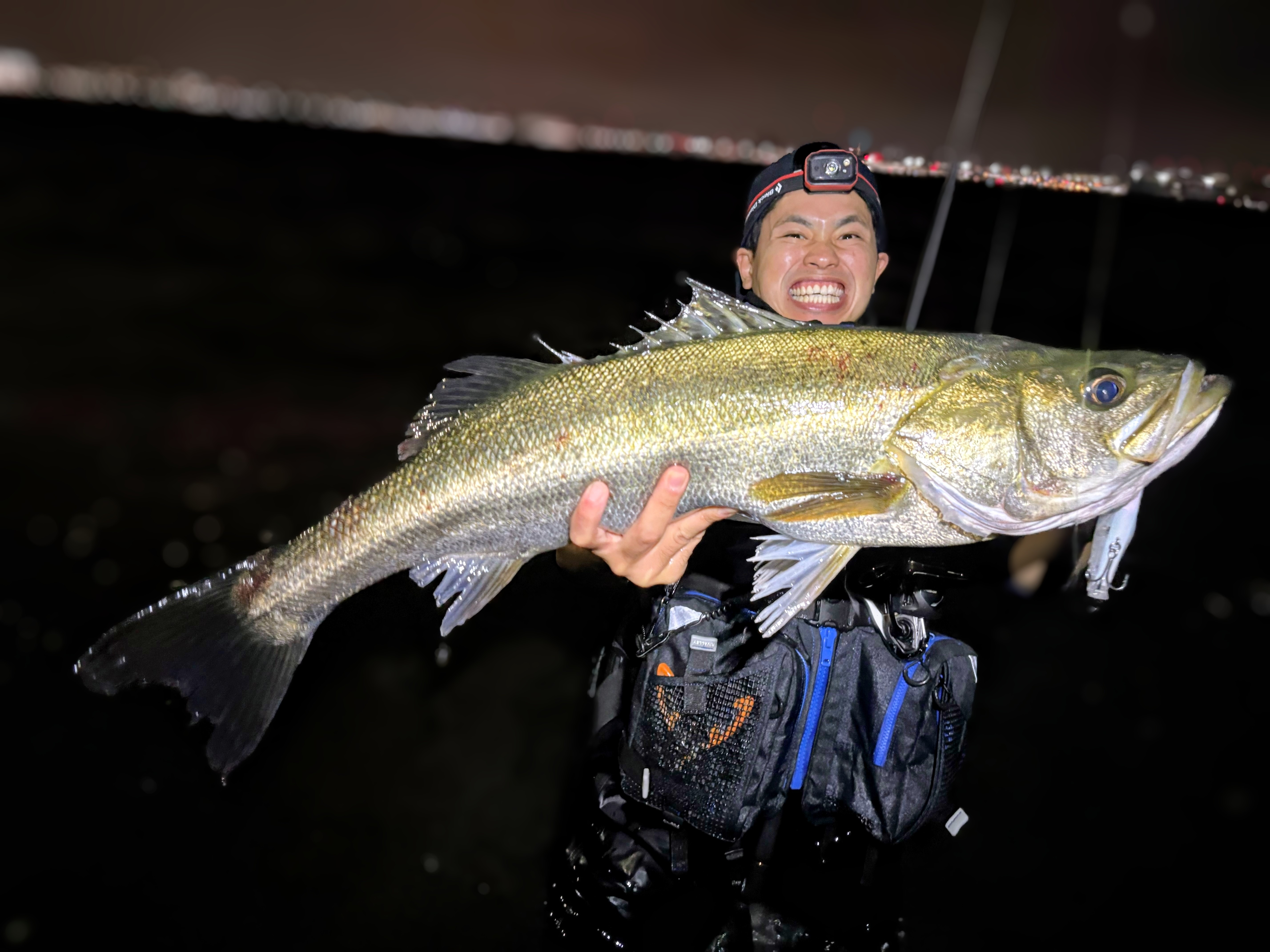 かつてないゴンッッッッ!!!を経験し、やや焦りながらファイトし上がってきたのは81cmのシーバス💪