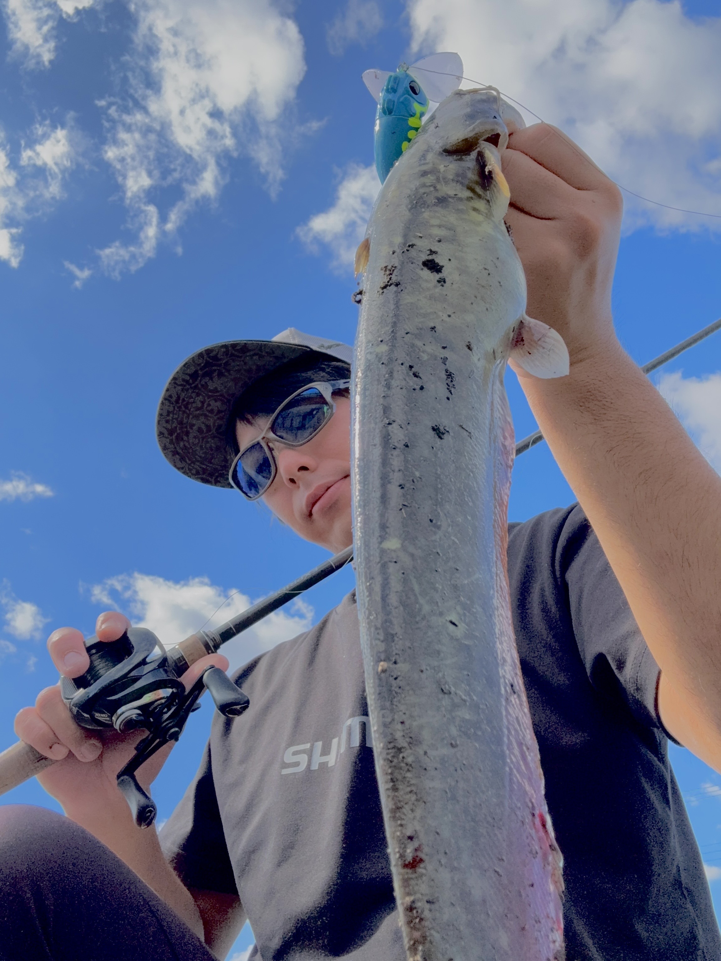 2025.10.22 印刷する 秋ナマズ終盤のデイナマ! 魚種 ナマズ サイズ 47cm 数 1本 場所 埼玉県 天候 晴れ スタッフ 中村祐 店舗 柏店 釣行日 2025.10.17 コメント 柏店中村です! 今回は出勤前のデイナマ釣行です!出勤前なので短時間勝負!本命のポイントへササっとエントリー! ナジーバグを早速投げていきます!今回はタコベイトチューンをしてみました!実は中村アンチタコベイト派です笑 タコベイトを装着し、フックを隠すことでスレたナマズが違和感なくバイトしてくれる……と思ったら大間違いです…!常にプレッシャーのかかり続けたナマズを相手してきたから分かる核心……。スレたナマズはタコベイトだけ摘みます!笑 そして、2度目はありません笑一撃で仕留めなければいけないところ、タコベイトが邪魔して仕留められないのです…! ではなぜ、今回付けているのか……。 気分です笑違うことをしたかった…ただそれだけ…。 晴天のデイゲームですが雰囲気は抜群!ちょっとよそ見しながら巻いていると、唐突にバイト音!! いただきました! これで今シーズン146本目!150本まで残り4! さて、今回はタコベイトチューンを試してみましたが、もちろん適材適所でタコベイトが活きるシーンもあります!ウィードの上を滑らす時なんかは必須ですね!ぜひ皆様も色んなルアーチューンを楽しんでみてください♪ 使用した釣具 ロッド シマノ エクスプライド170M-G リール シマノ メタニウム DC70XG