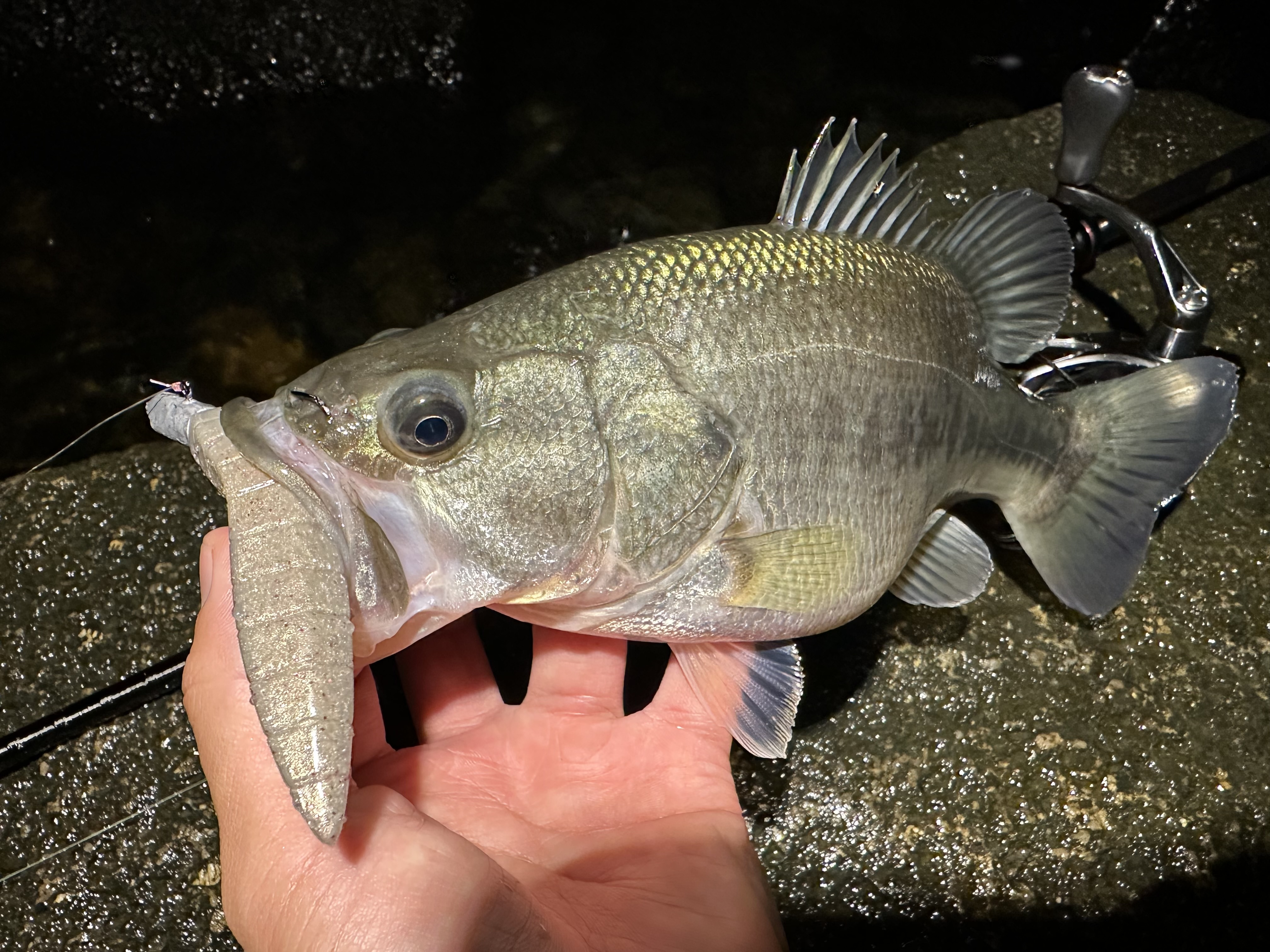 2025.10.29 印刷する スメルトヘッドスイミングが楽しい季節! 魚種 ブラックバス 釣り方 ☆バスフィッシング 場所 滋賀県 天候 晴れ スタッフ 山上知哉 店舗 大津店 釣行日 2025.10.24 コメント こんにちは!ブンブン大津店の山上です。 10月24日、琵琶湖北湖へおかっぱりに行ってきました。 昼間はまだまだ暖かい日も多いですが、日が沈むと肌寒く感じる日なんかも増えてきました。 そうなってくると個人的にやりたい釣りが増えてくる、バス釣り最高のシーズン!特に今からは昨年も大活躍したスメルトヘッドスイミングが大好きで、この日も巻き倒してきました。 この日は少しだけ風が吹いていて、釣れそうな雰囲気がムンムン。スメルトヘッド1/8oz#1をスピニングPEタックルでかっ飛ばすのがお気に入りで、個人的に1番好きなトレーラーはスタッガー3.5インチ。強波動という訳ではないのですが、アピール力抜群。どんな場面でも活躍してくれます。 このお気に入りの組み合わせをひたすらキャストしてランガンしていると、気持ちの良いバイトが! 良型の魚が釣れてくれました。 突然襲われるこのバイトが最高に気持ち良いです! リューギさんのインセットキーパーがあればワームがズレにくく長持ちします。 本当に今好調の釣りです!ご準備をお忘れなく! 使用した釣具 ロッド エメラルダスMX86M リール コンプレックスci42500F6HG ライン PE0.6号+フロロ10lb ルアー スメルトヘッド1/8oz+スタッガー3.5