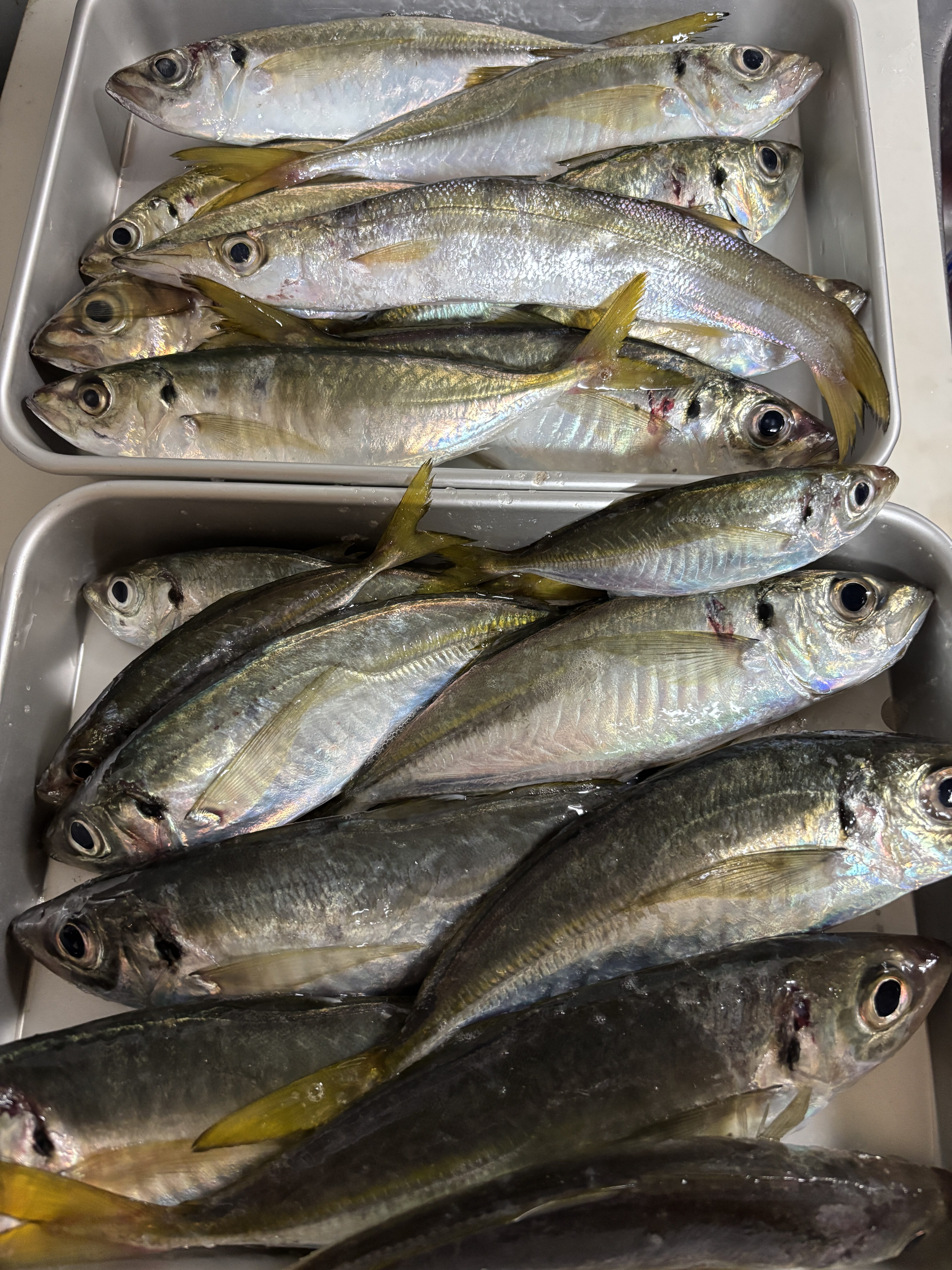 巻き上げてくると25cmのアジが釣れてくれました!釣り開始から2時間ぐらい経っていたのでだいぶ気持ちが楽になりました。