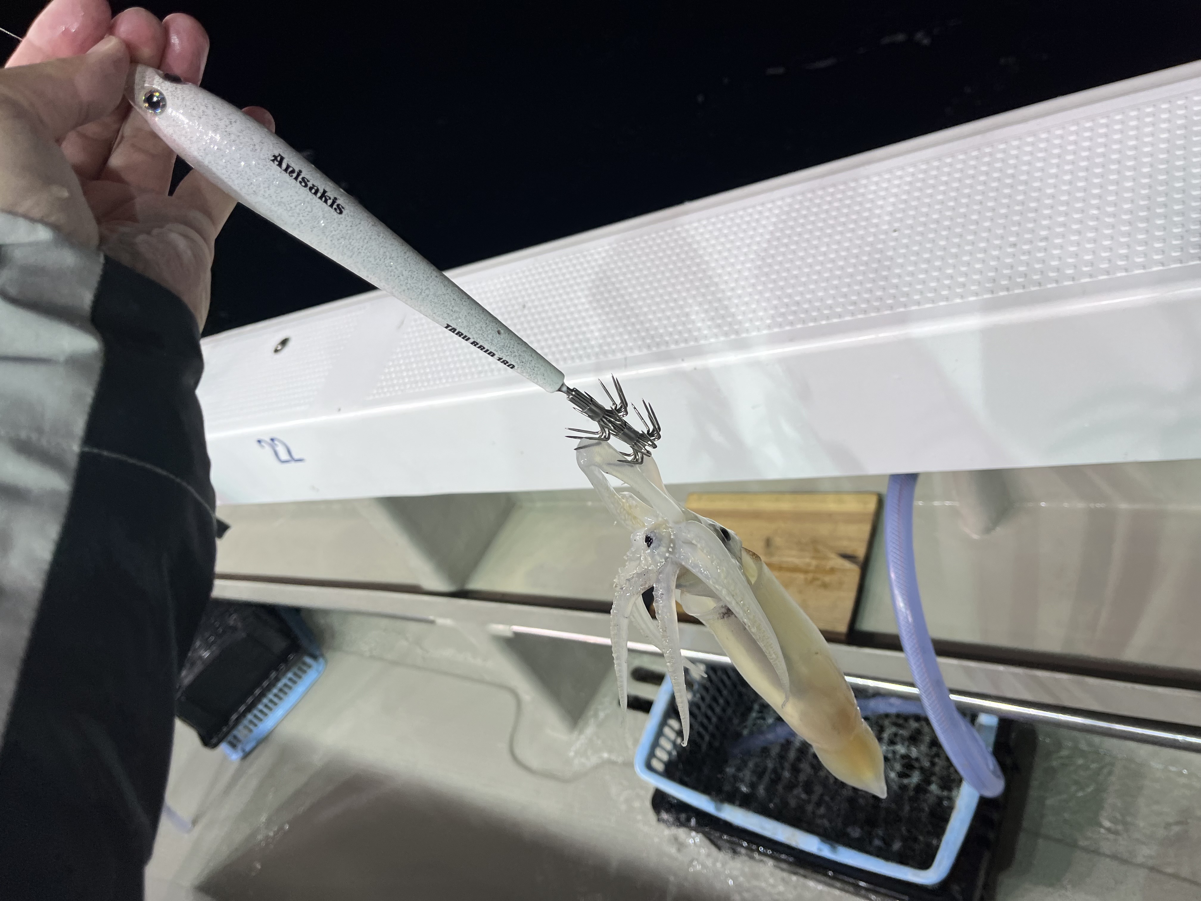 日没後100〜120m付近で生命反応があり上がってきたのはスルメイカ🦑